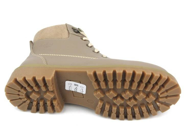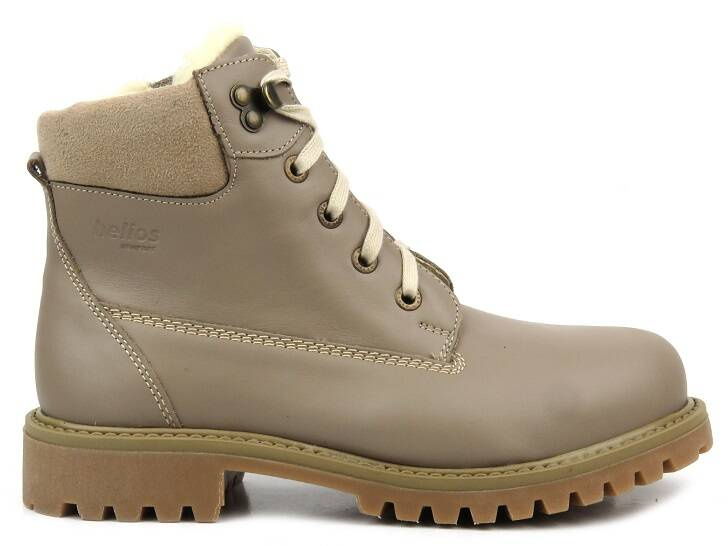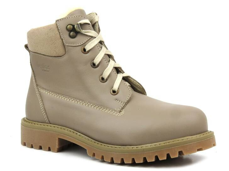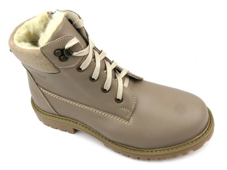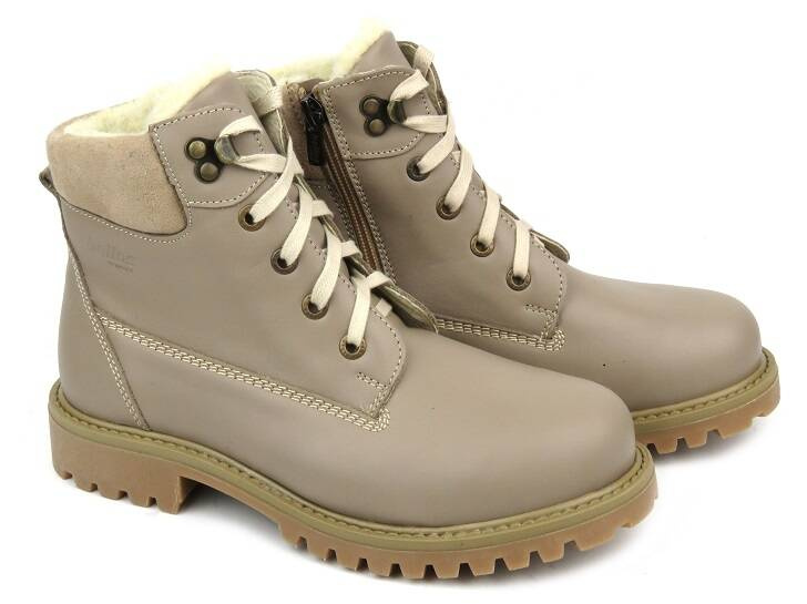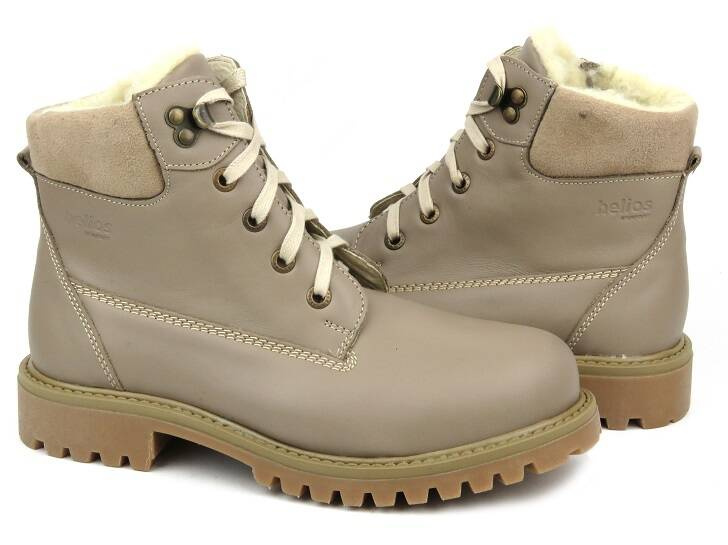 Skórzane traperki, śniegowce damskie z wełną - HELIOS Komfort 555, beżowe
