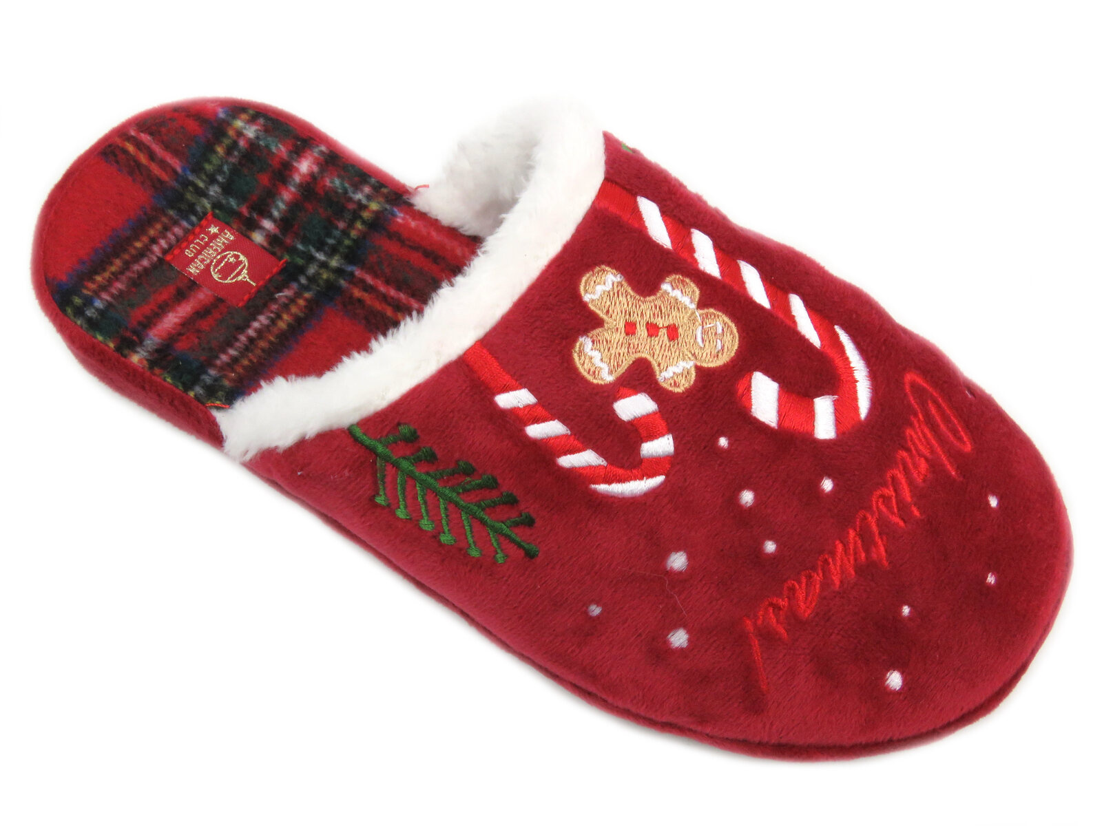 Ciepłe, świąteczne kapcie damskie- American Club SL12/23, czerwone