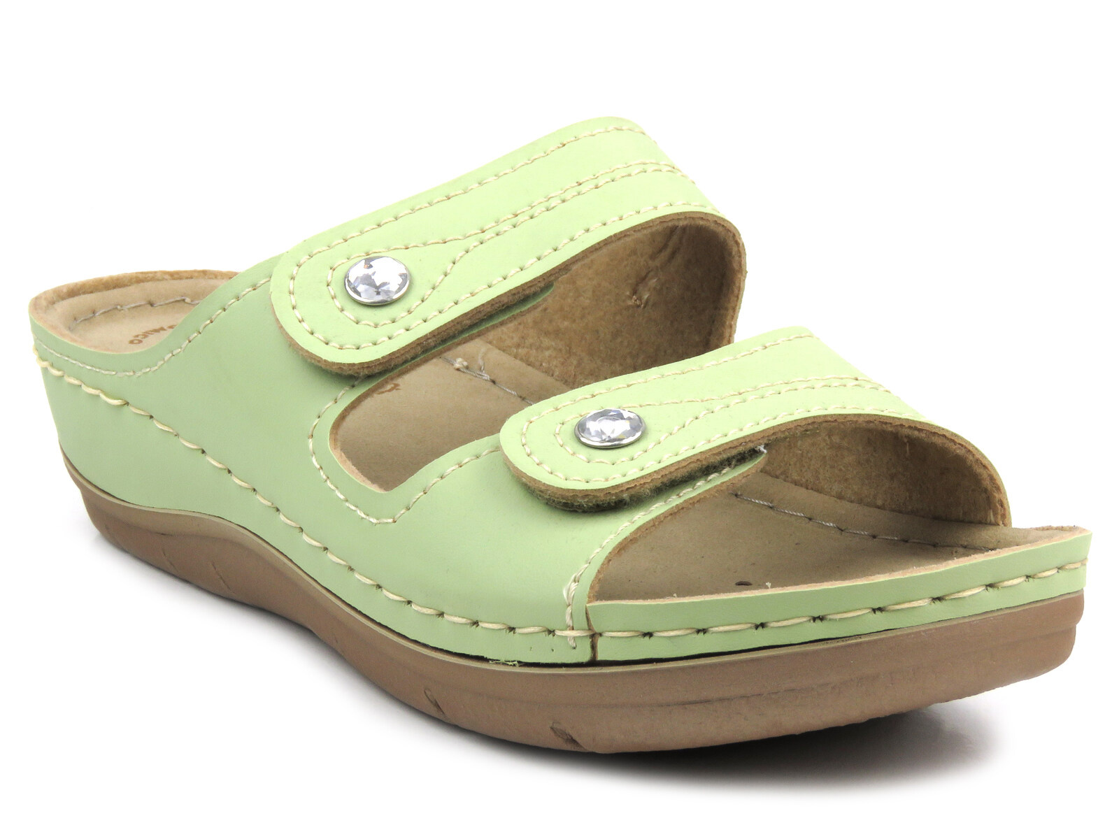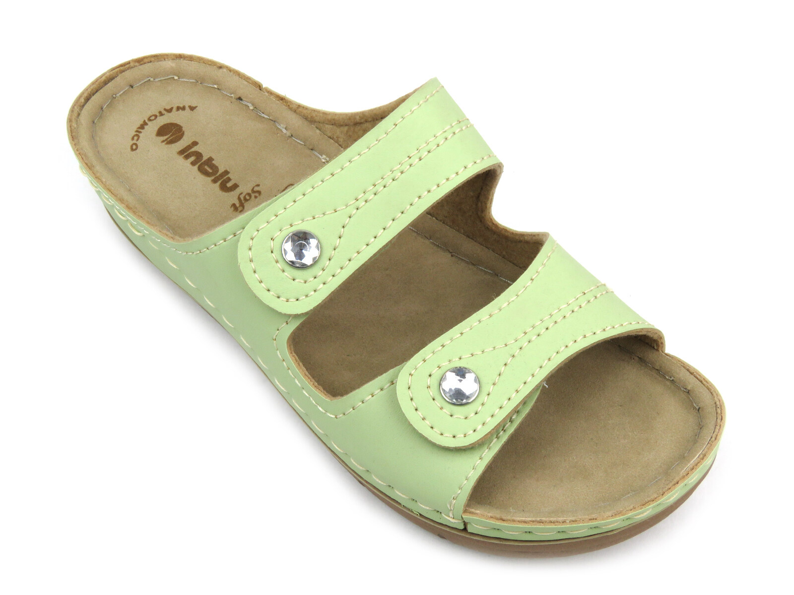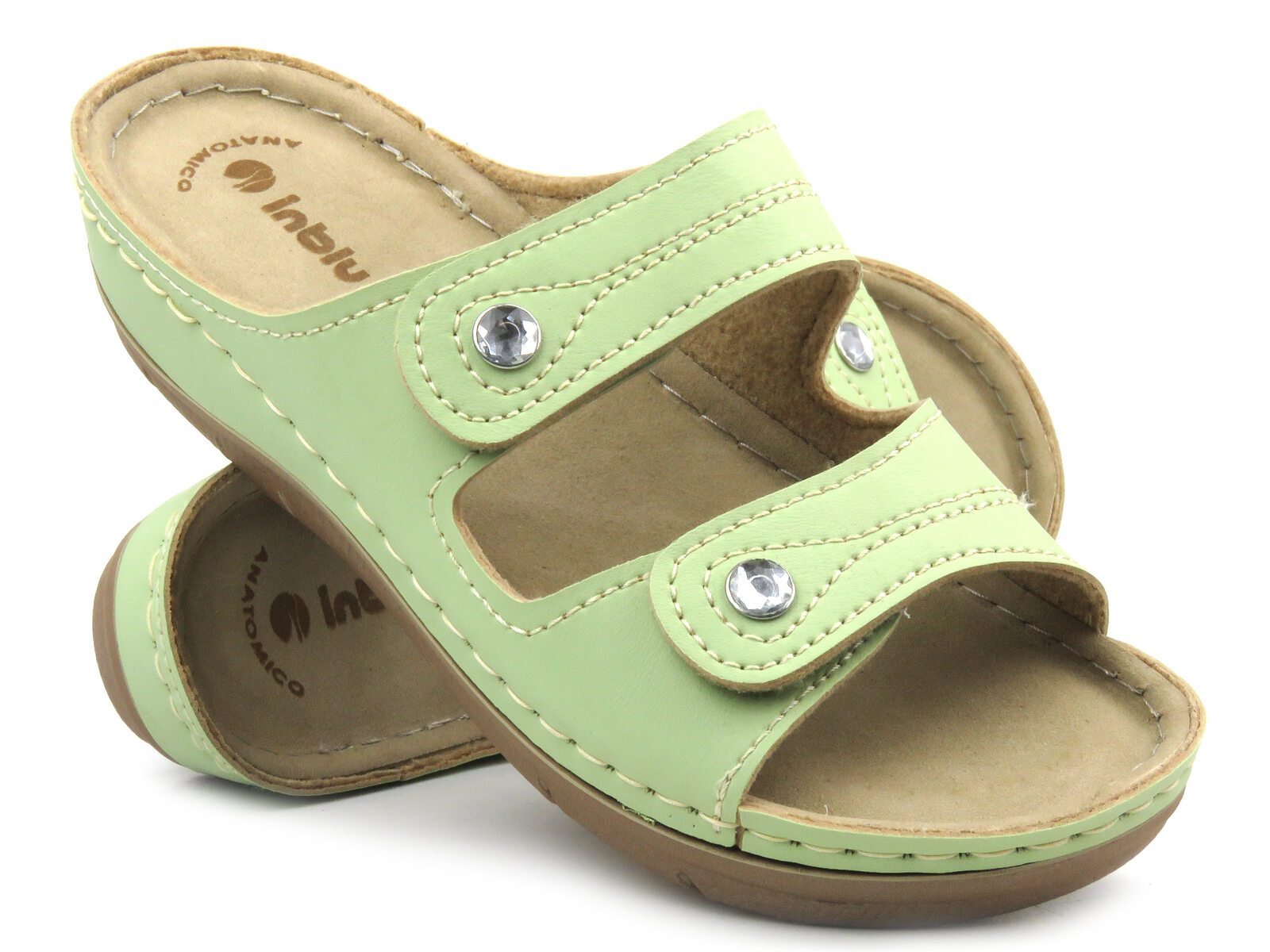 Klapki damskie renomowanej marki Inblu zostały wykonane ze skóry ekologicznej w kolorze zielonym.