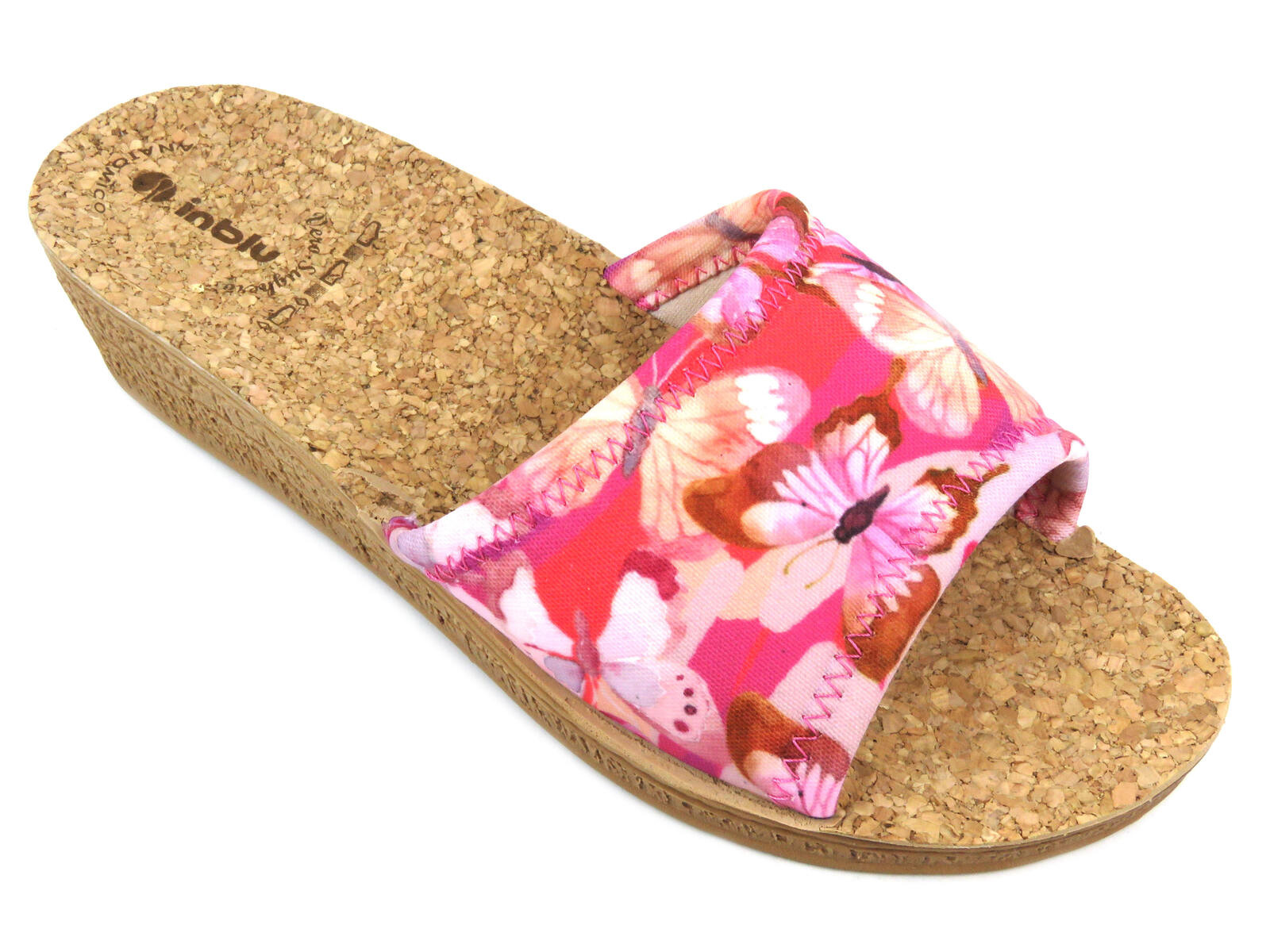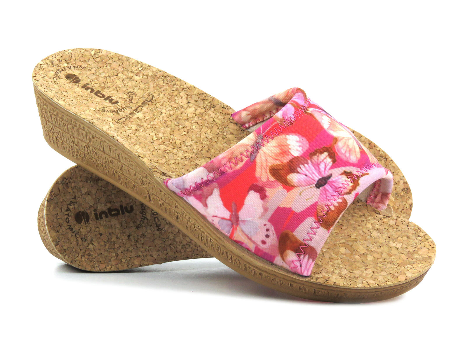 Klapki damskie z korkową wkładką- INBLU STEVIA, różowe
