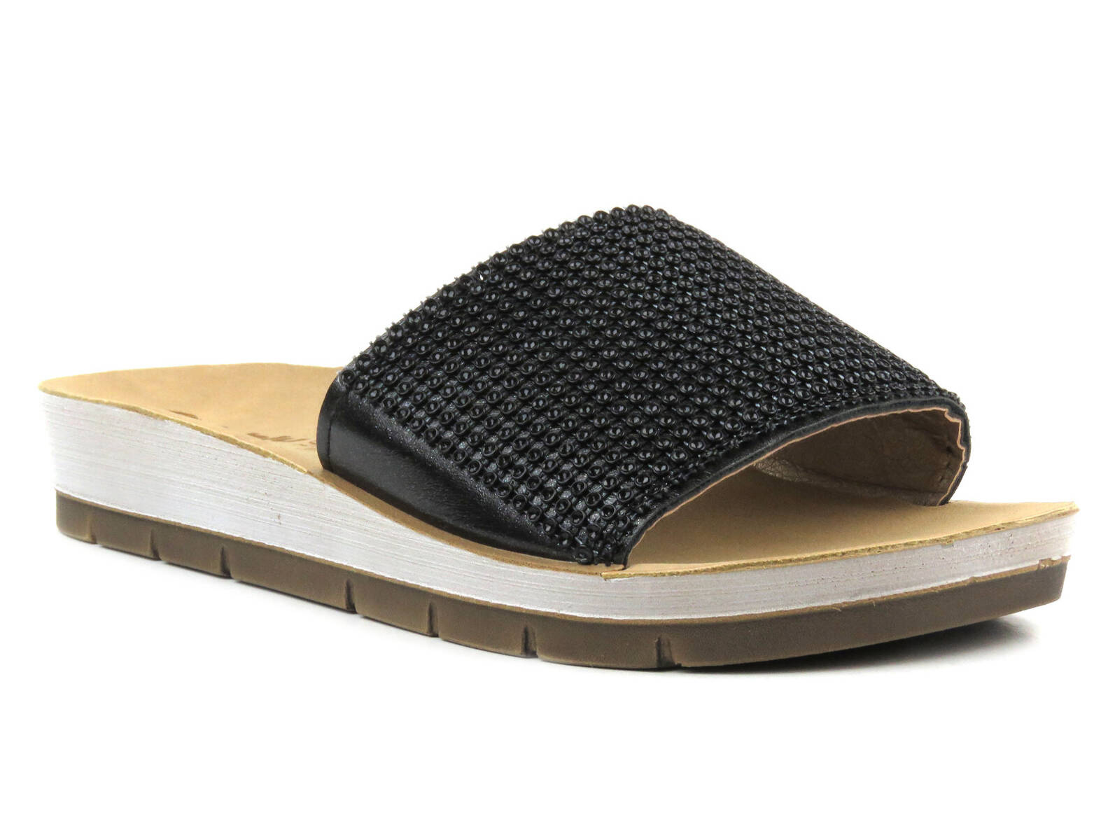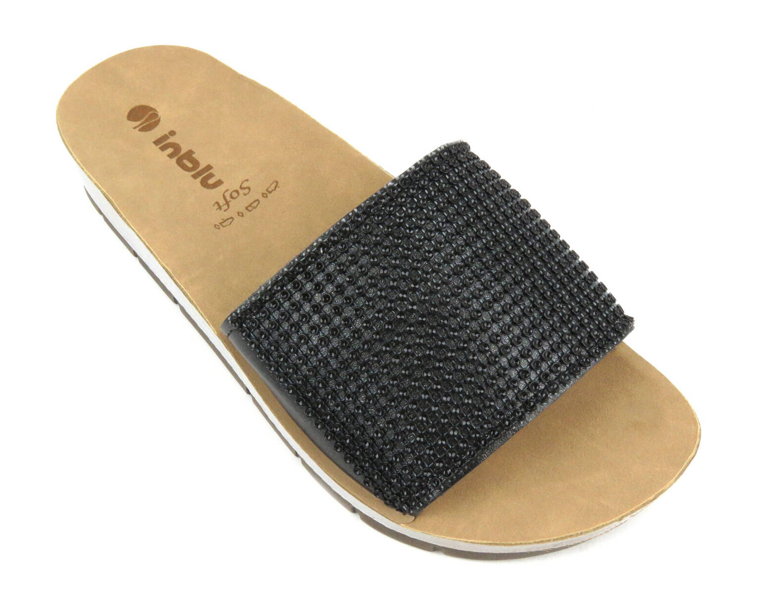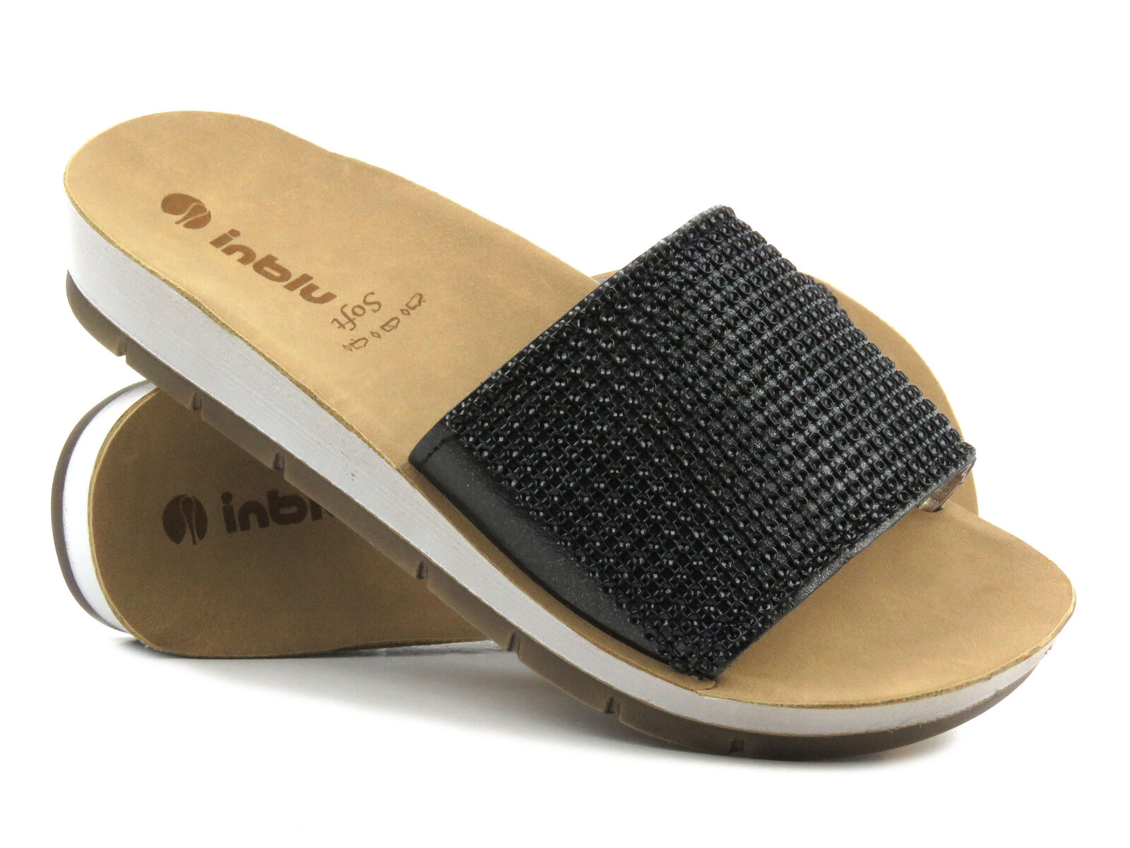 Klapki damskie renomowanej marki Inblu zostały wykonane z zewnątrz ze skóry ekologicznej w kolorze czarnym.