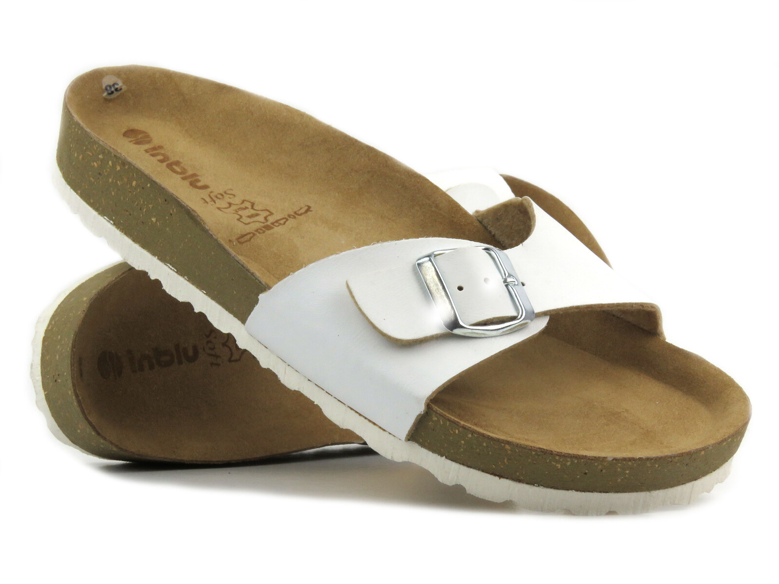 Klapki damskie z klamrą- INBLU Farich, białe
