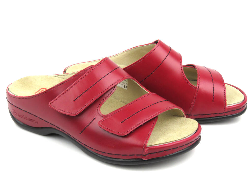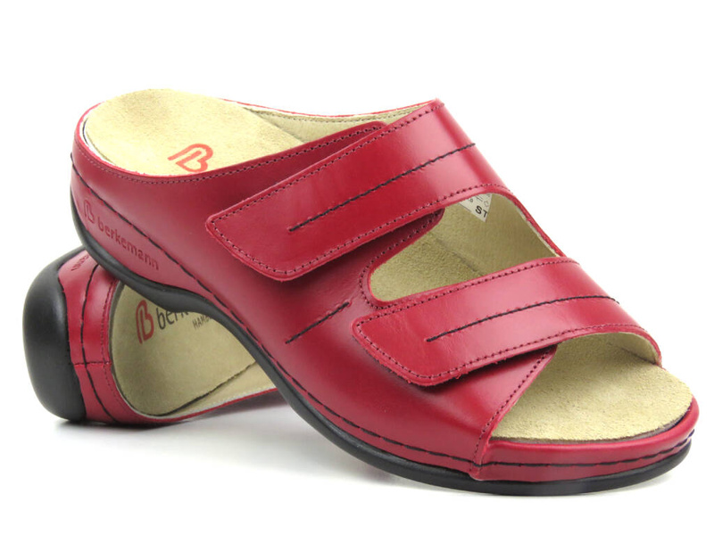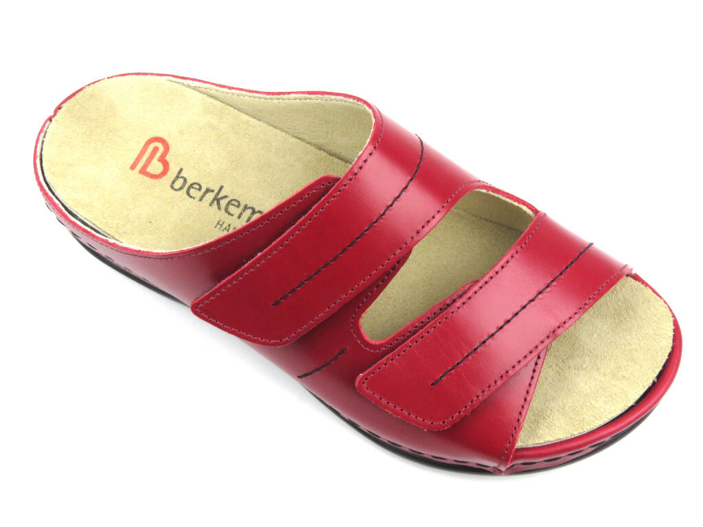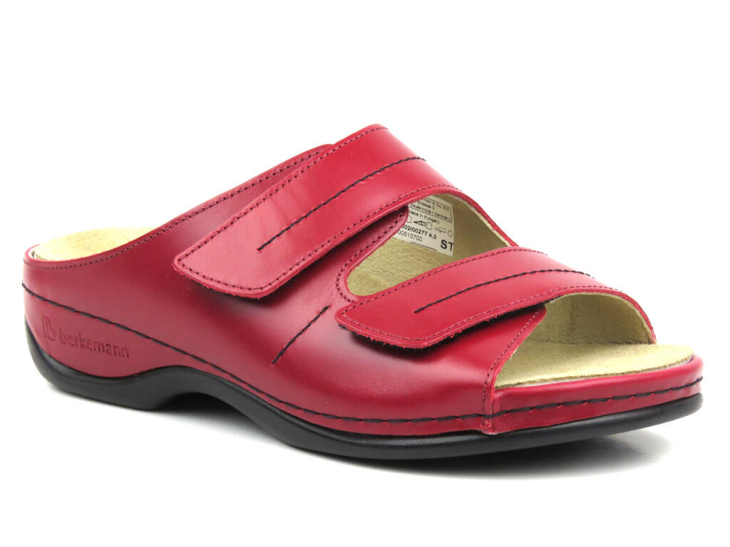Wysokojakościowe klapki damskie na rzepy - BERKEMANN 01002-277, czerwone