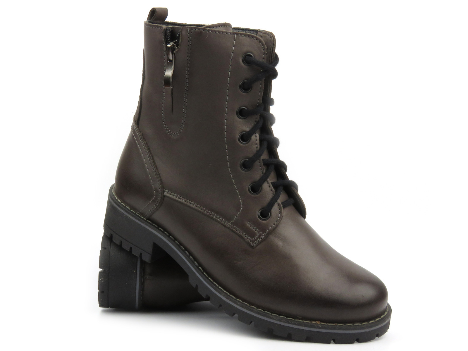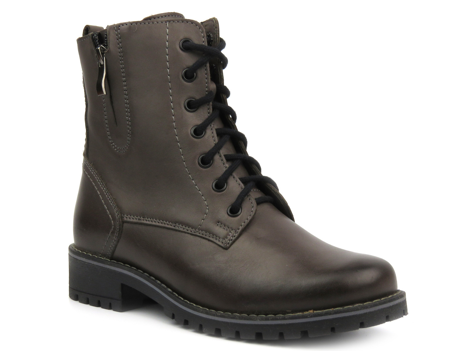 Skórzane botki damskie - Syrena 4038, grafitowe
