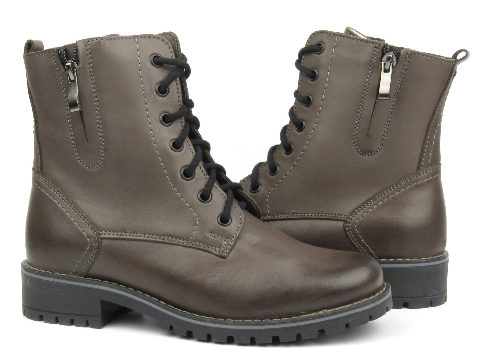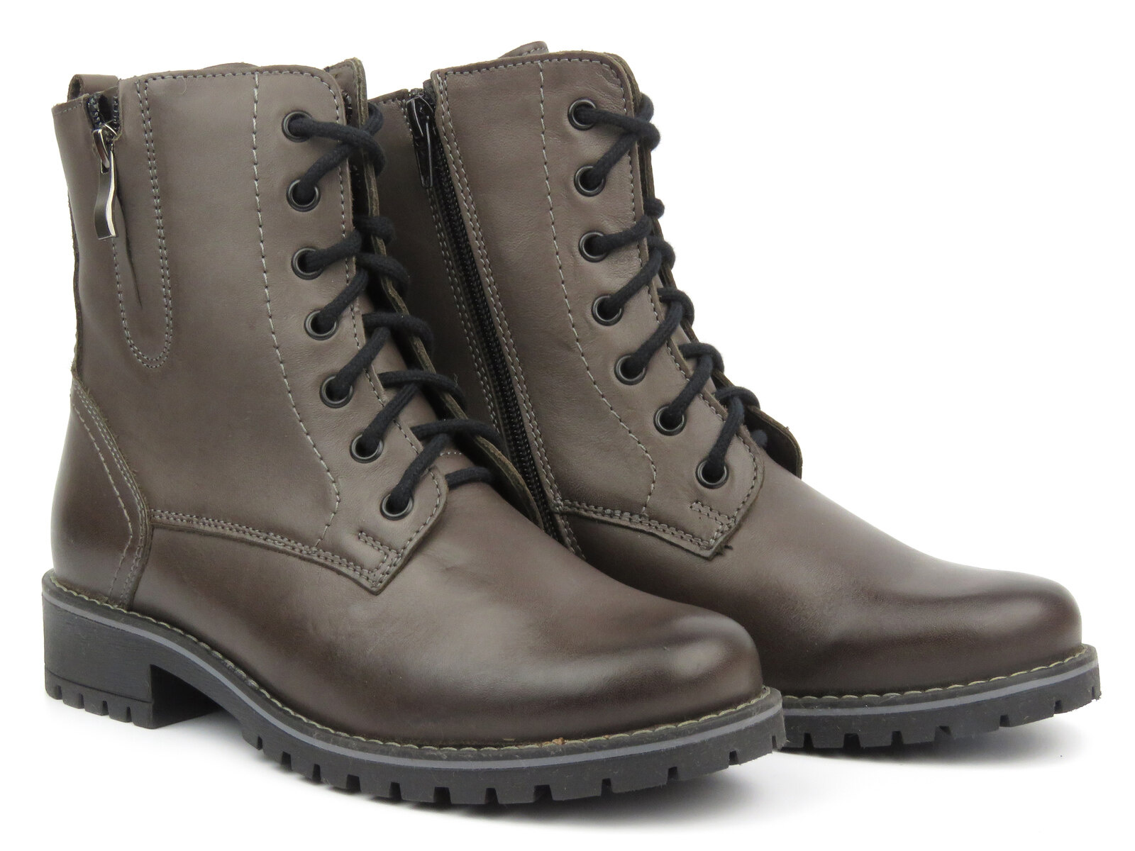 Zamek błyskawiczny pozwala na szybkie i wygodne zakładanie obuwia. Dzięki regulacji sznurowadeł, model można dopasować do różnej tęgości stopy.