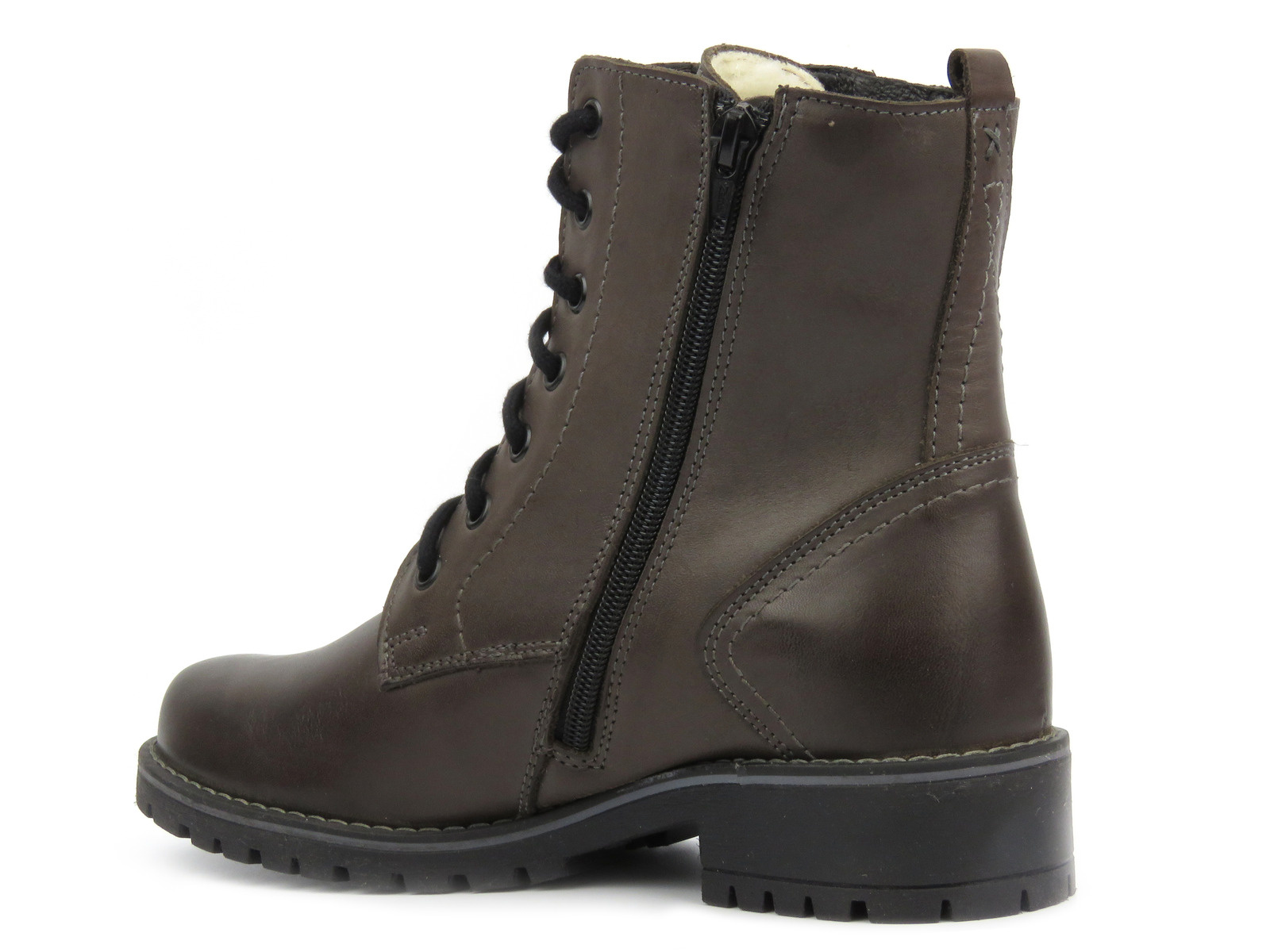 Botki Syrena osadzono na grubej, traperowej podeszwie, która dobrze izoluje od podłoża. Wyższy fason zapewnia ciepło także kostkom.