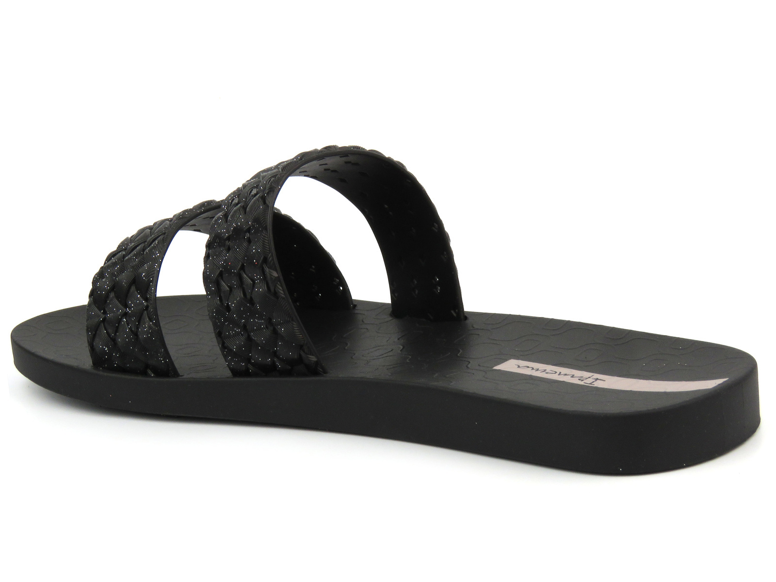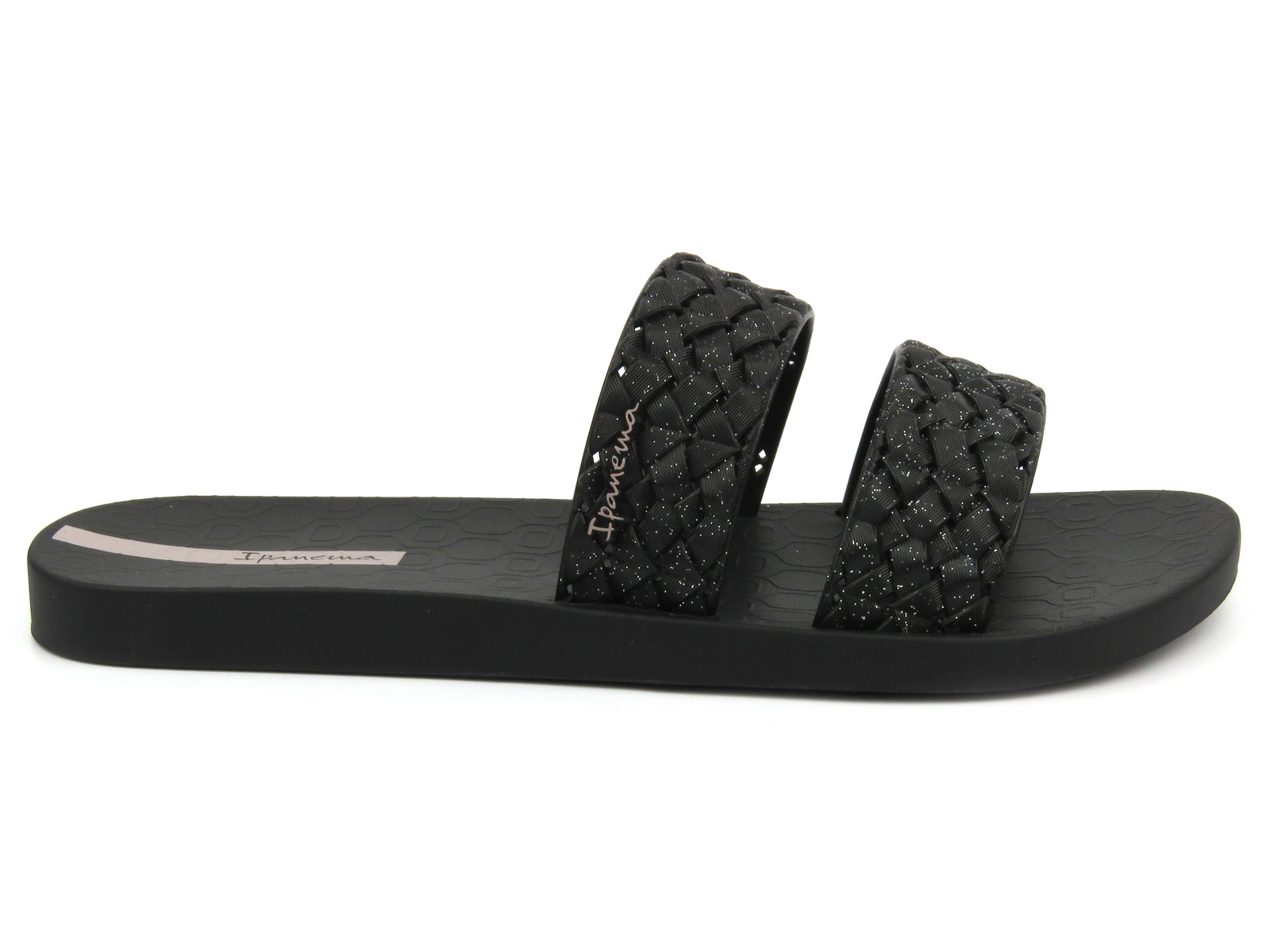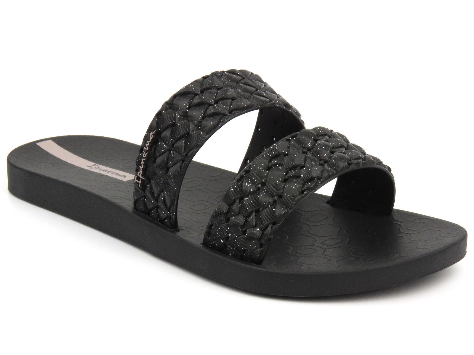 Wygodne klapki damskie z plecionymi paskami - Ipanema 83243, czarne brokatowe