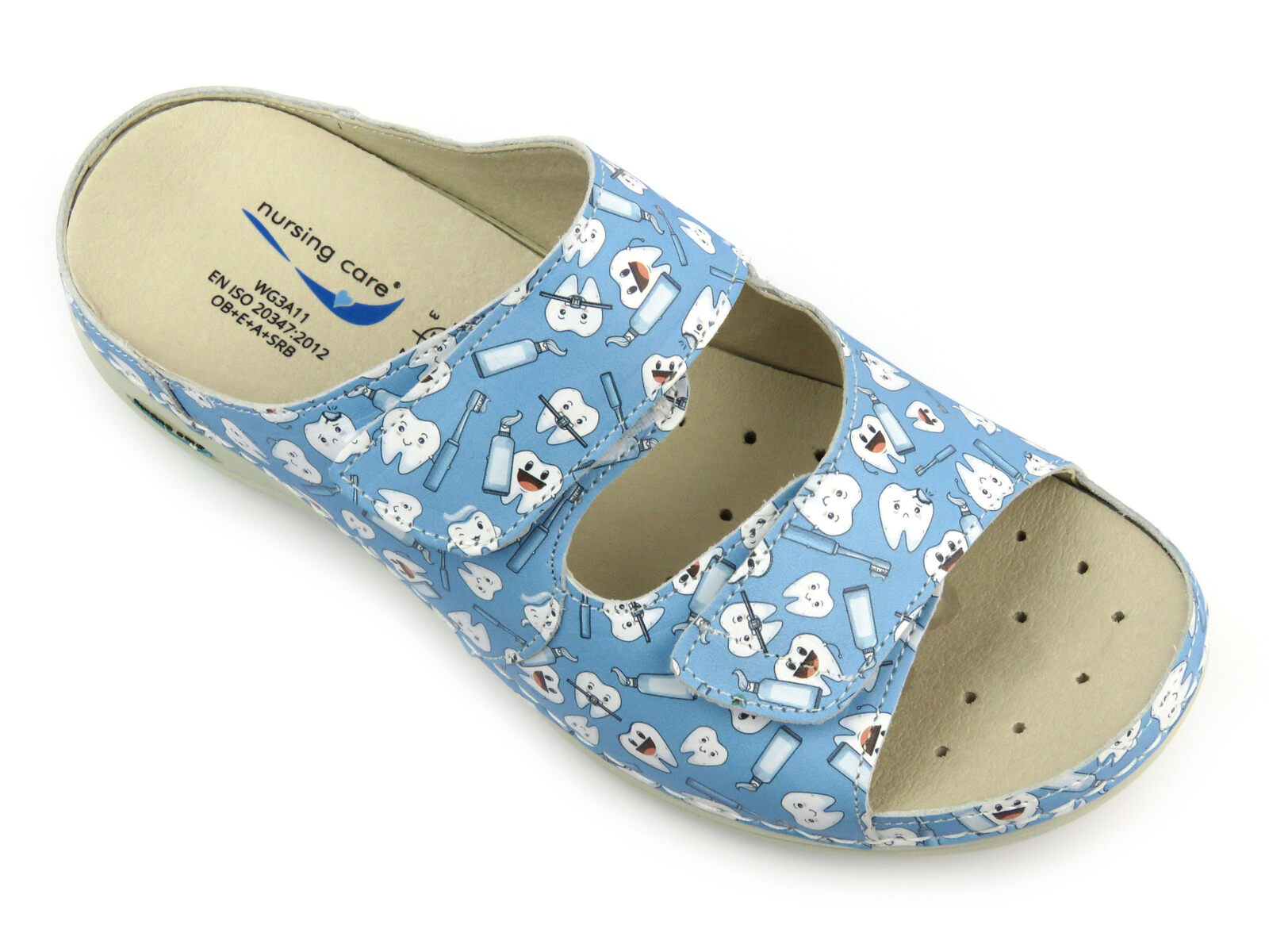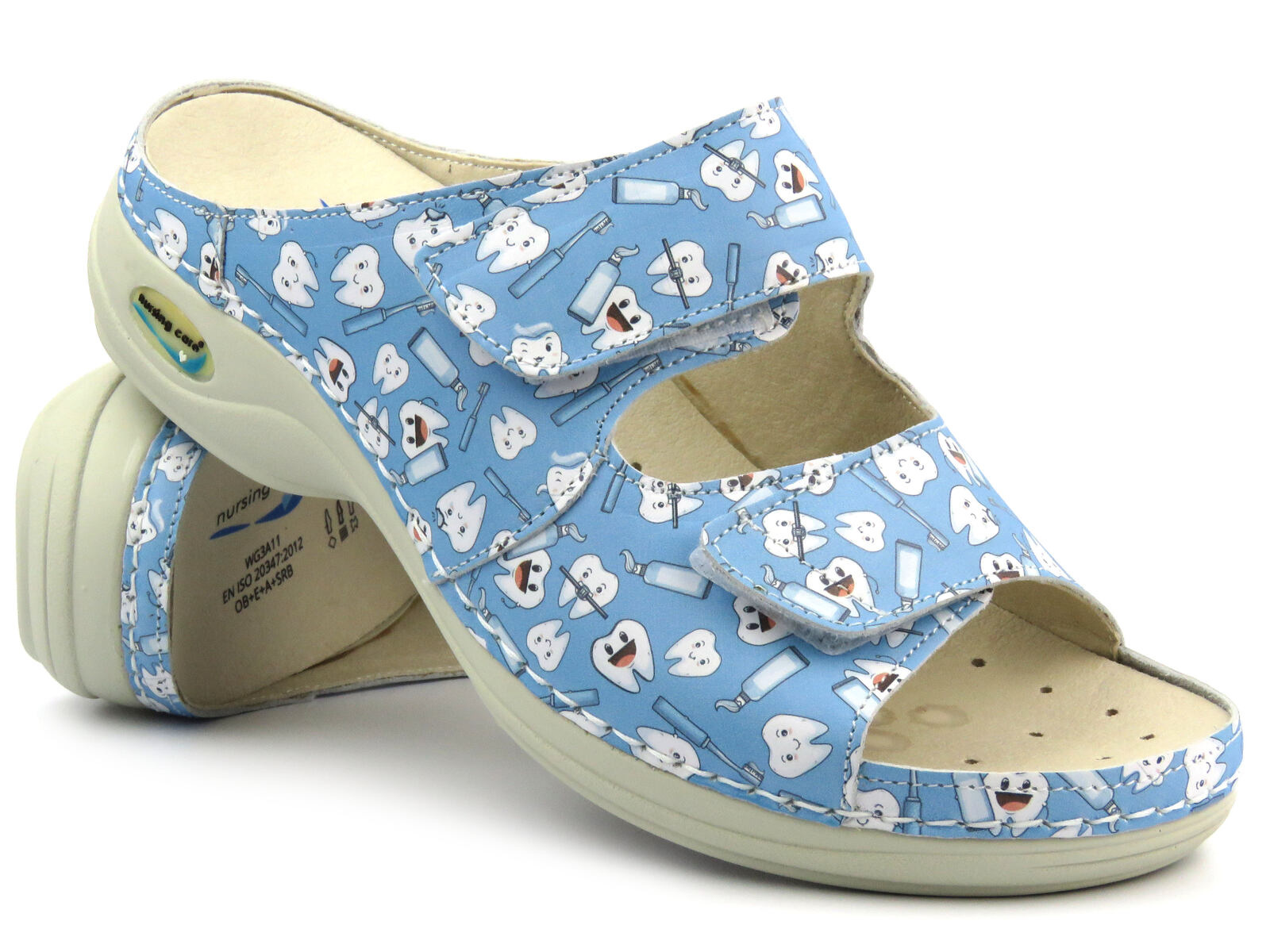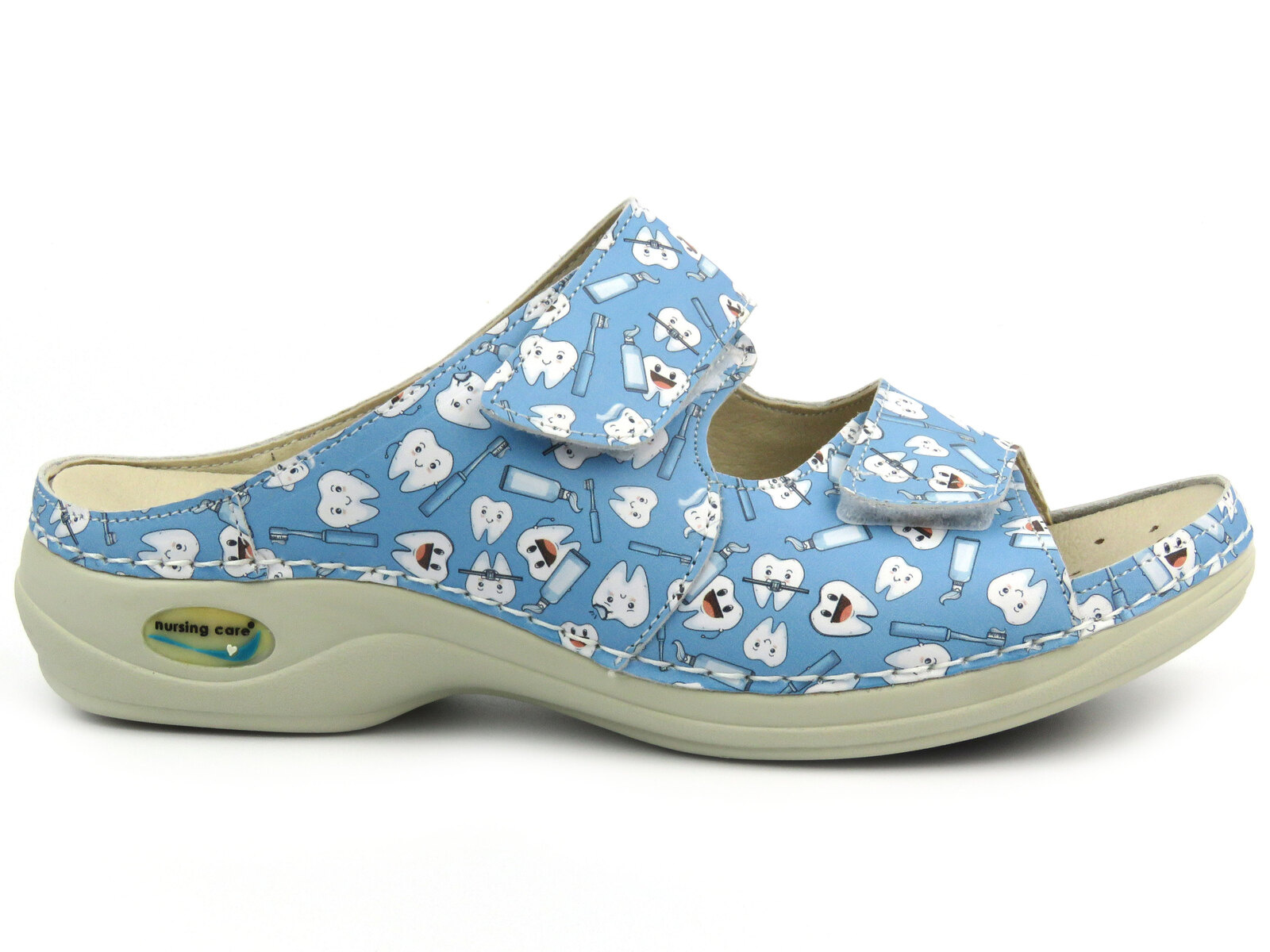 Wysokojakościowe klapki damskie, medyczne- Nursing Care WG8F56, niebieskie