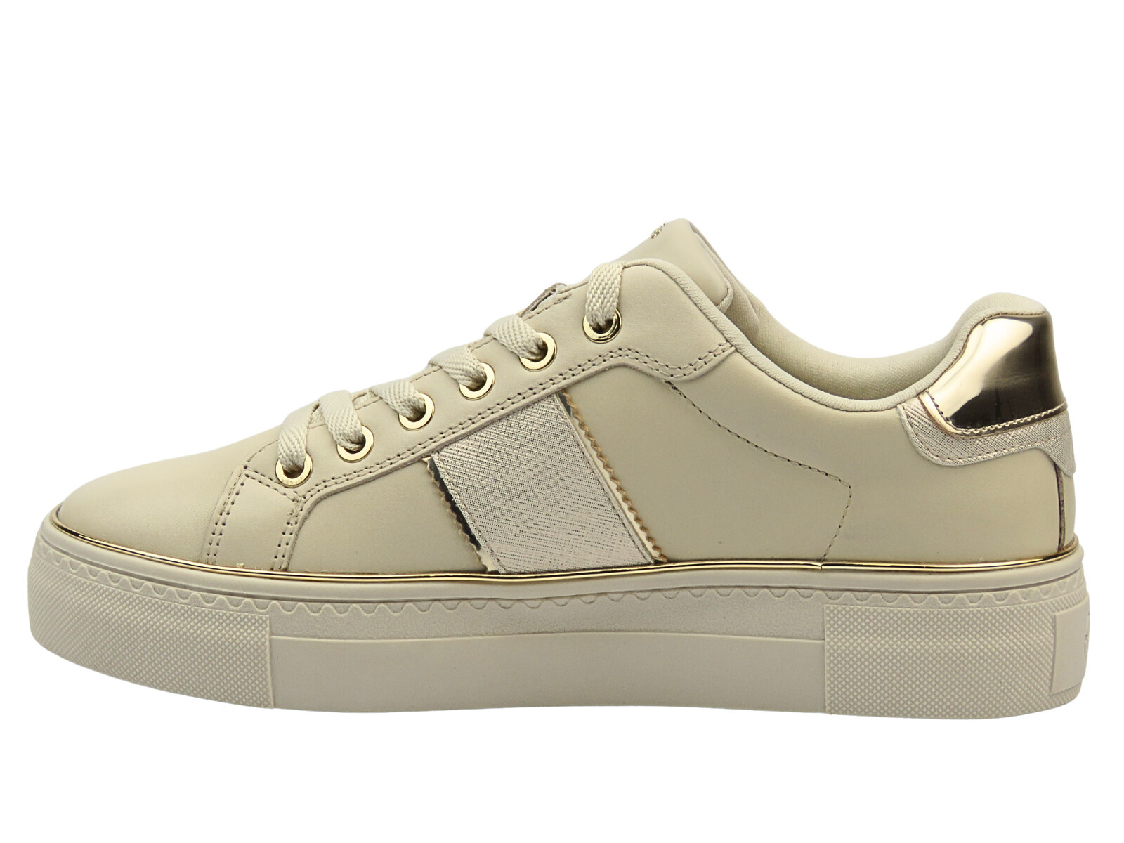 Wygodne buty sportowe marki Tamaris wykonane zostały z wysokiej jakości skóry ekologicznej oraz tworzywa sztucznego w odcieniu beżu.