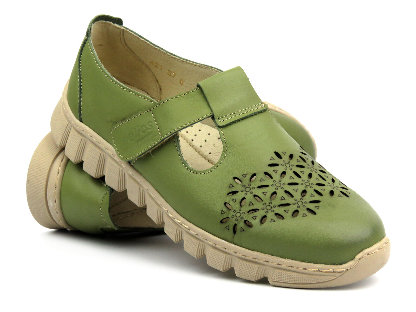 Skórzane półbuty damskie wiosenno-letnie - Helios Komfort 421, zielone