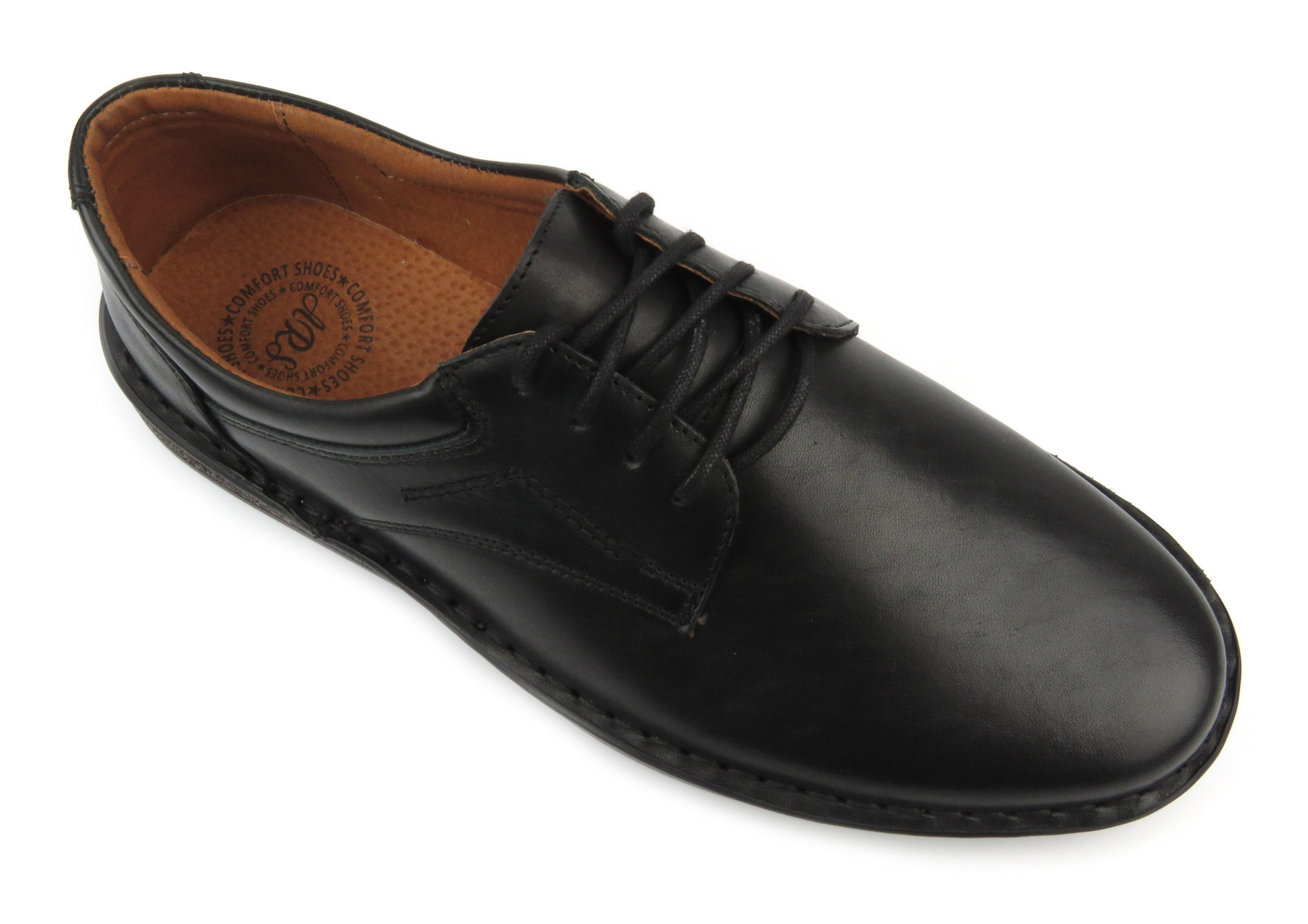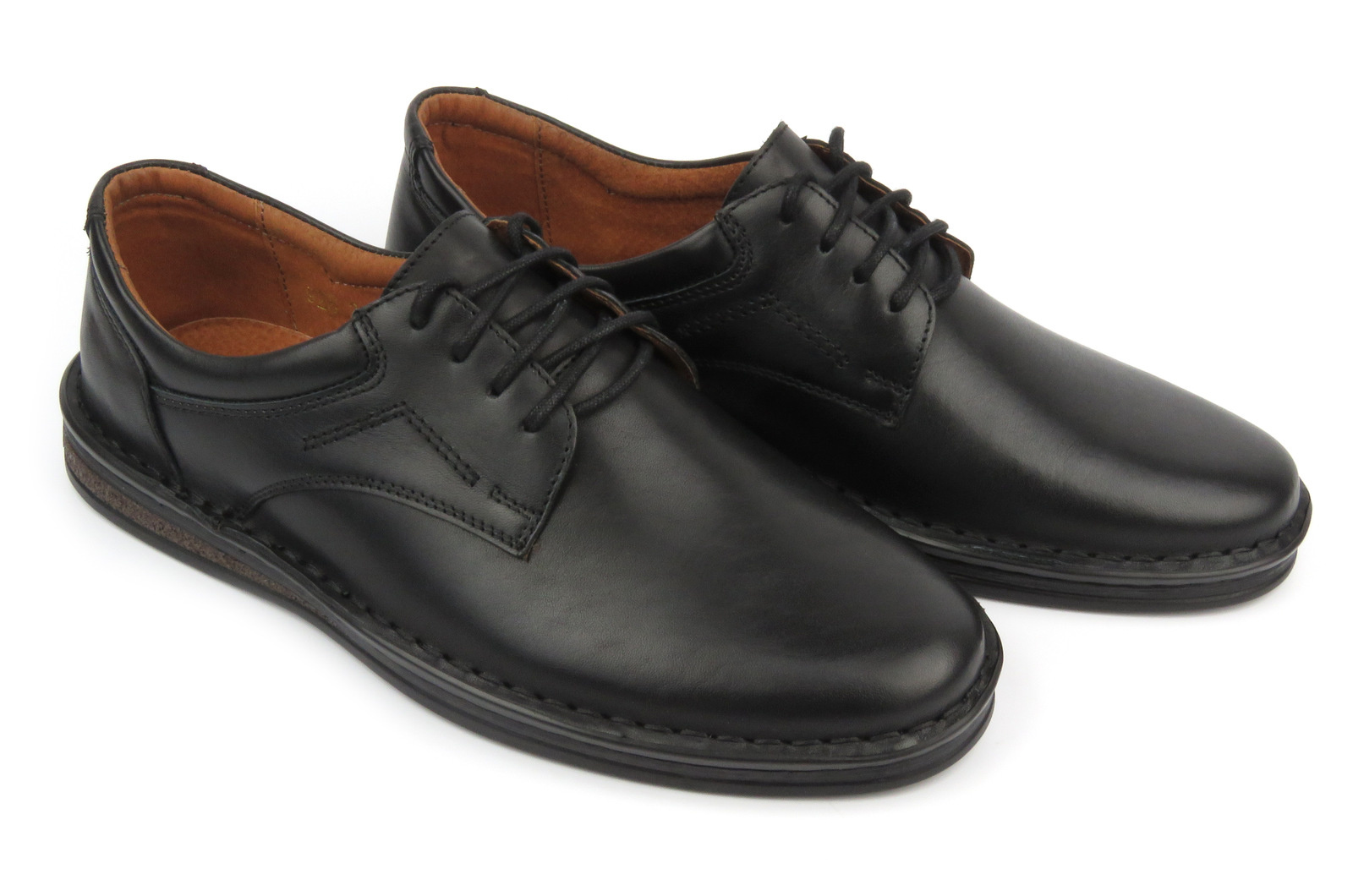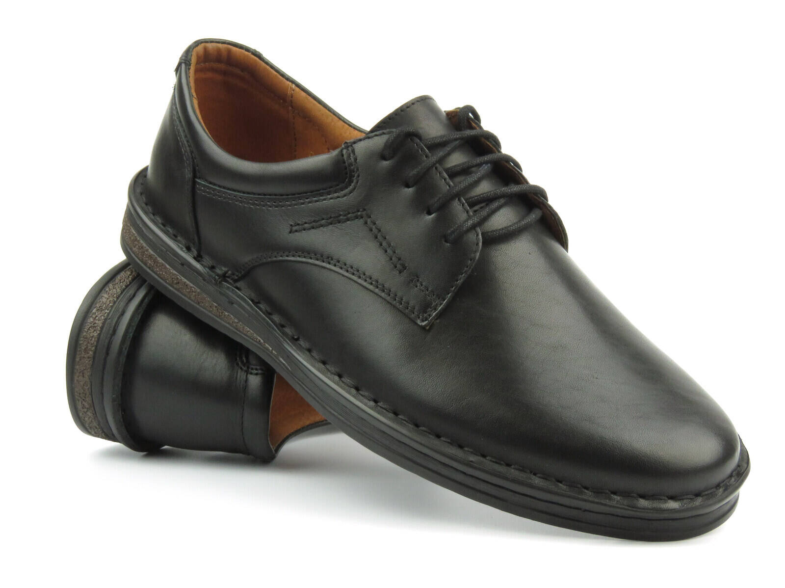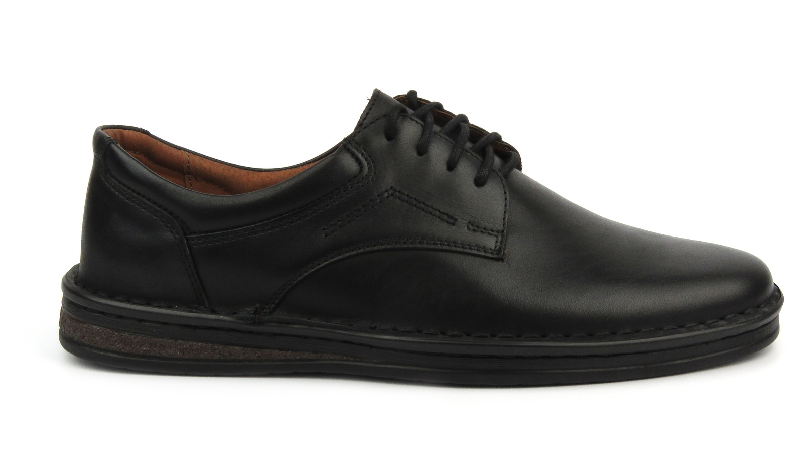Półbuty męskie polskiej marki Waldi zostały wykonane z wysokiej jakości skóry naturalnej w kolorze czarnym.