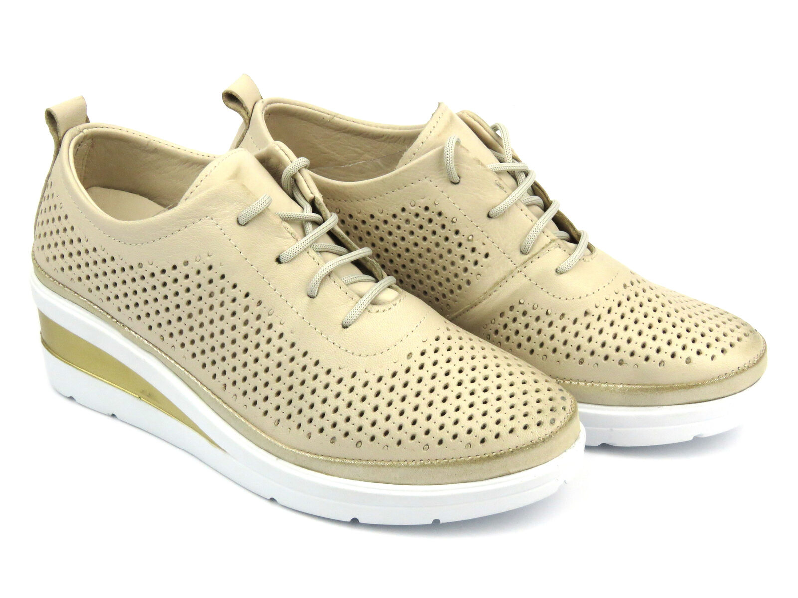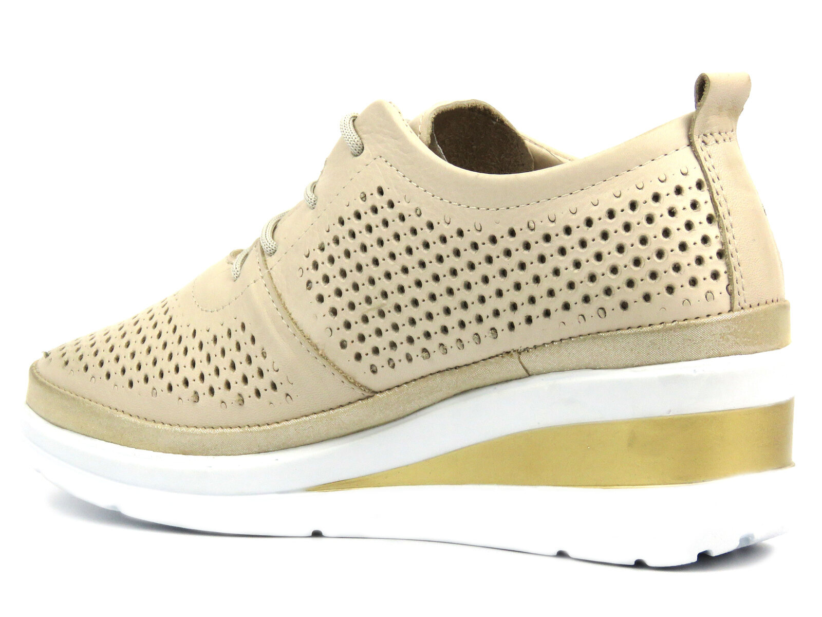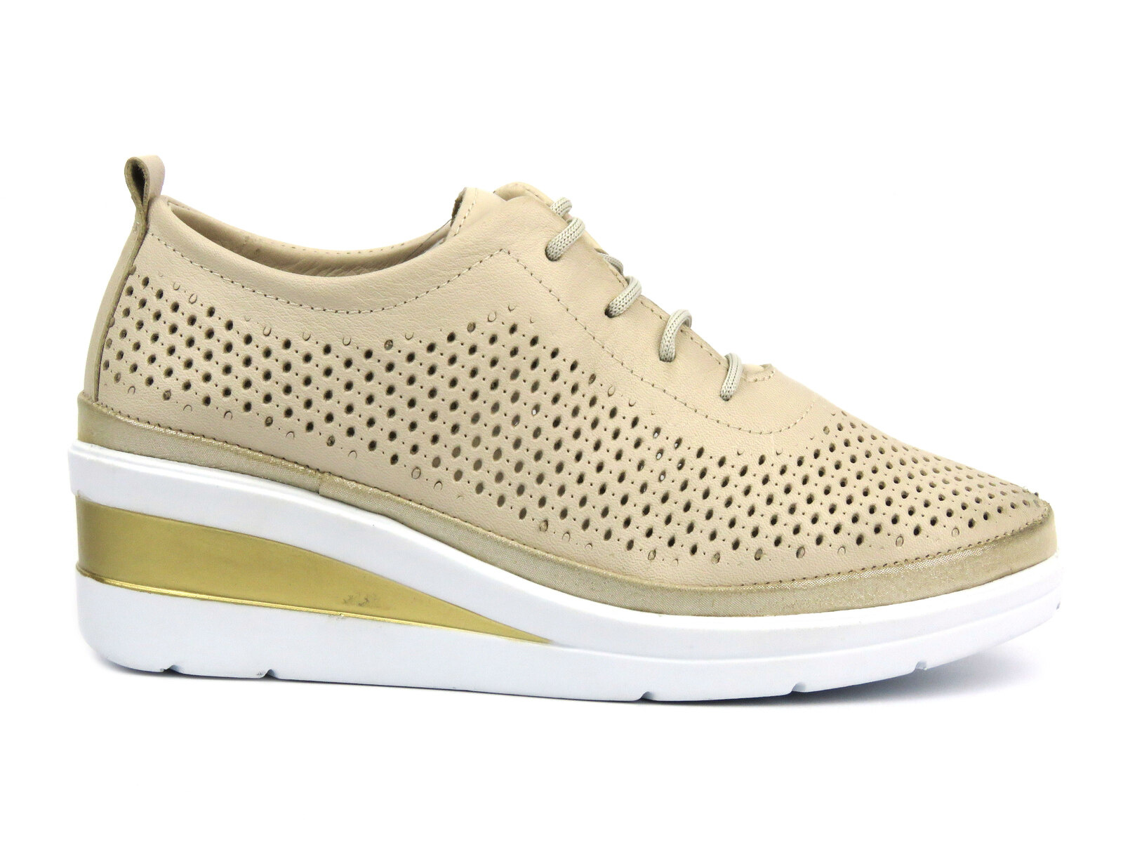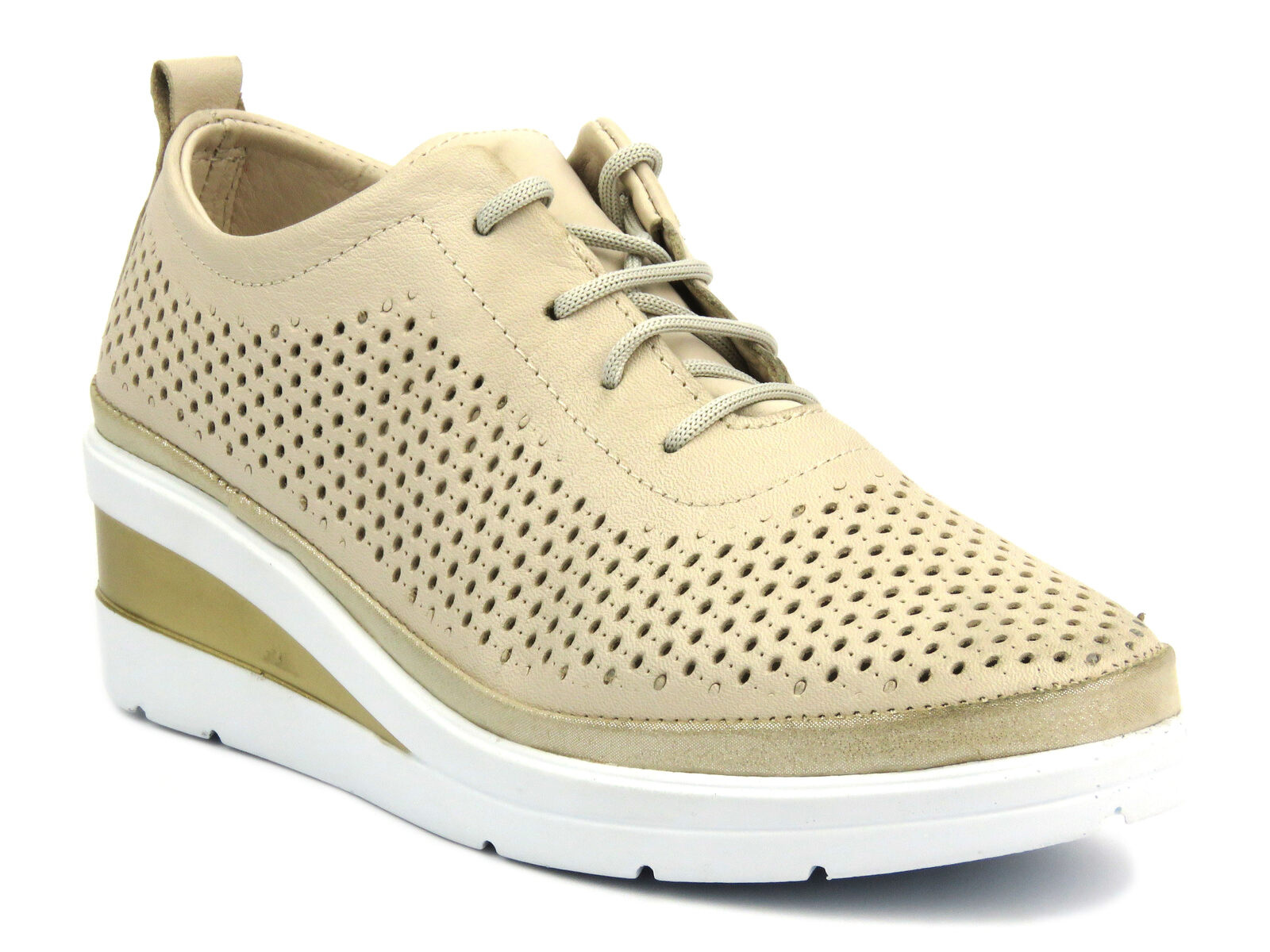 Sneakersy, półbuty damskie na koturnie - Helios 1304, beżowo-złote