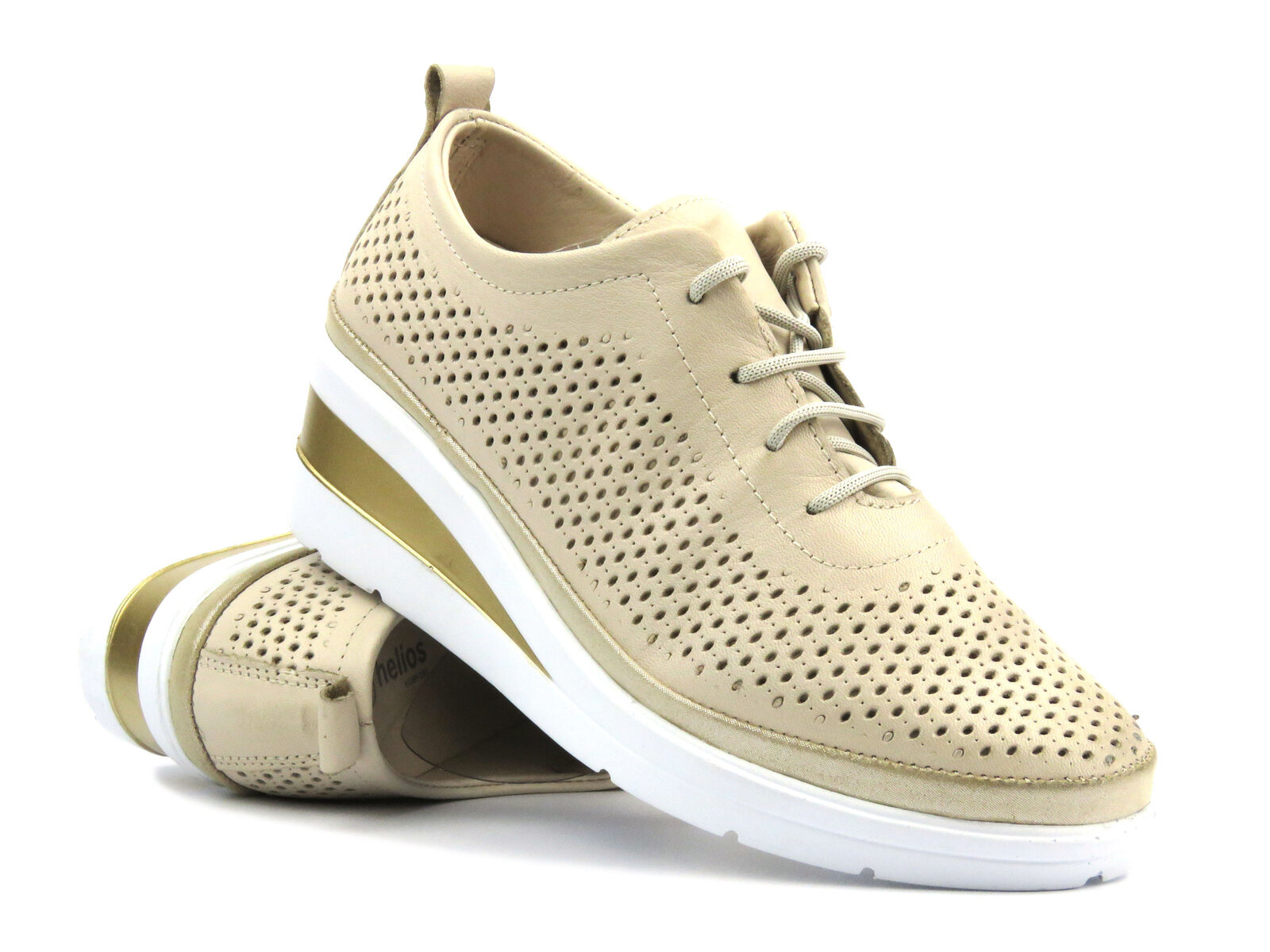 Sneakersy, półbuty damskie na koturnie - Helios 1304 beżowo-złote