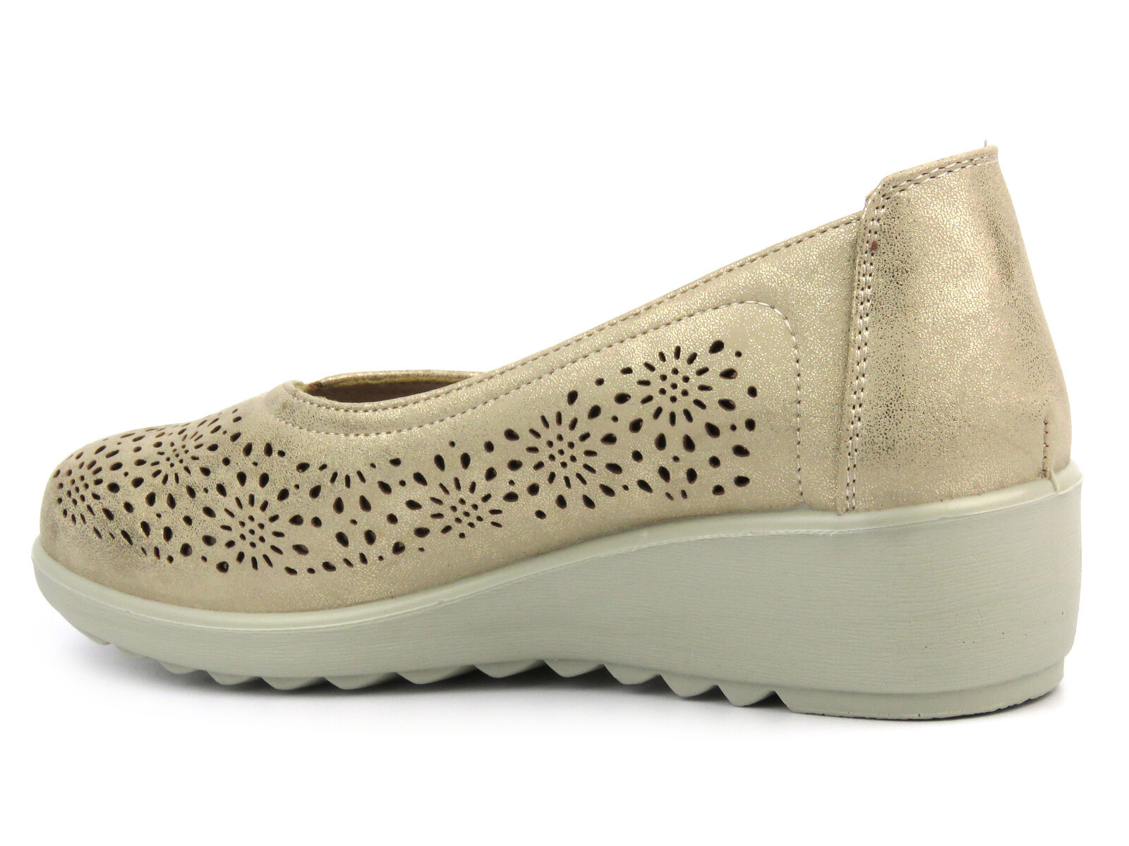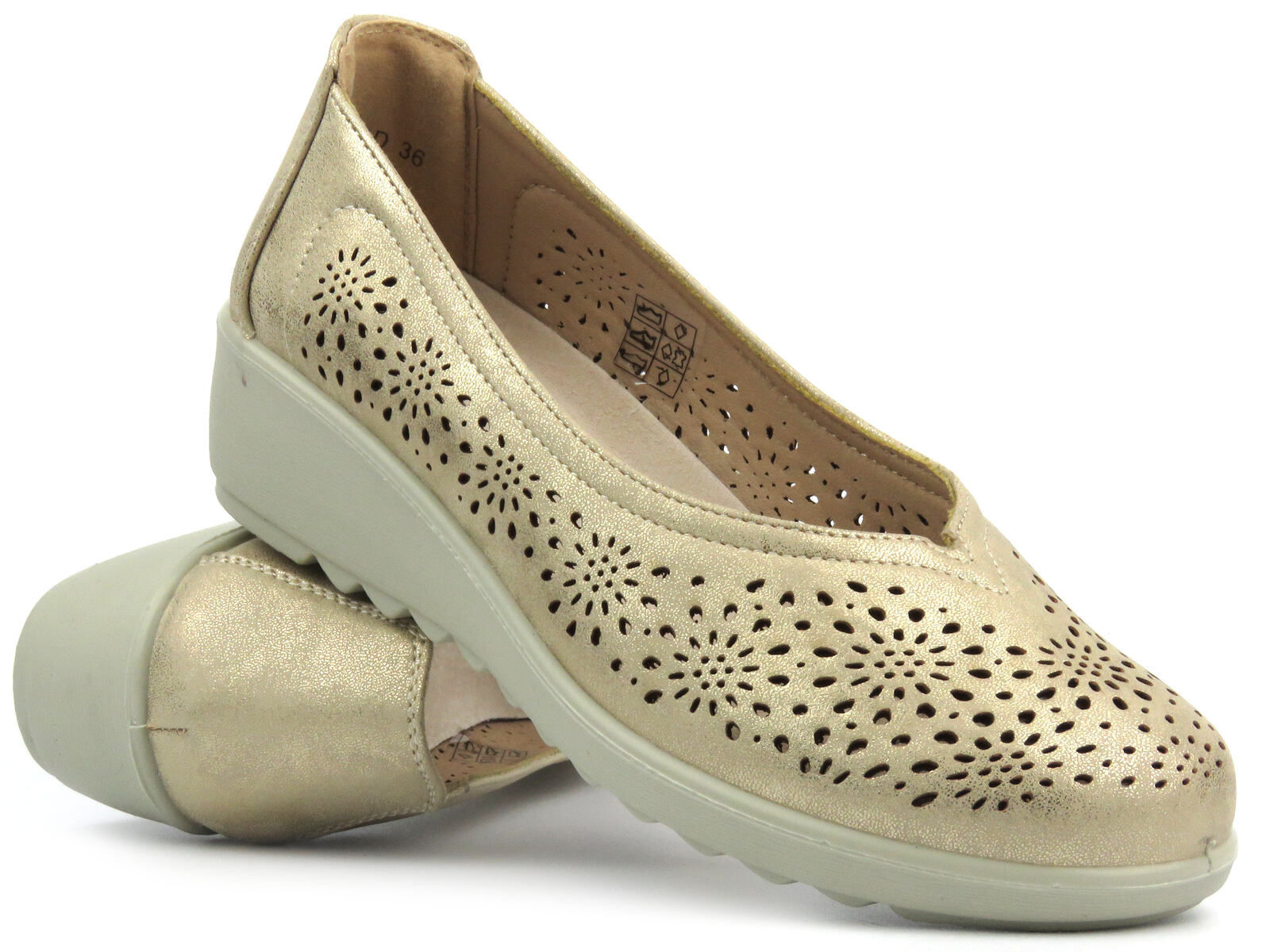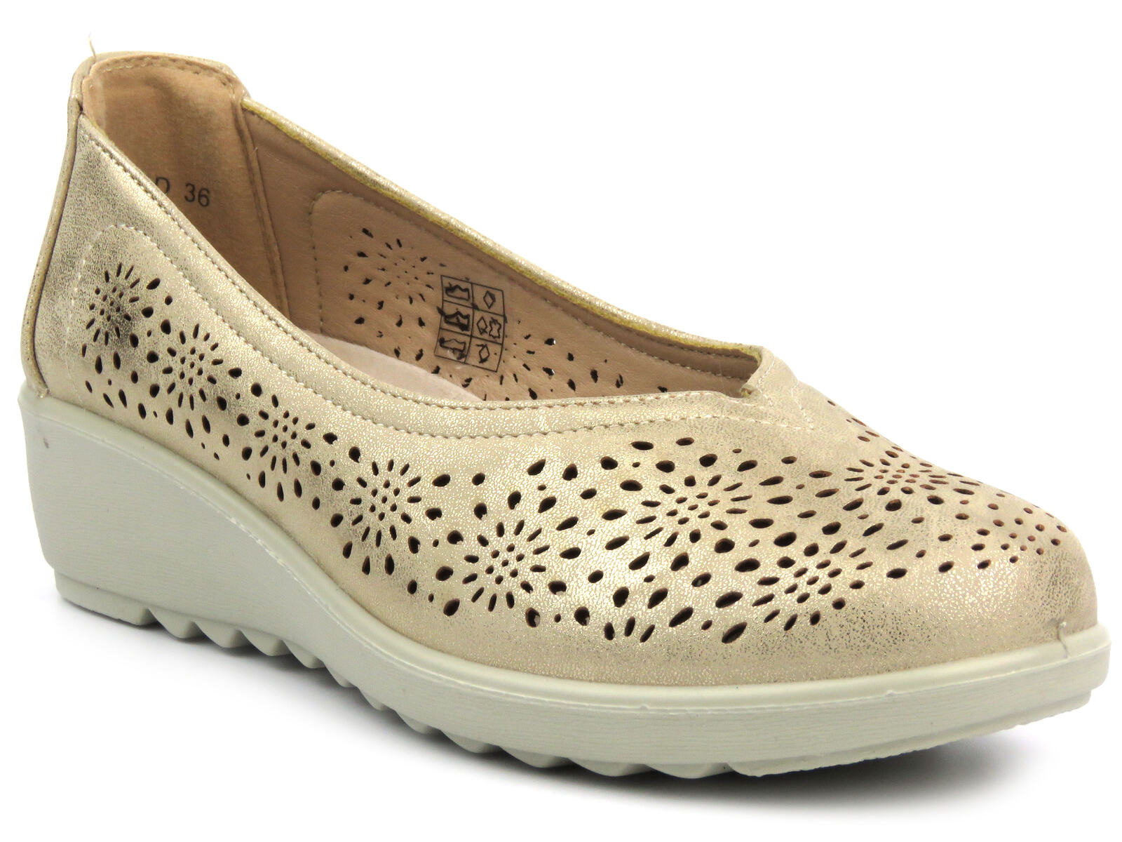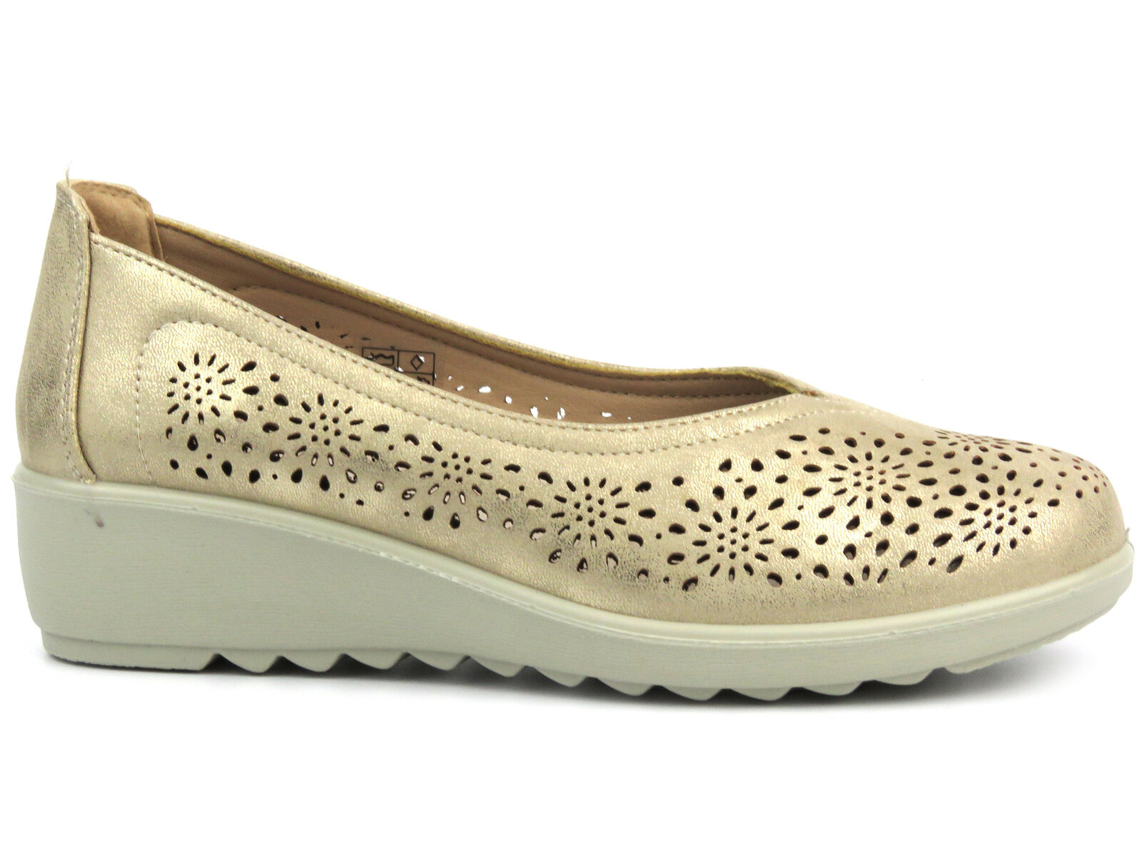 Ażurowe wycięcia podkreślają elegancki styl obuwia.
