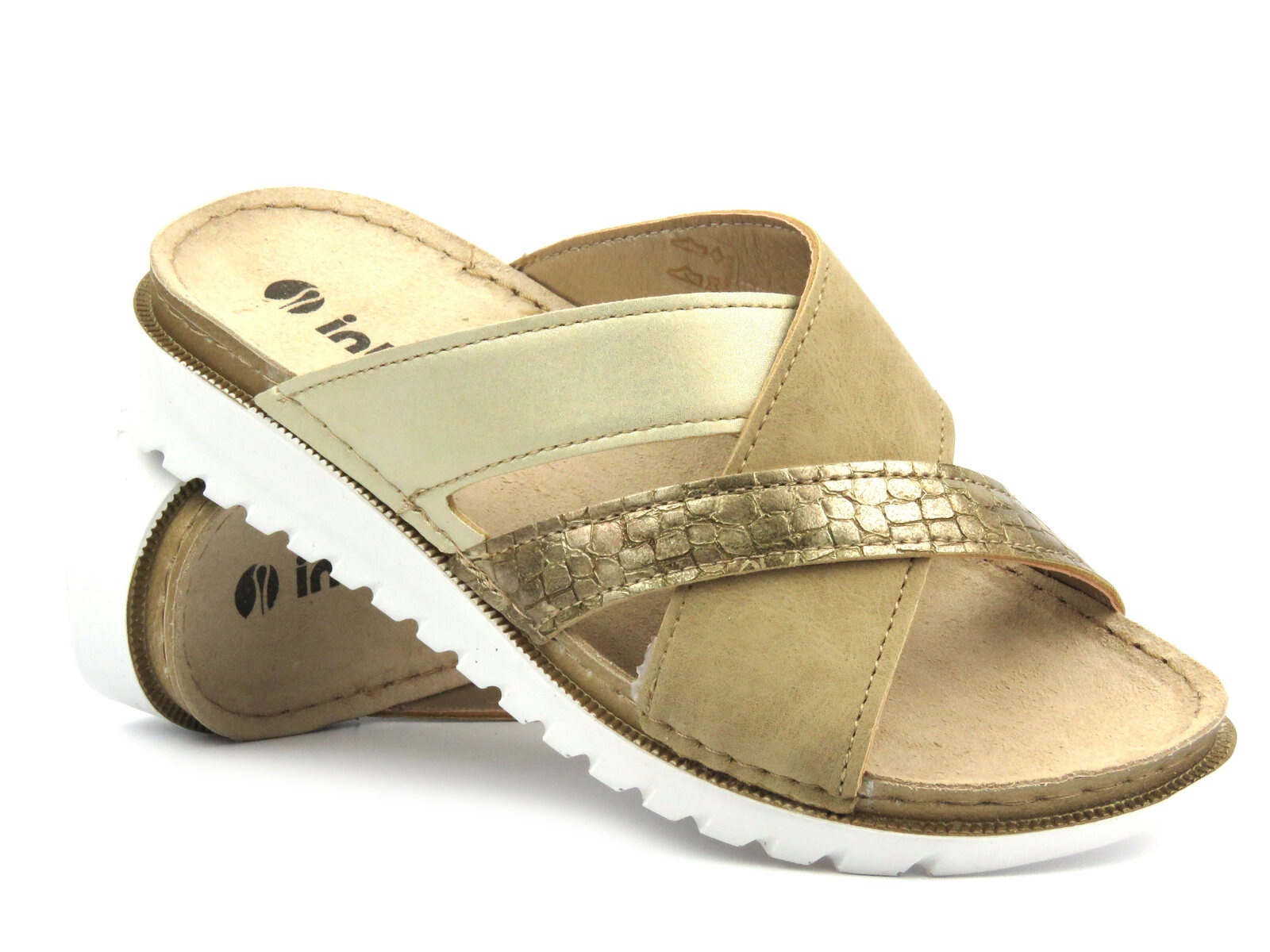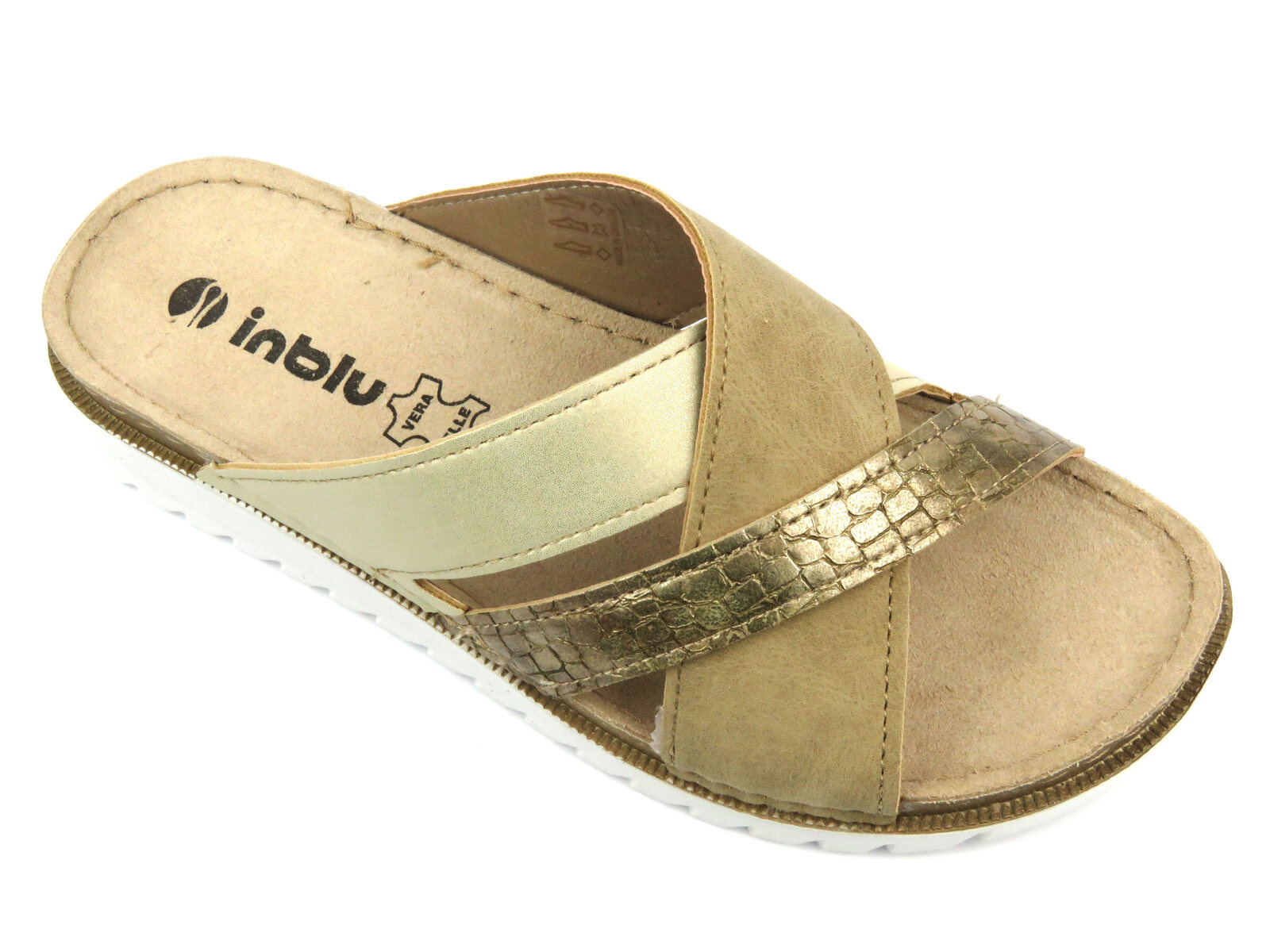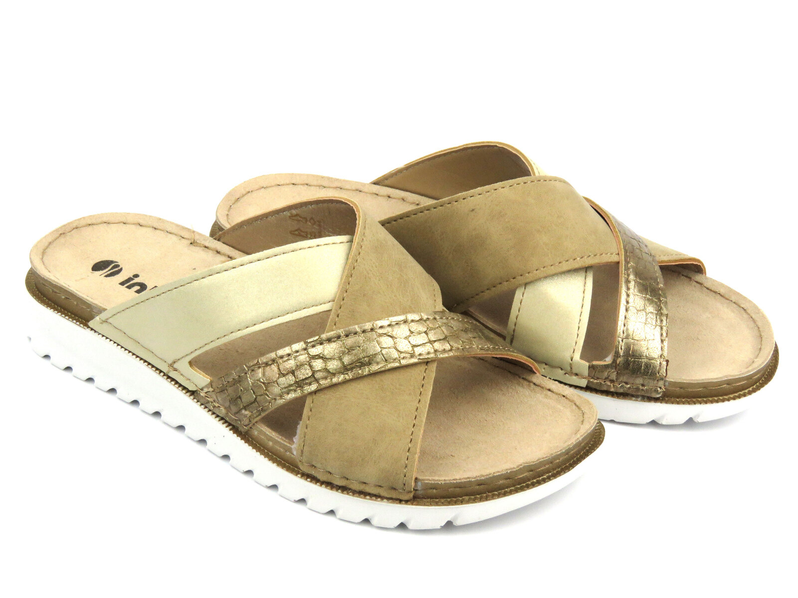 Opinie o Klapki damskie ze skórzaną wkładką - Inblu CN-40, piaskowy