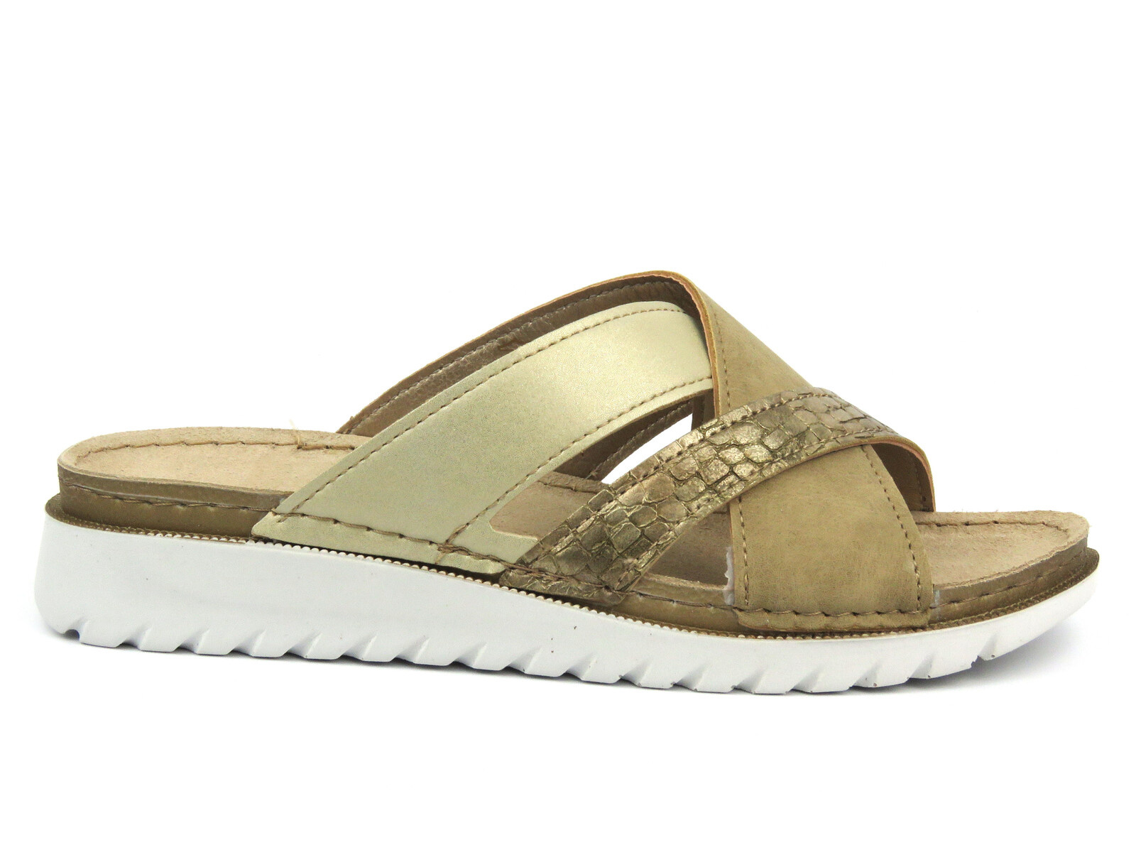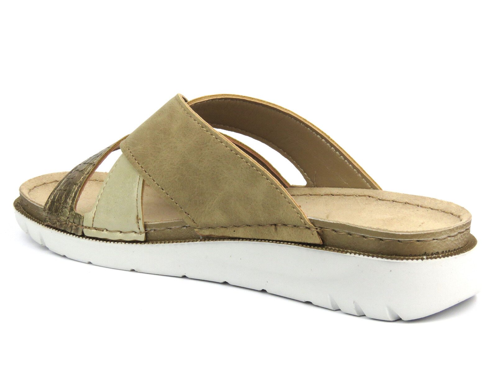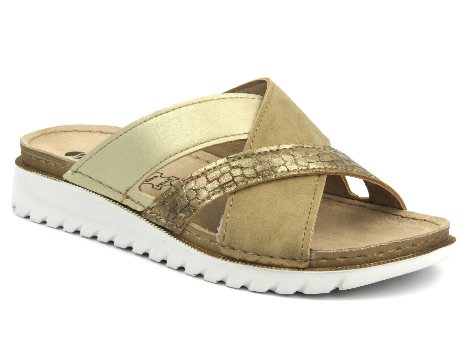 Opinie o Klapki damskie ze skórzaną wkładką - Inblu CN-40, piaskowy