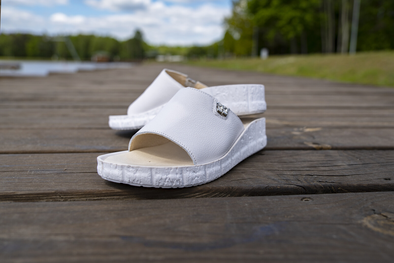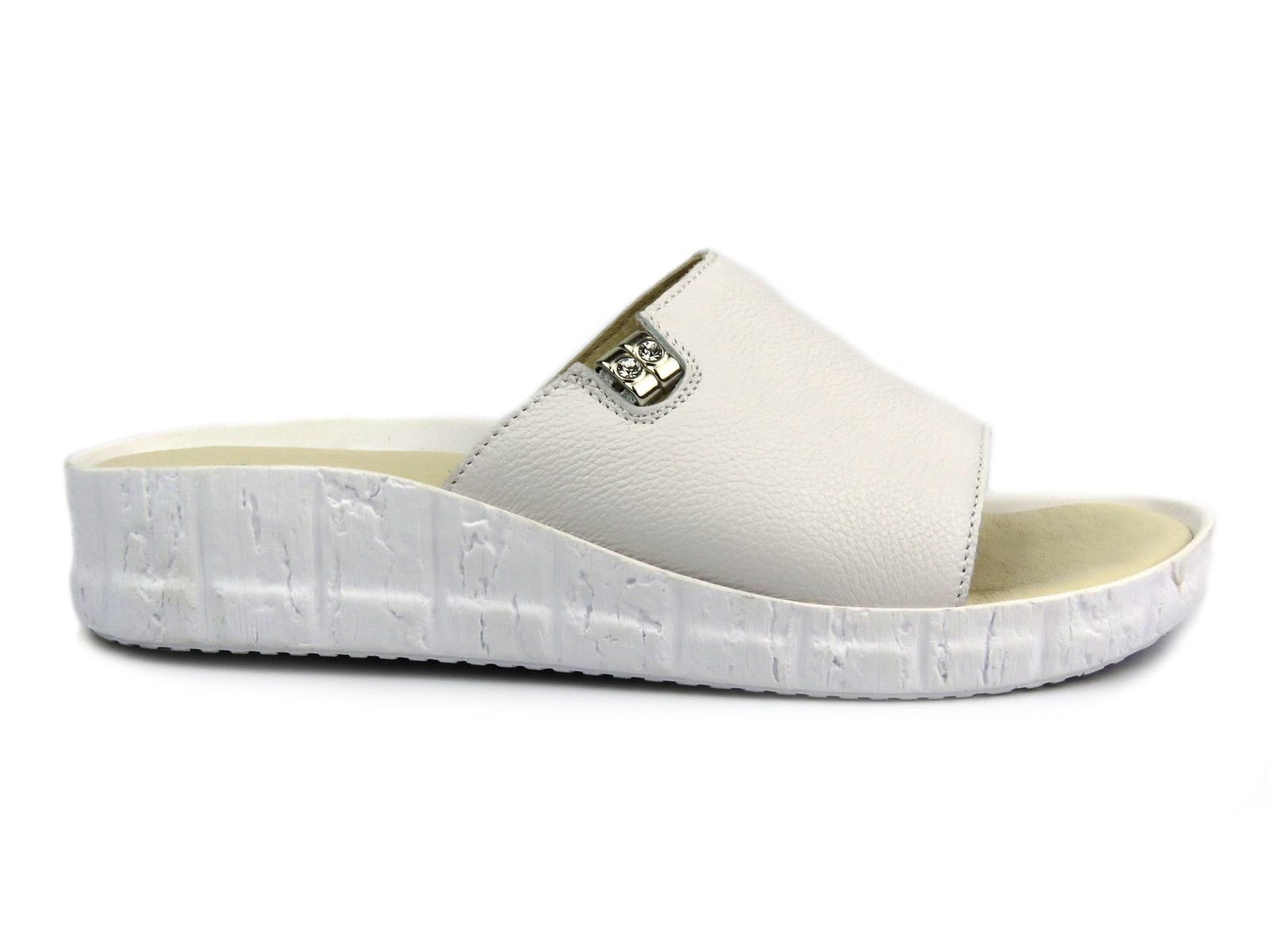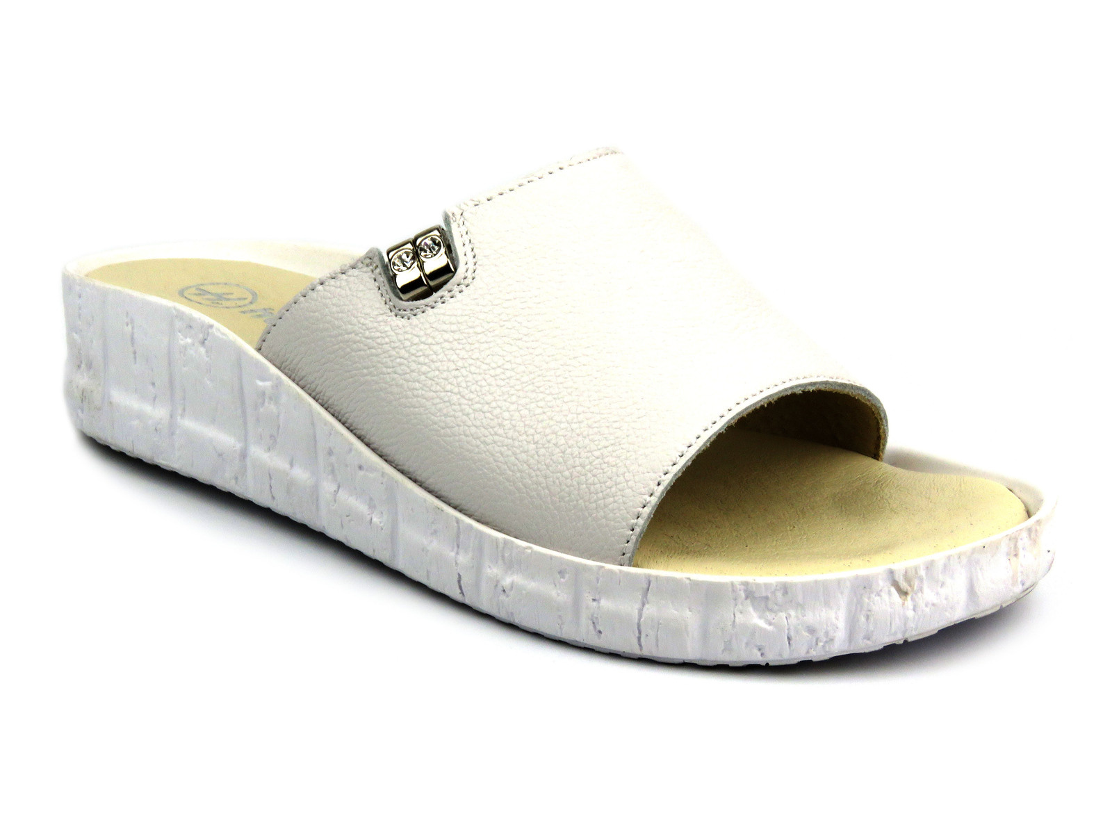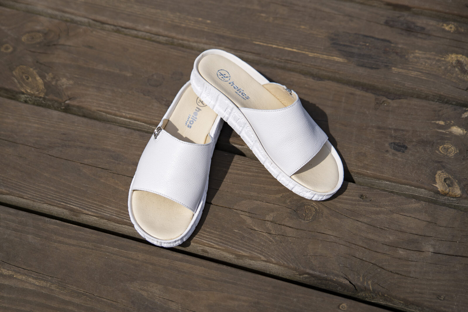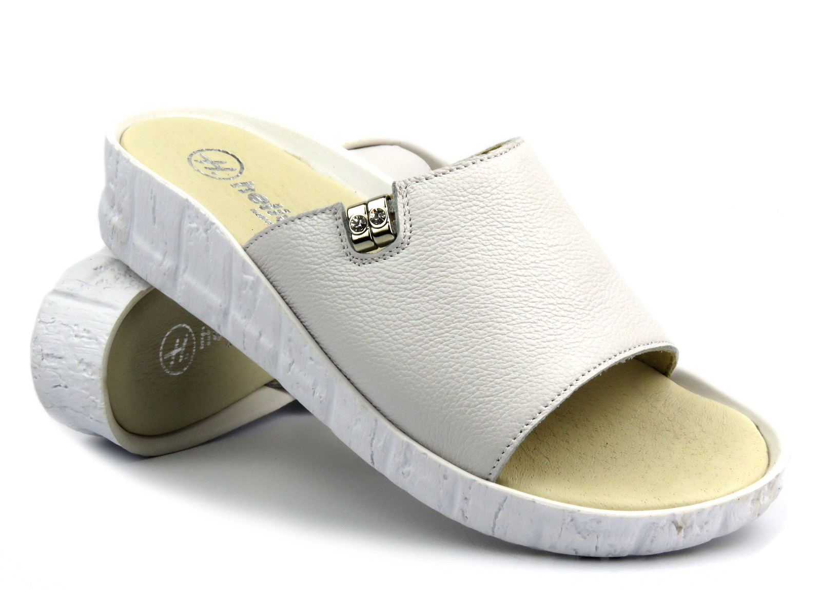 Opinie o Klapki damskie skórzane płaskie białe Helios Komfort 130