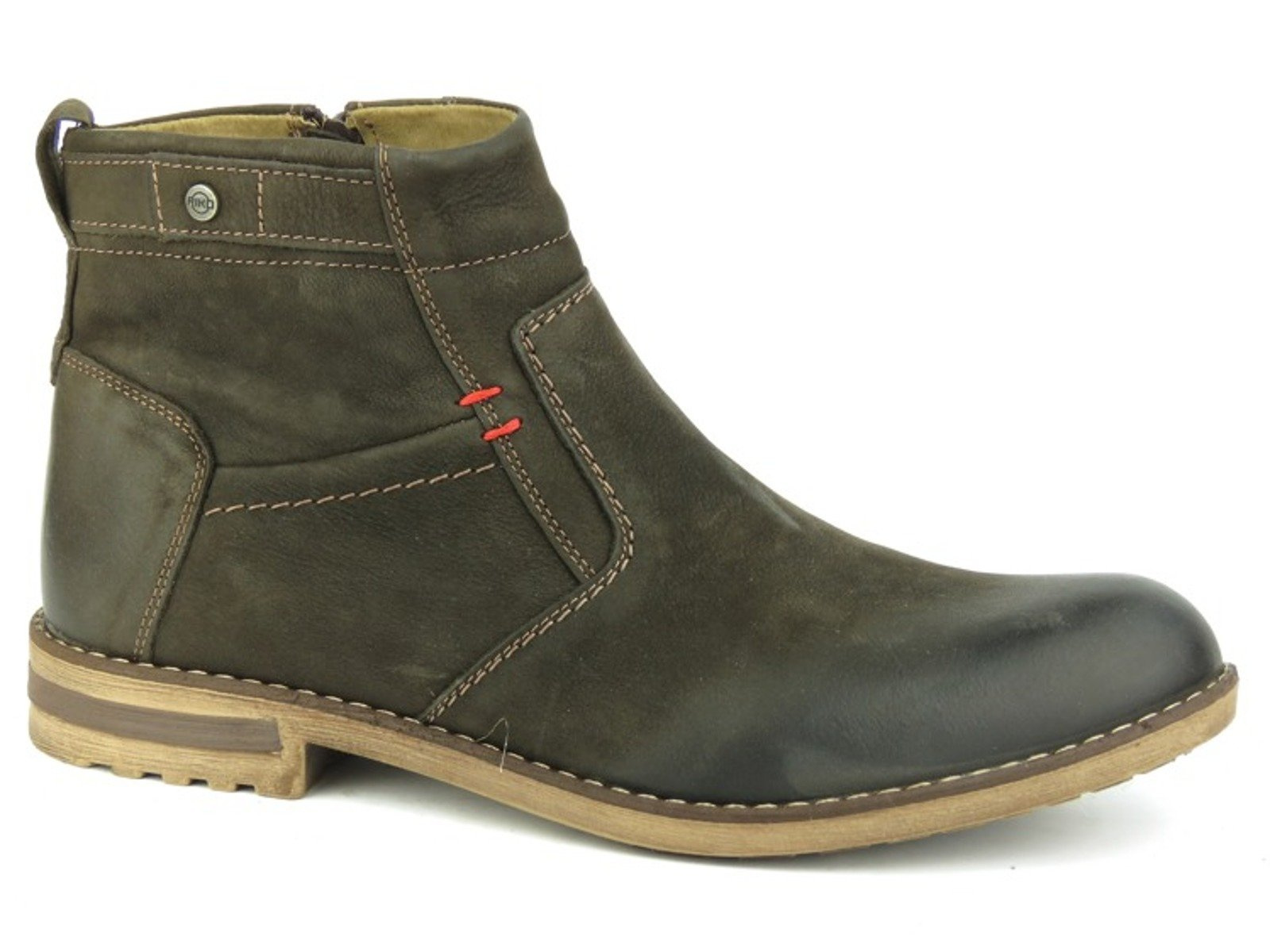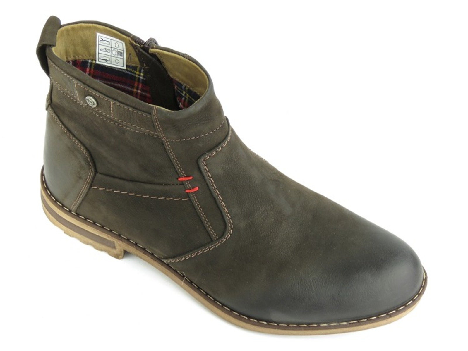 Trzewiki męskie cenionej polskiej marki Riko zostały wykonane z wysokiej jakości skóry naturalnej nubukowej. Wnętrze jest lekko ocieplone grubszą tkaniną. Zamek błyskawiczny pozwala na szybkie i wygodne zakładanie obuwia. Trwała podeszwa ma właściwości antypoślizgowe.
