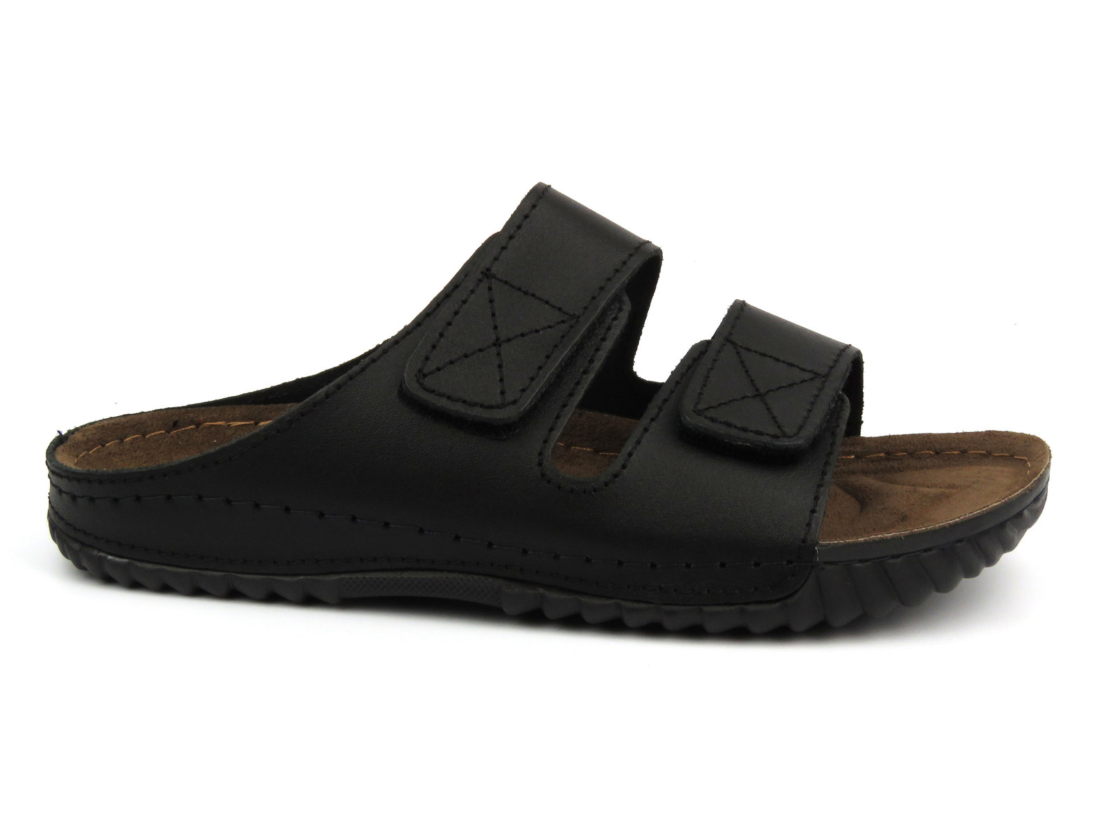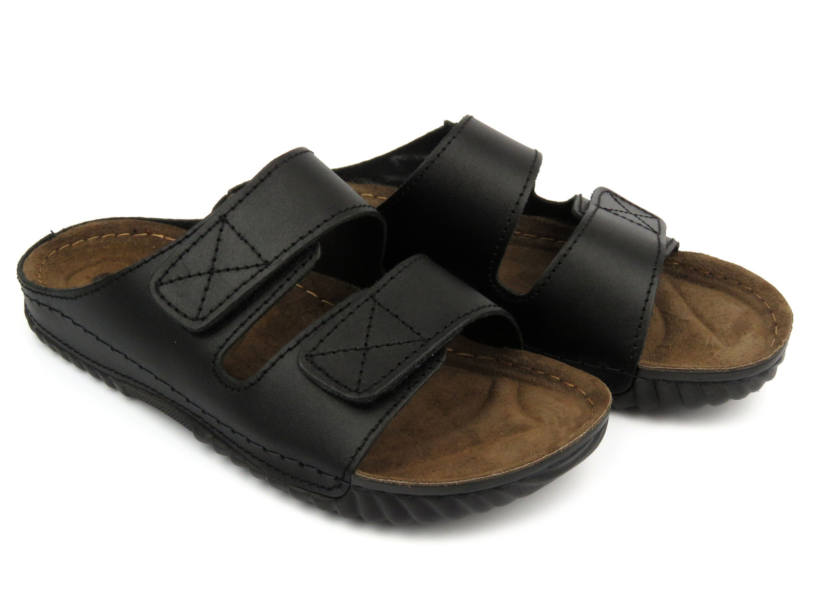 Skórzane klapki męskie na rzepy czarne INBLU FM-1U