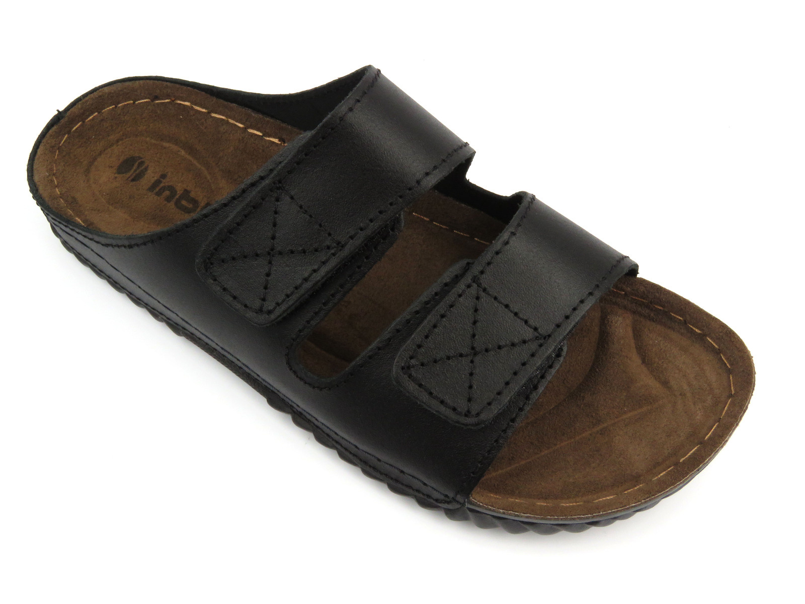Opinie o Skórzane klapki męskie na rzepy czarne INBLU FM-1U