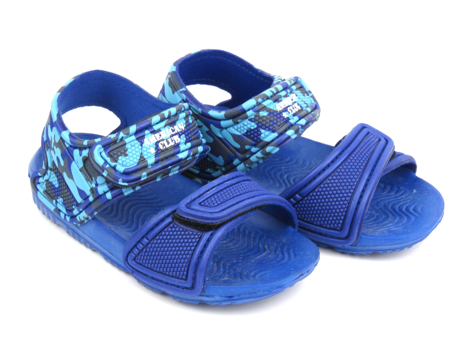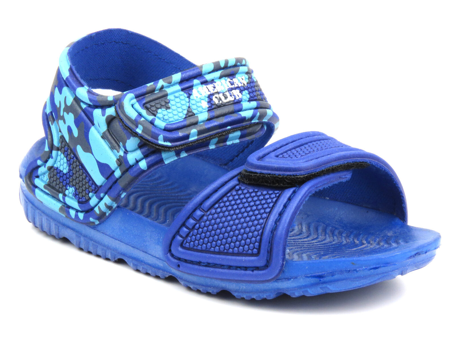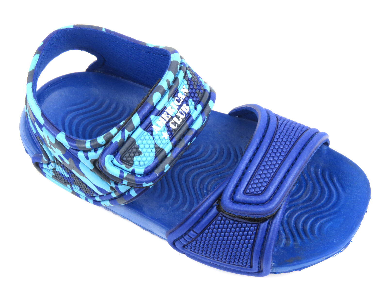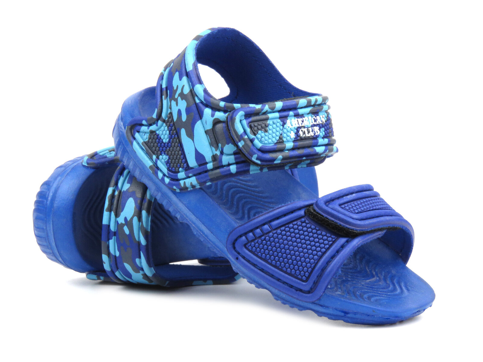 Niebieskie sandałki marki American Club to propozycja dla aktywnych dzieci, które potrzebują lekkiego i praktycznego obuwia na lato. Wykonane w całości z wodoodpornej pianki EVA, świetnie sprawdzą się zarówno podczas zabawy w ogrodzie, jak i na plaży czy przy basenie.