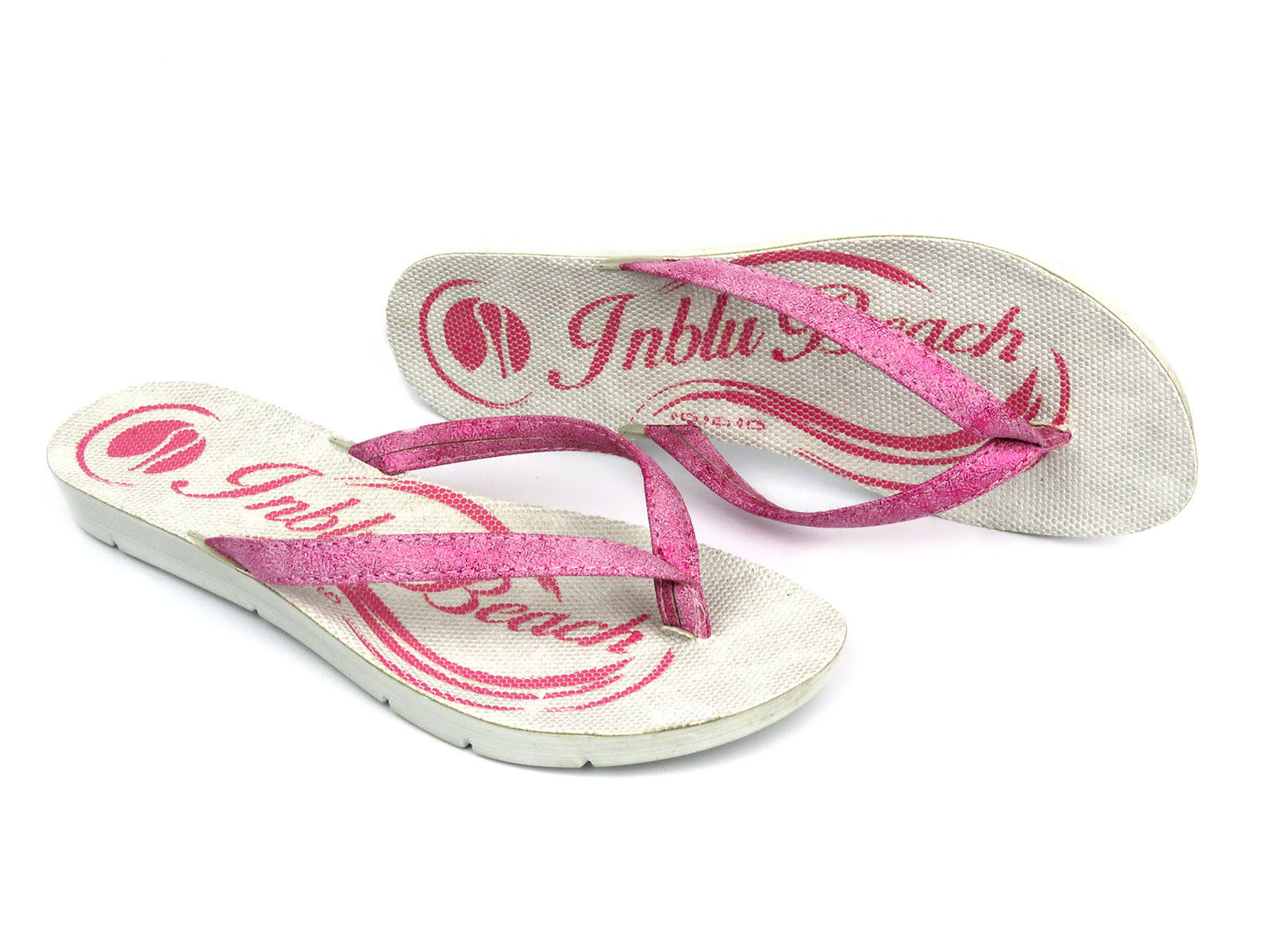 Japonki damskie z błyszczącym paskiem - INBLU VELA, fuksja