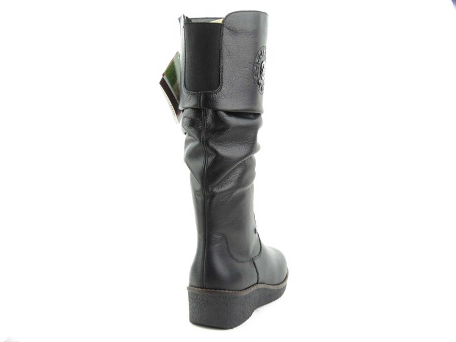 Kozaki damskie renomowanej marki Rieker zostały wykonane z wysokiej jakości skóry naturalnej licowej. Wnętrze jest ocieplone naturalną wełną. Zamek błyskawiczny pozwala na szybkie i wygodne zakładanie obuwia. Gruba, elastyczna podeszwa zapewnia dobrą izolację od podłoża oraz ma właściwości antypoślizgowe. Dzięki zastosowaniu membrany RikerTex, obuwie chroni przed zimnem, jest wodoodporne i pozwala stopom oddychać. Spody zostały wykonane w technologii Antistress, która amortyzuje wstrząsy powstałe w trakcie chodzenia. Delikatnie marszczona cholewka dodaje butom ciekawego wyglądu.