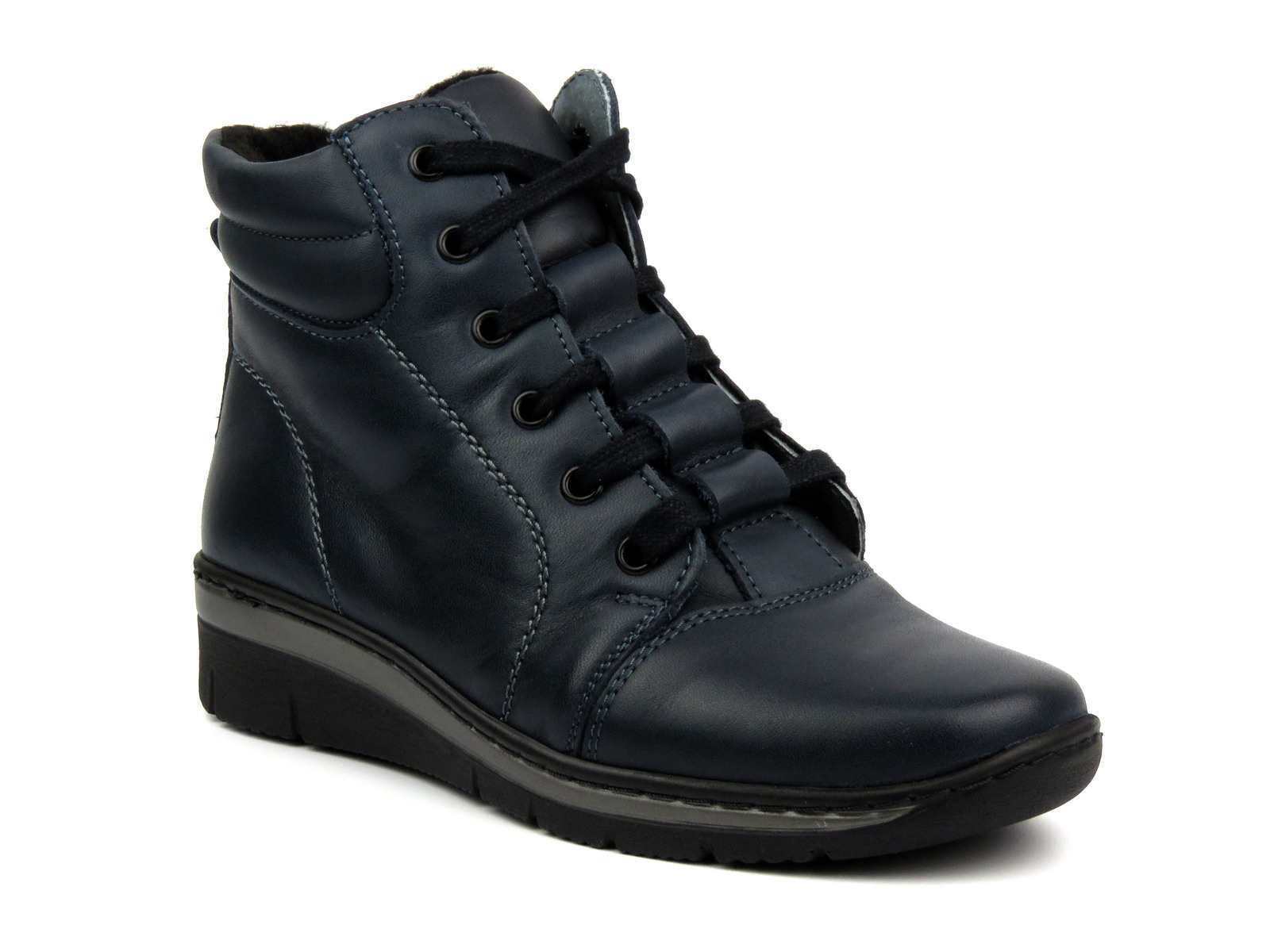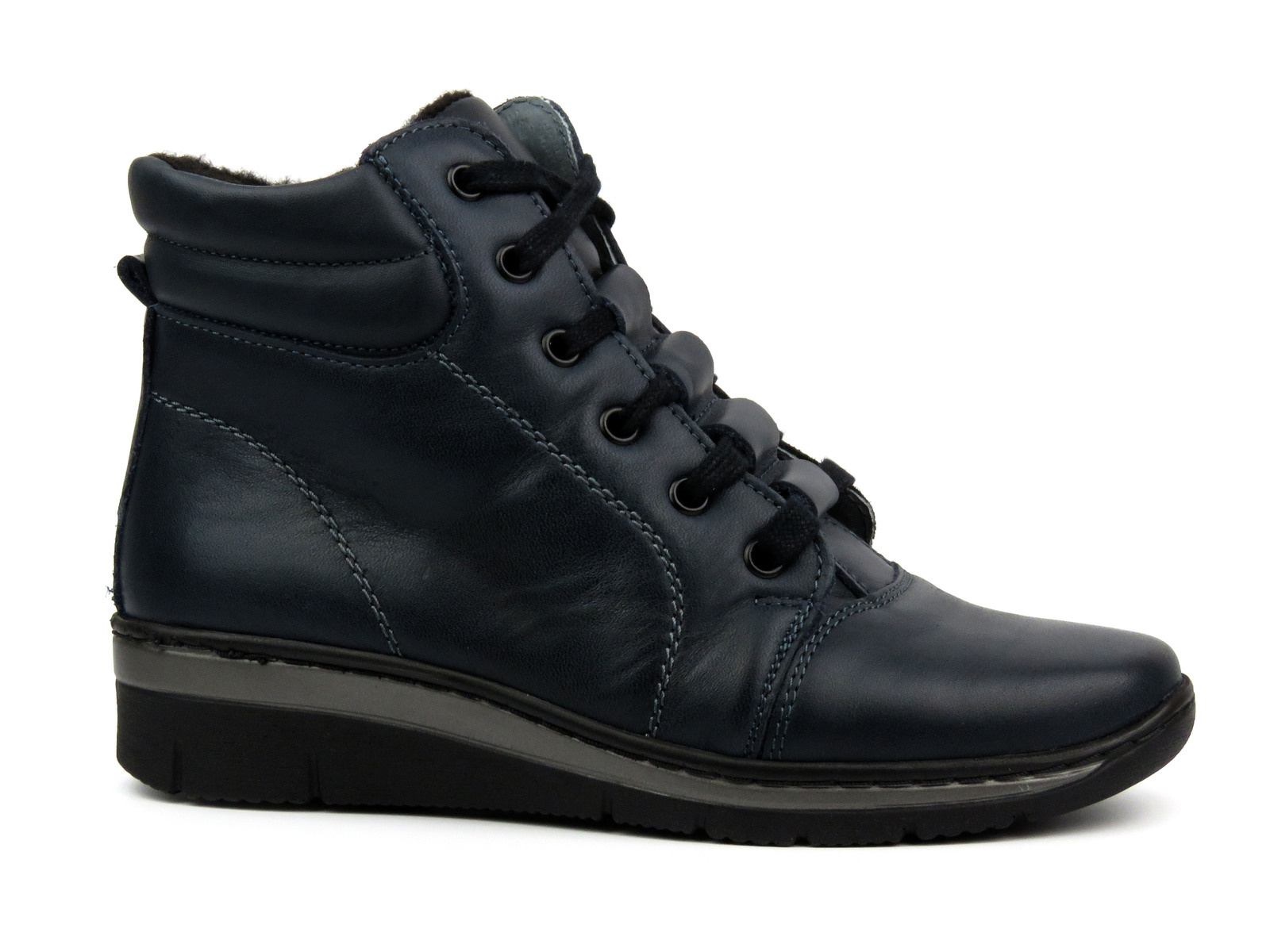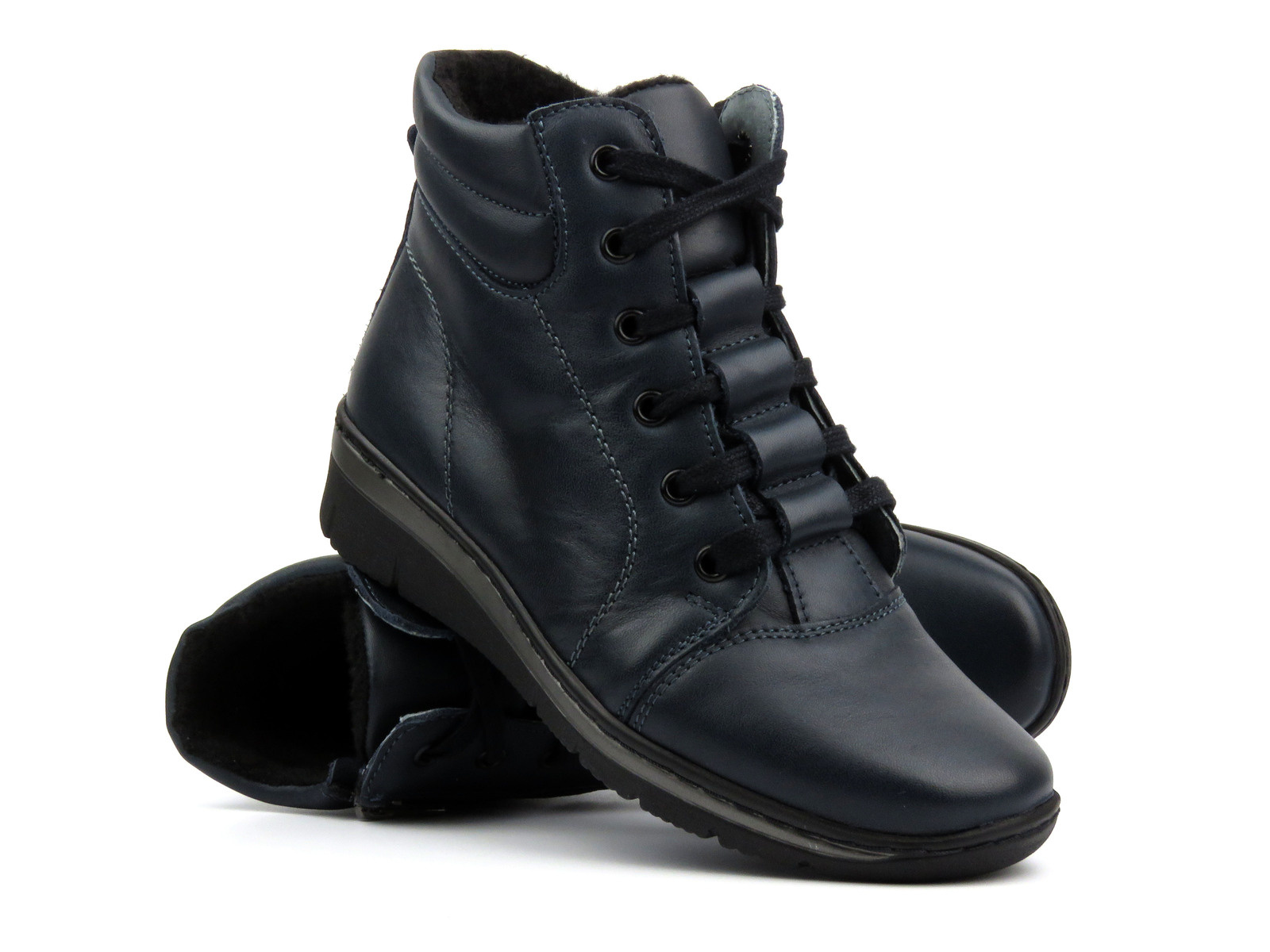 Sportowe botki damskie ze skóry naturalnej - HELIOS Komfort 562, granatowe