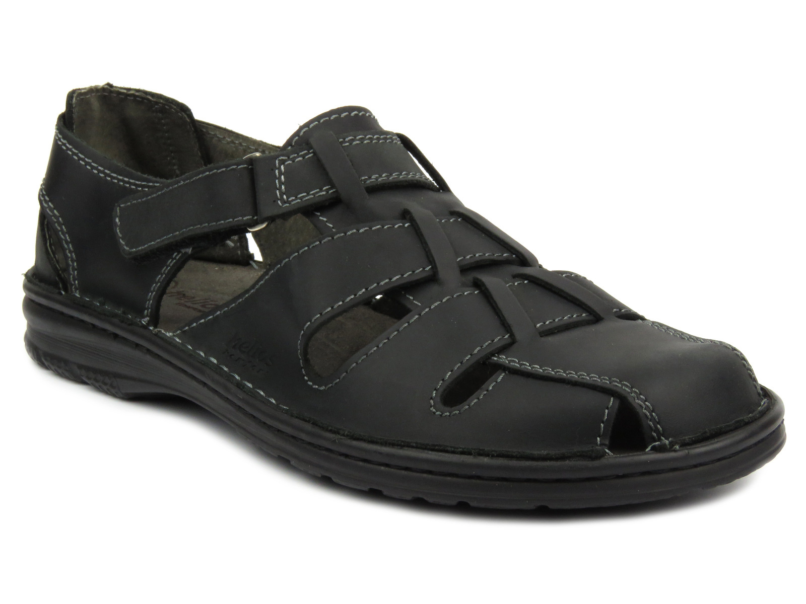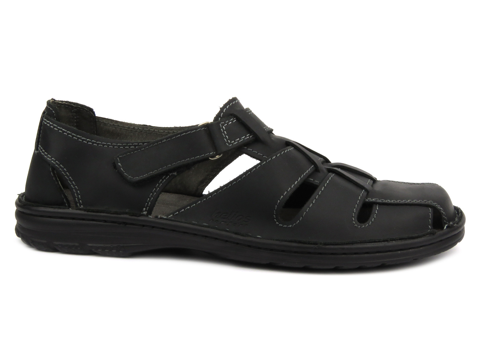 Skórzane sandały męskie czarrne Helios Komfort 825