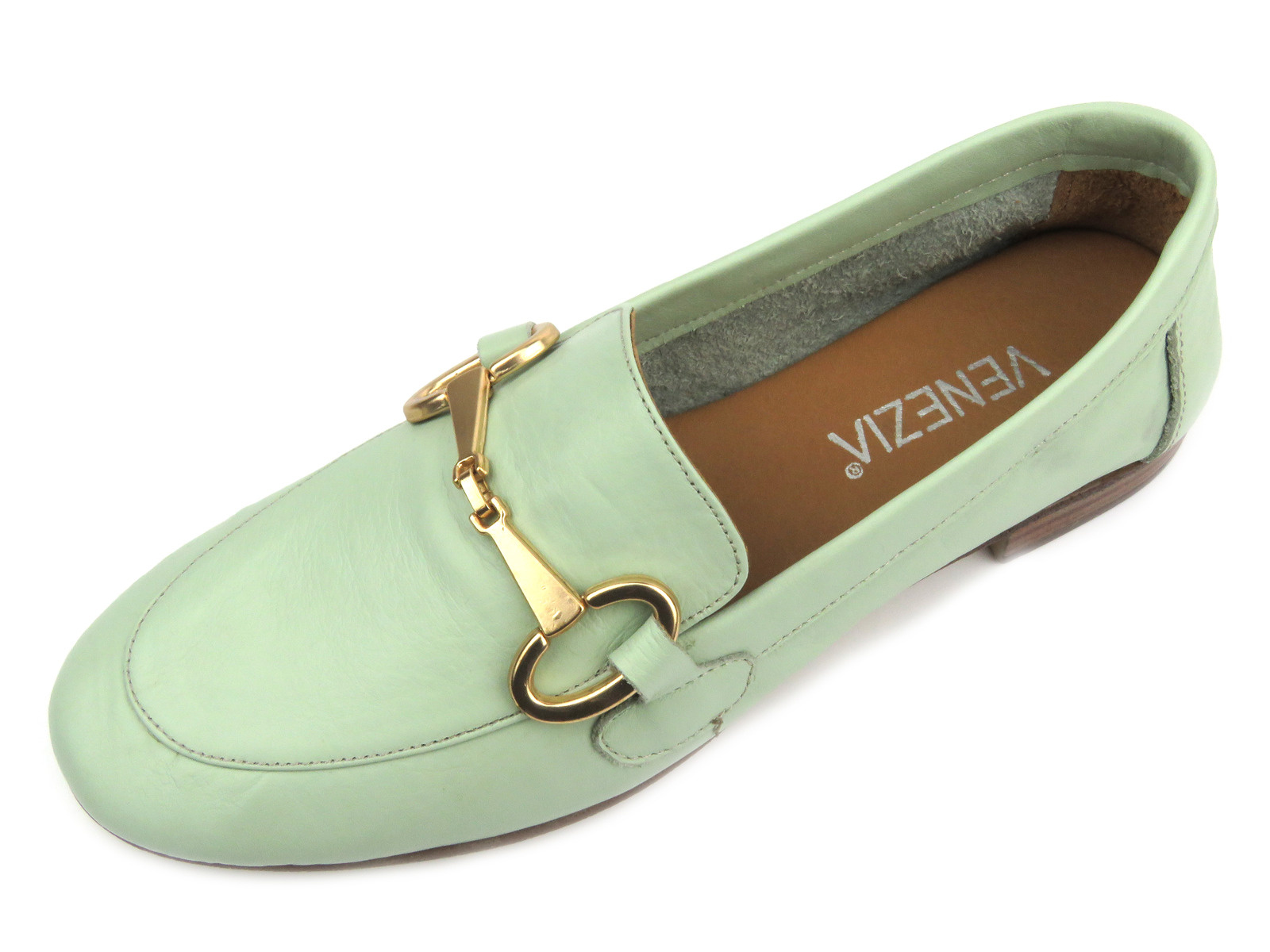 Loafersy damskie ze złotą ozdobą - VENEZIA E246, Zielone