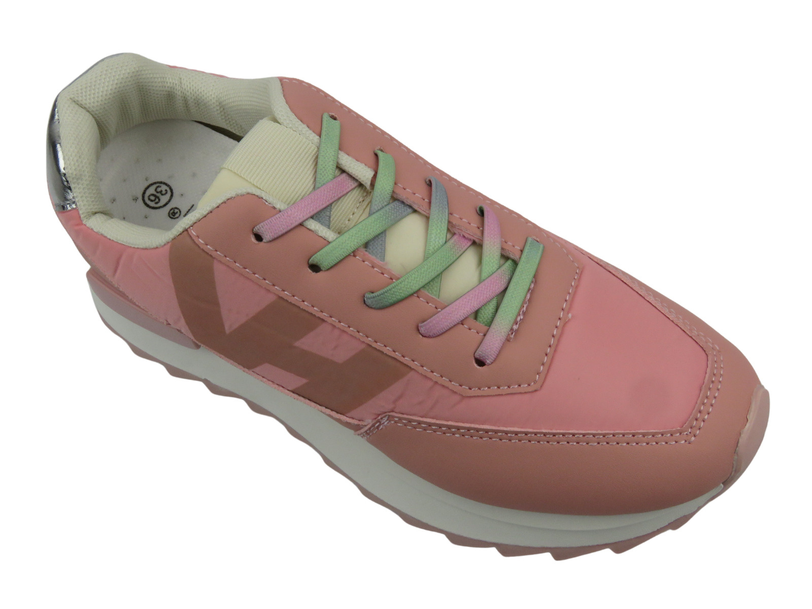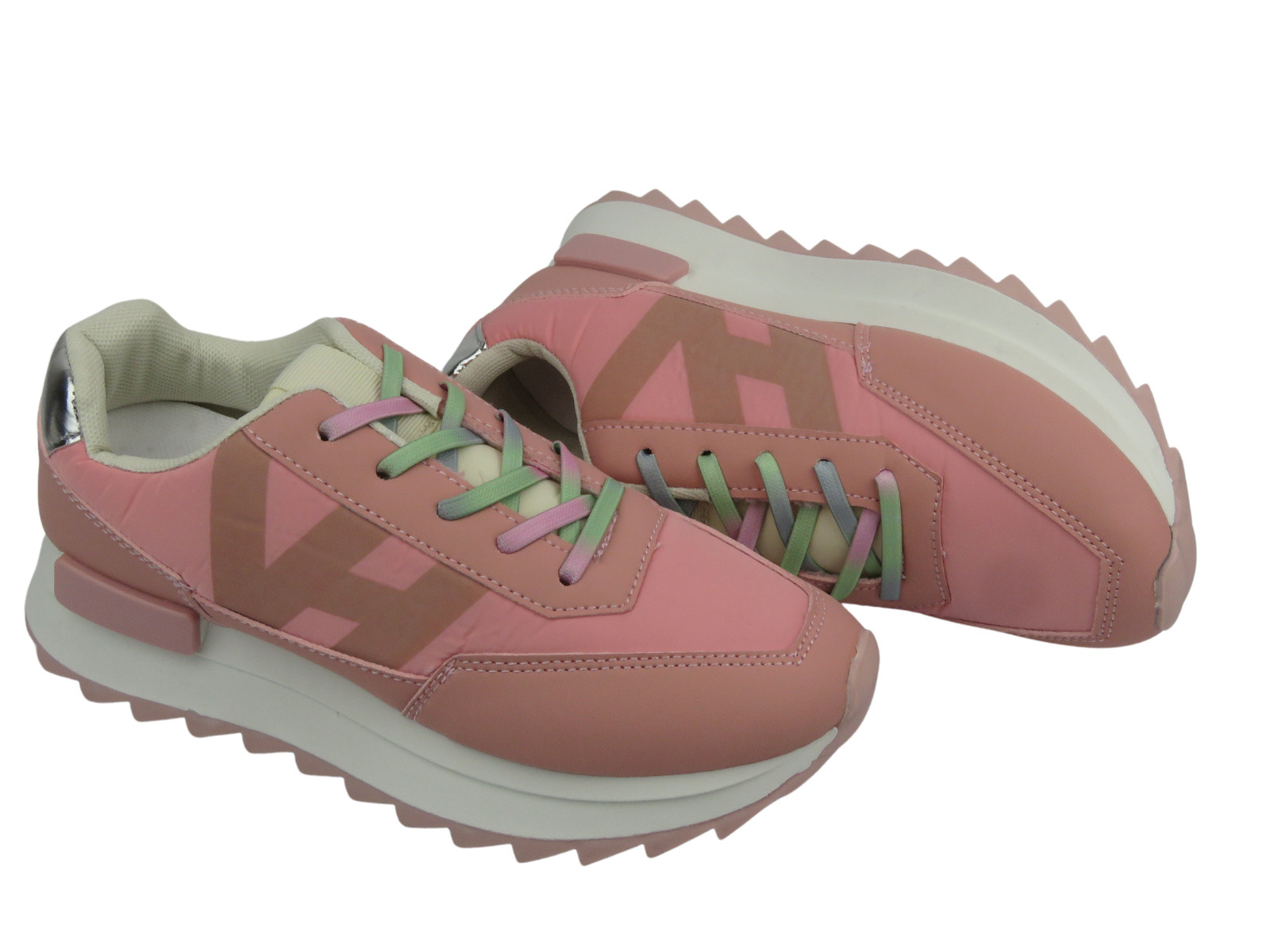 Buty damskie sportowe marki Potocki wykonane zostały ze skóry ekologicznej i tkaniny w odcieniach różu.