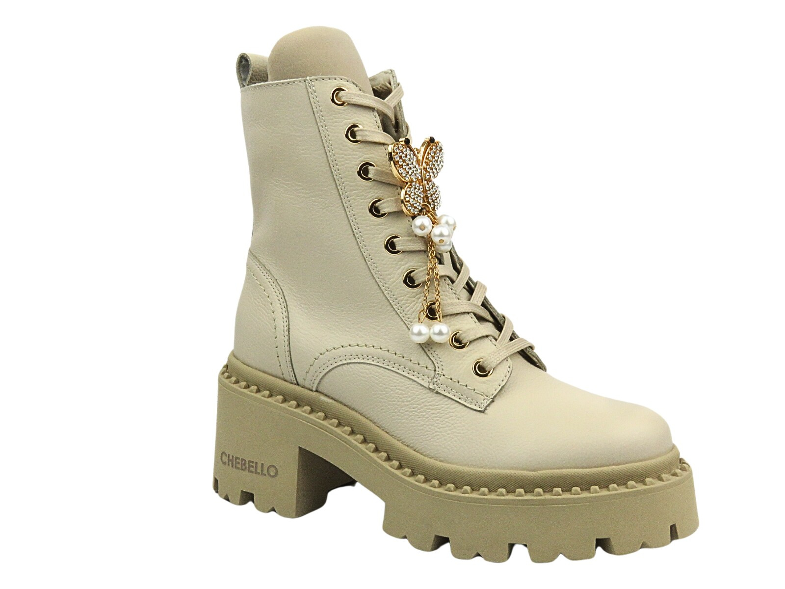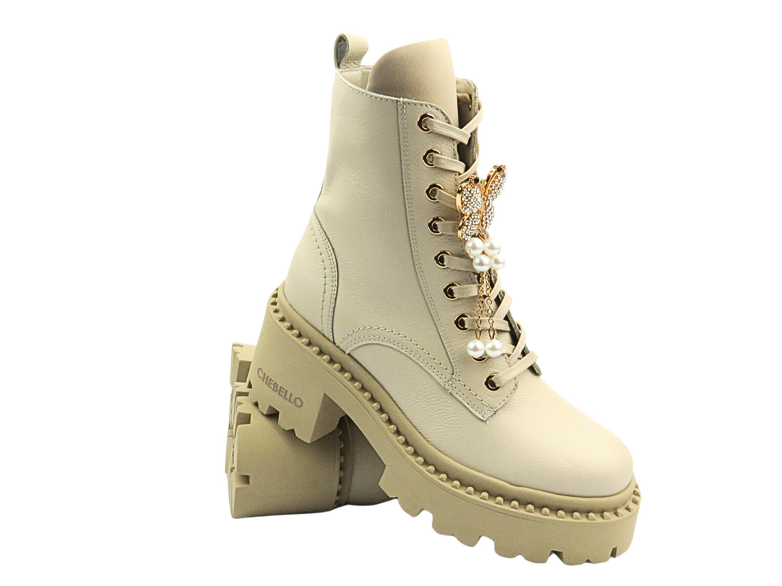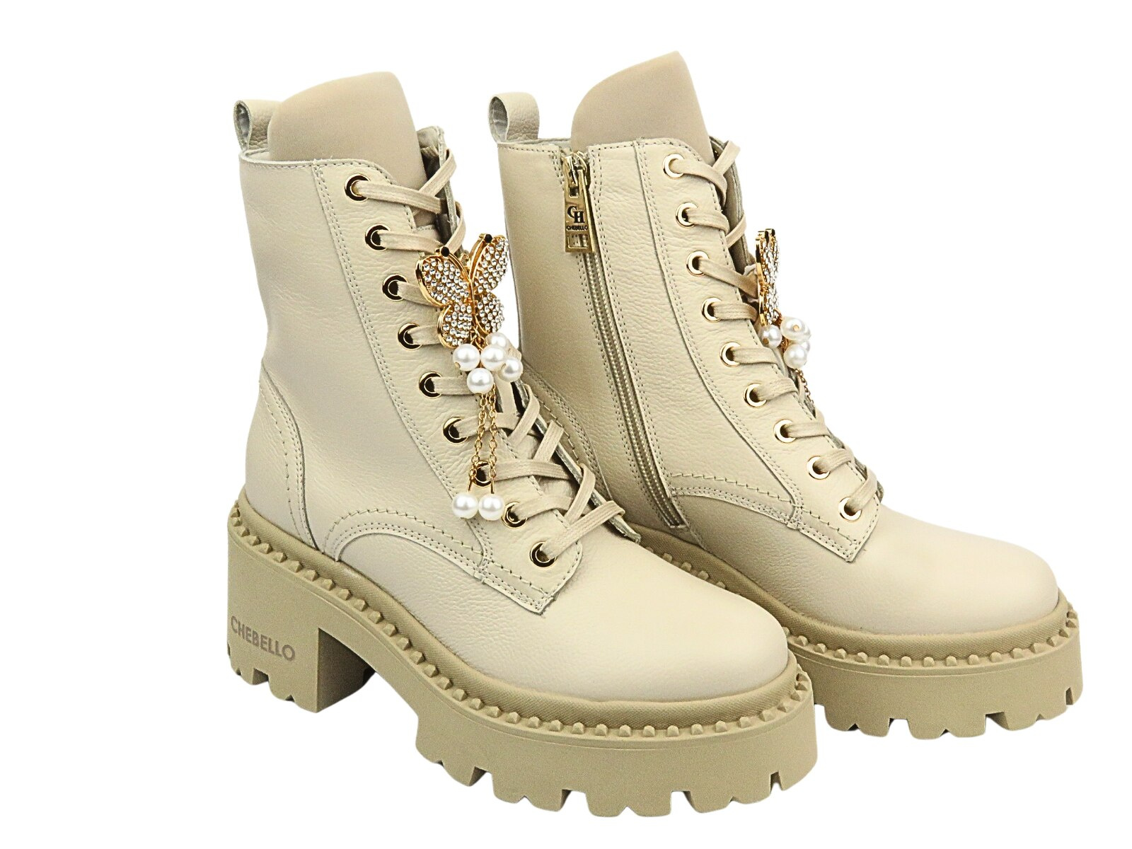 Botki damskie renomowanej marki CheBello zostały wykonane z wysokiej jakości skóry naturalnej licowej w kolorze beżowym.