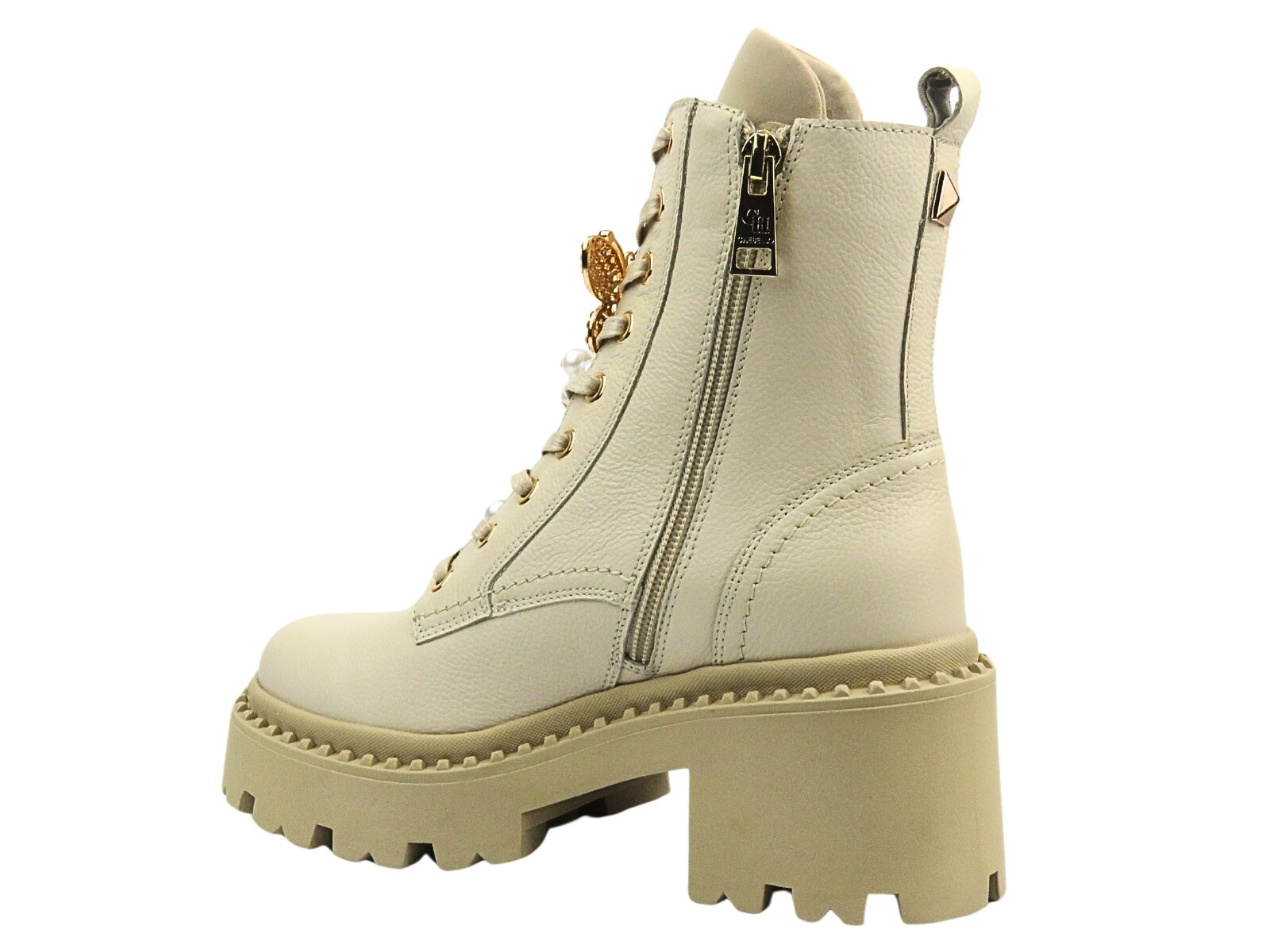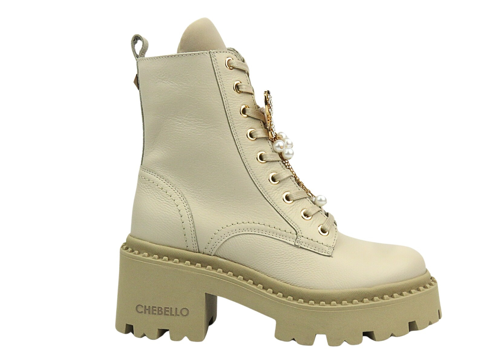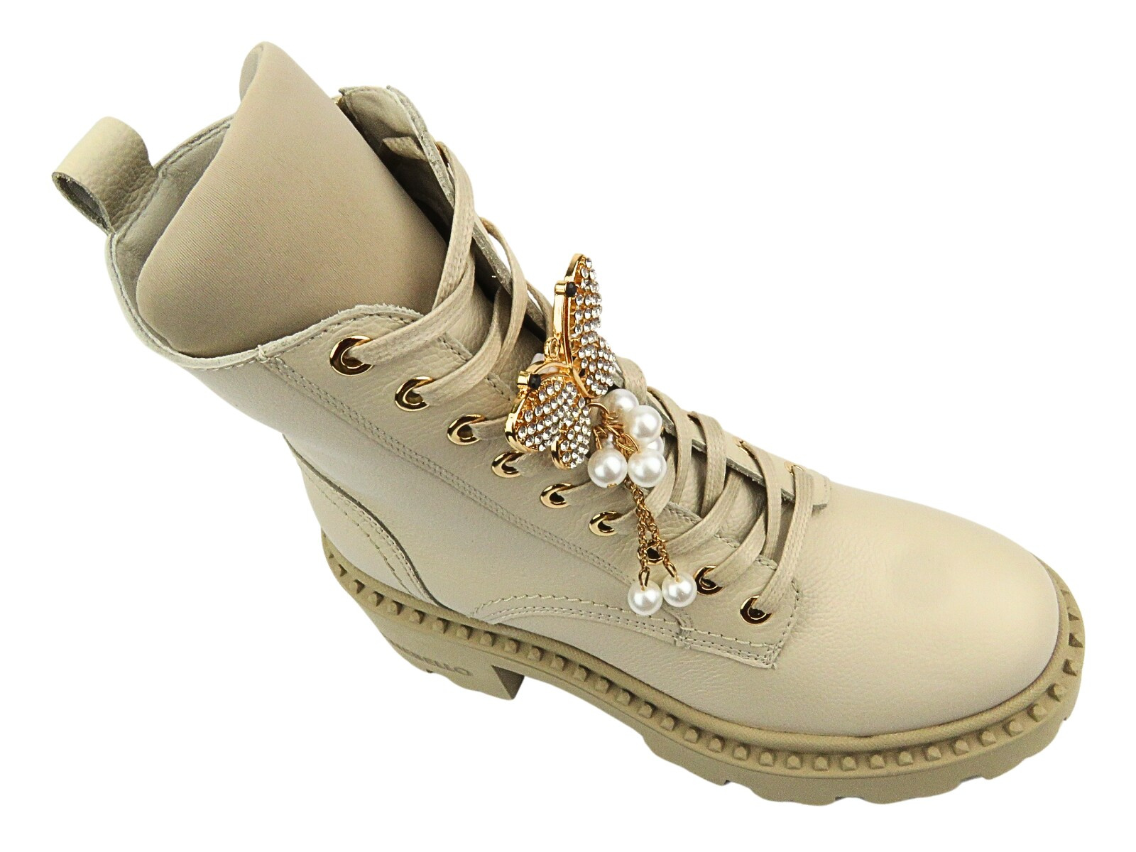Botki damskie renomowanej marki CheBello zostały wykonane z wysokiej jakości skóry naturalnej licowej w kolorze beżowym.