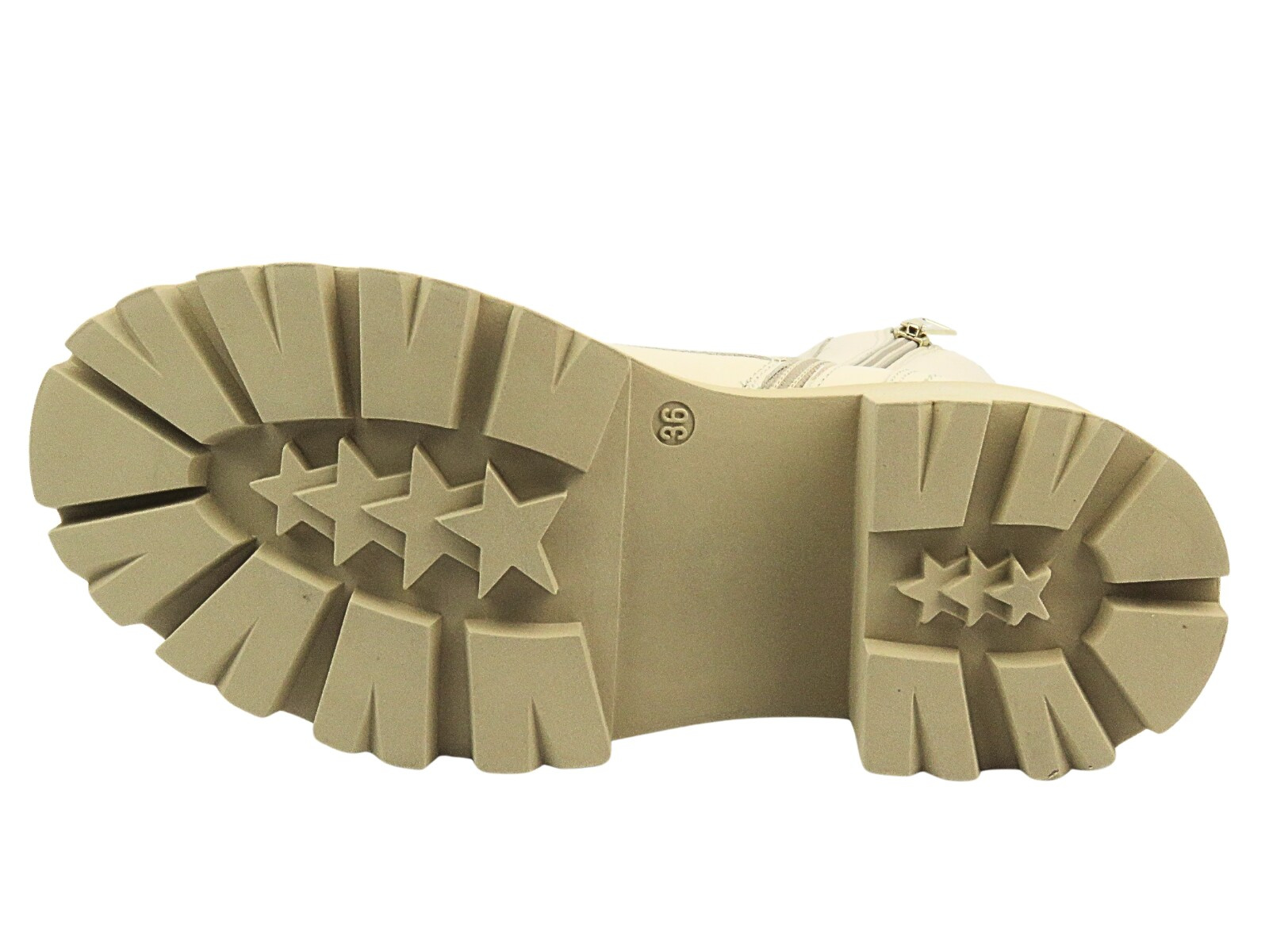 Botki damskie na podwyższonej podeszwie - CheBello 4590-157-000-MIC, beżowe.