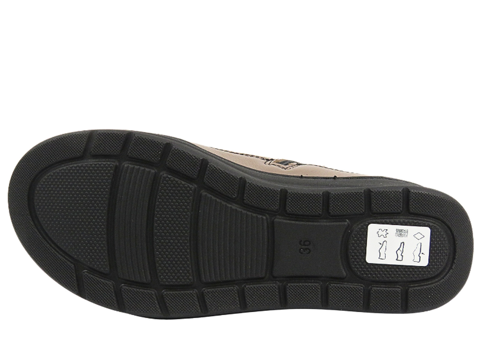 Płaska podeszwa 2,5 cm jest wykonana z lekkiego i elastycznego tworzywa, dzięki czemu nie męczy stóp.