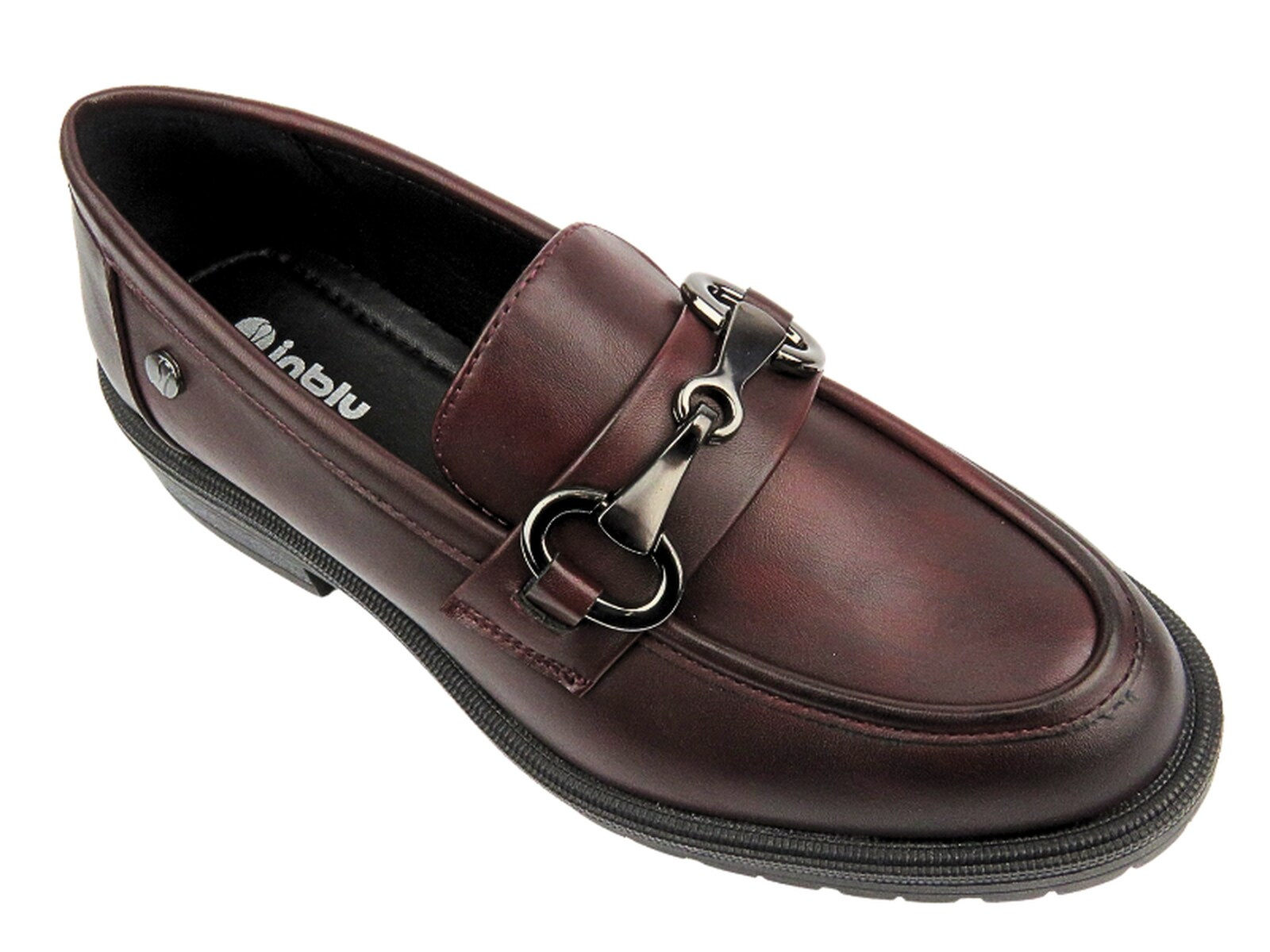 Półbuty marki Inblu zostały wykonane z wysokogatunkowej skóry ekologicznej w kolorze bordowym.