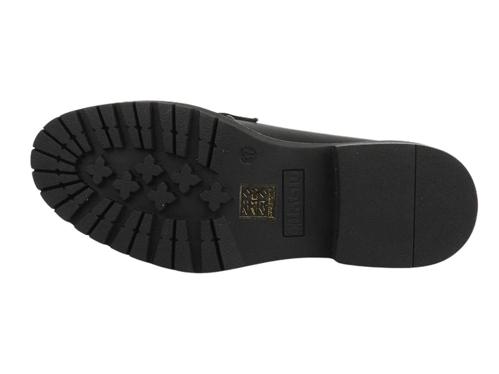 Półbuty marki Inblu zostały wykonane z wysokogatunkowej skóry ekologicznej w kolorze czarnym.