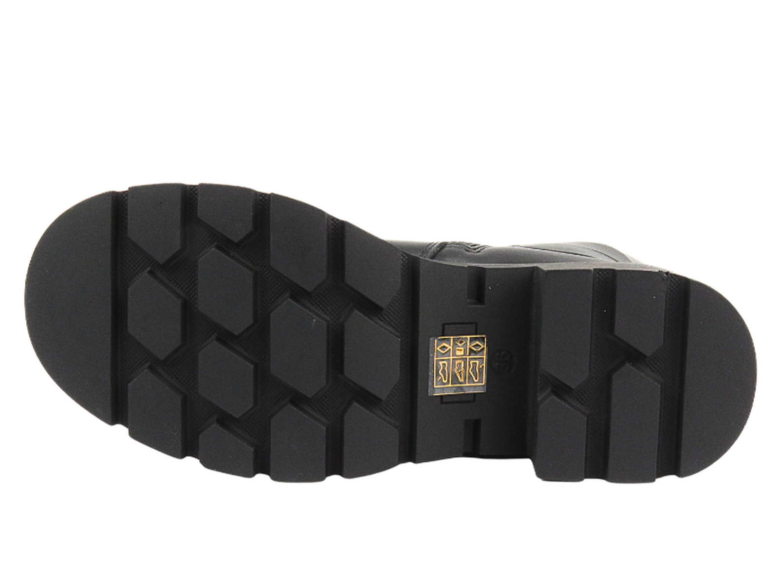 Potocki 24-54300 to stylowe botki damskie stworzone z myślą o komforcie i modnym wyglądzie na chłodniejsze dni. Wykonane z czarnej skóry ekologicznej, łączą w sobie funkcjonalność i nowoczesny design. Ich charakterystyczna gruba, głęboko żłobiona podeszwa nadaje im wyrazistości i świetnie wpisuje się w aktualne trendy streetwearowe.