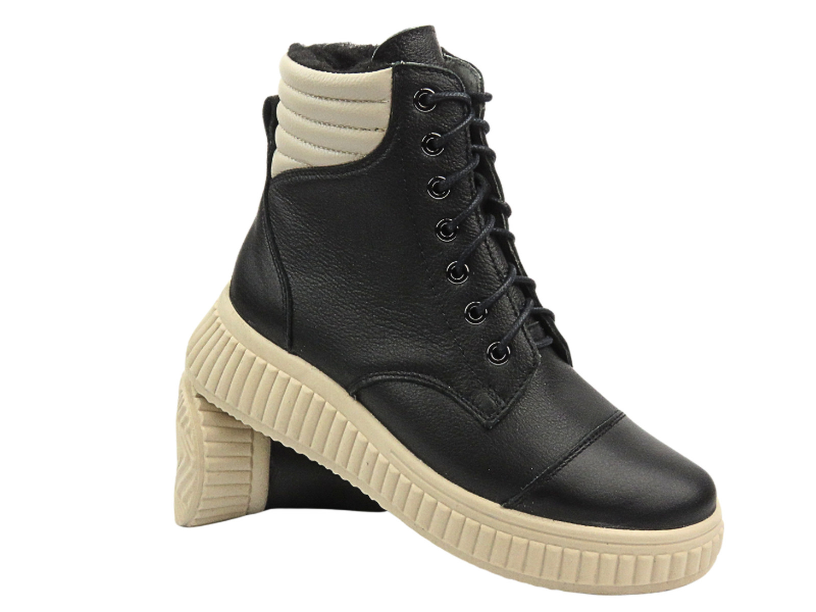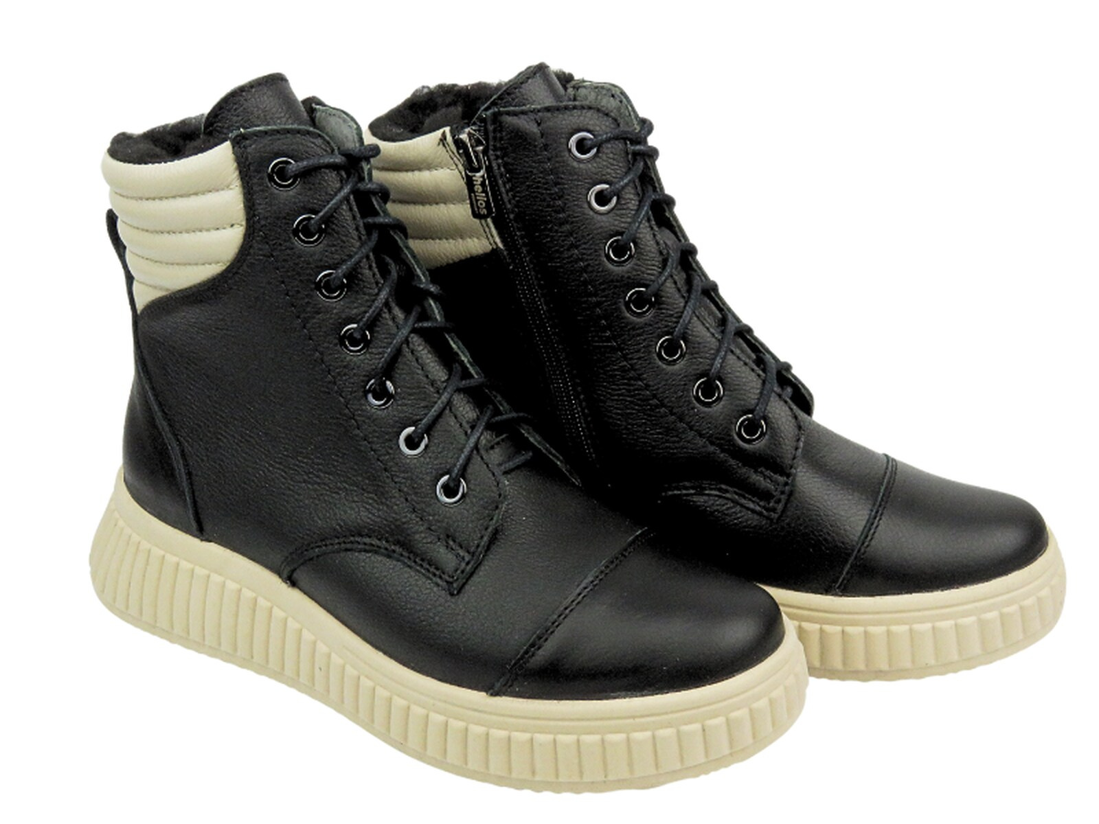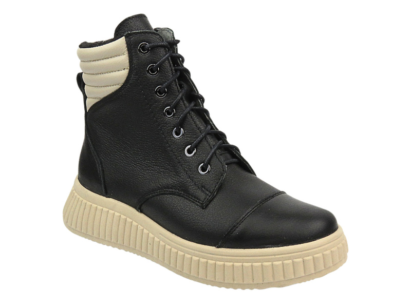 Skórzane botki damskie na zamek HELIOS Komfort 599, czarne/ecru