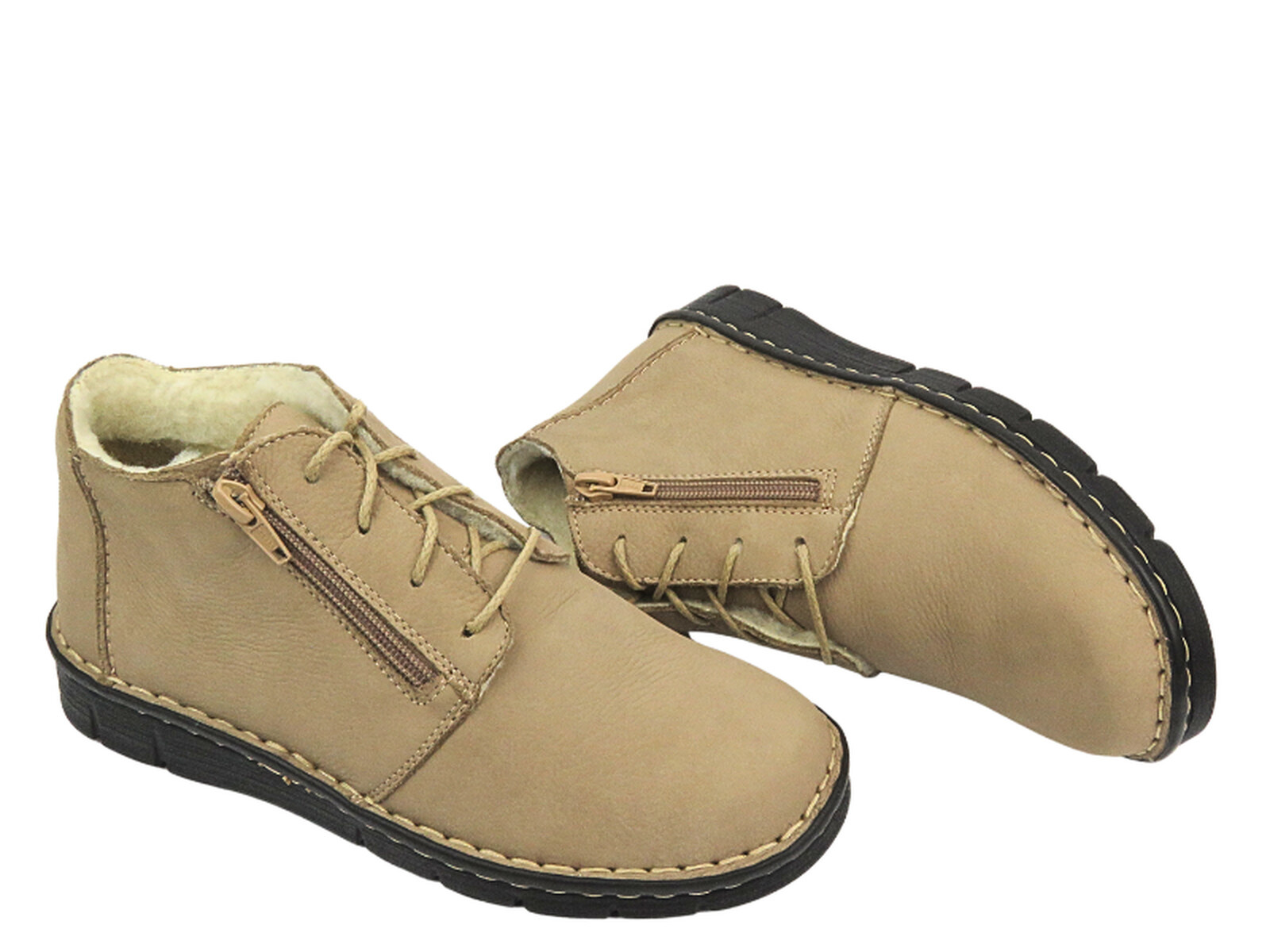 Skórzane botki damskie Nika Komfort 1388, cappuccino