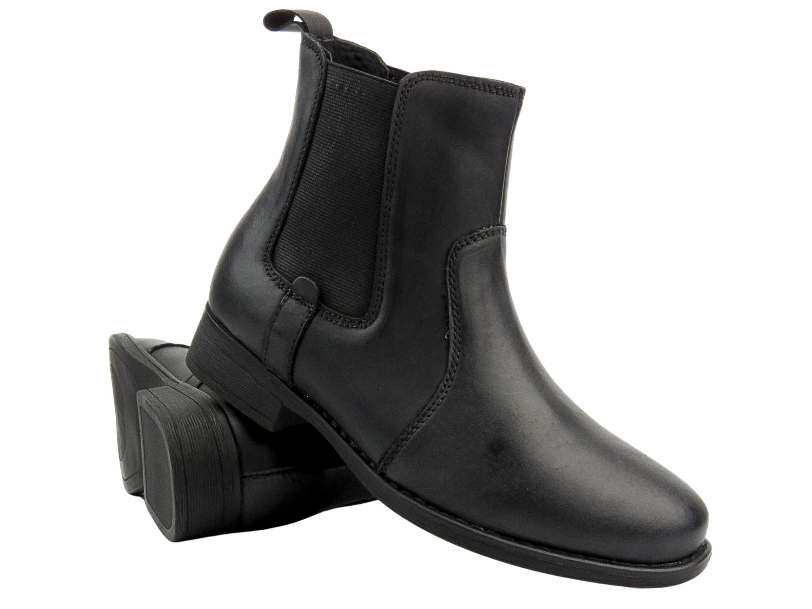 Botki damskie marki American Club zostały wykonanie ze skóry naturalnej w kolorze czarnym.