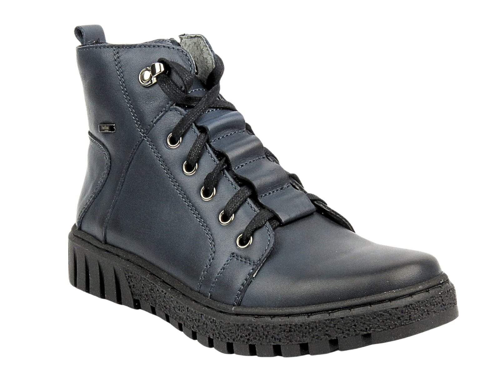 Trapery damskie cenionej polskiej marki Helios Komfort zostały wykonane z wysokiej jakości skóry naturalnej licowej w odcieniu granatowym .