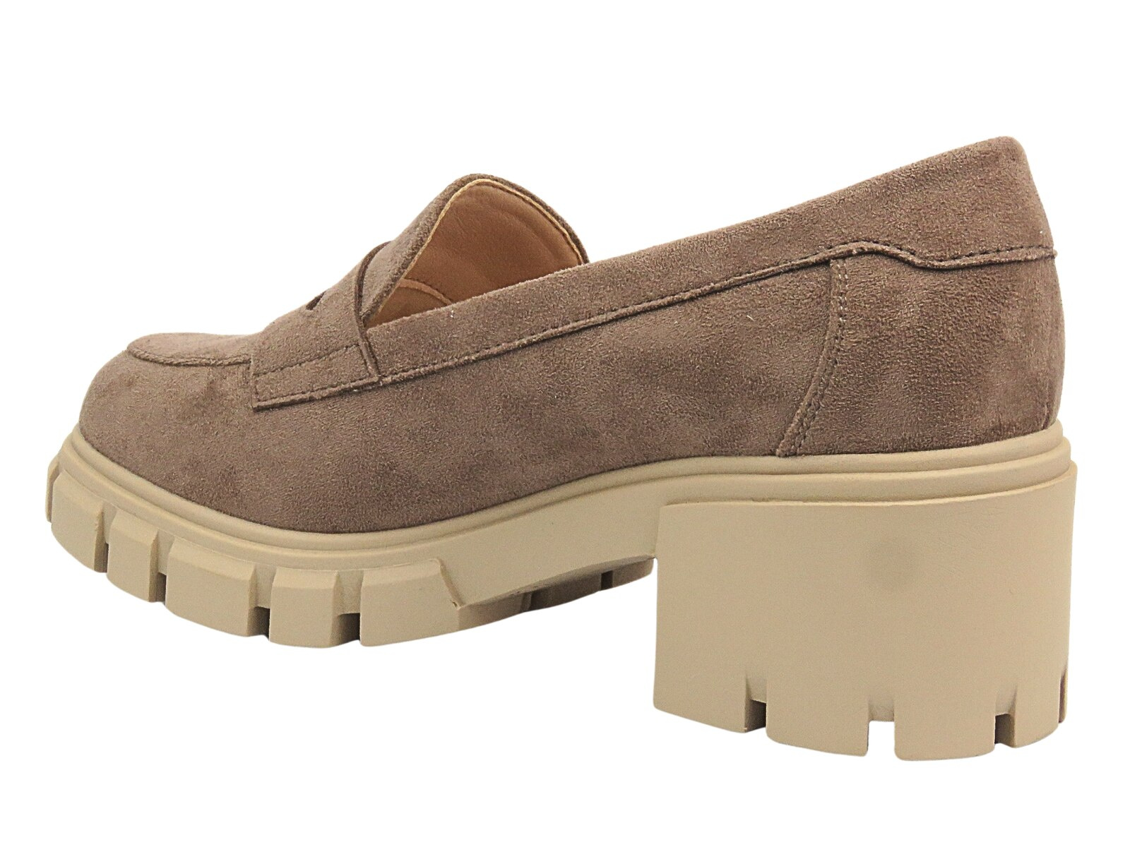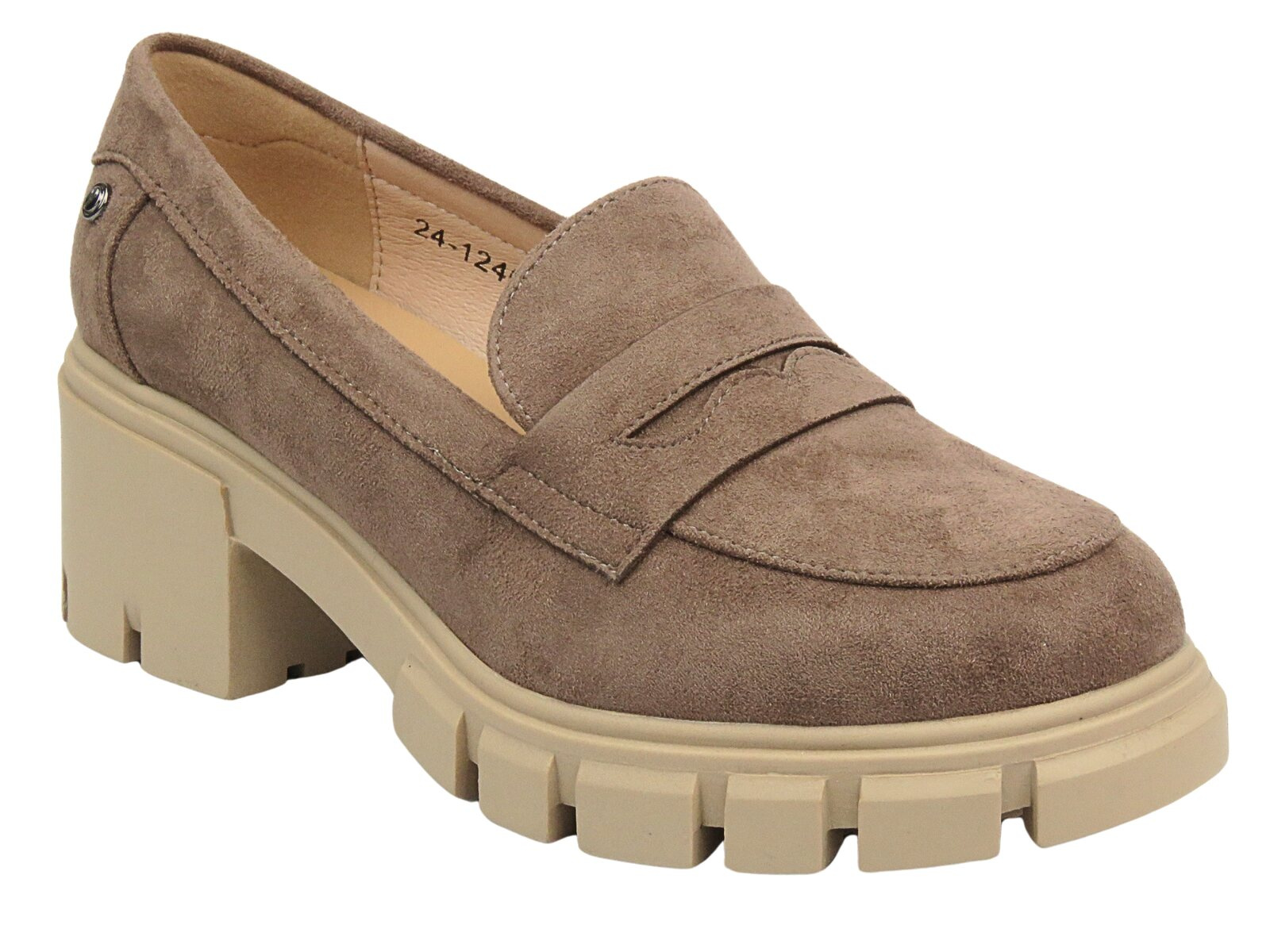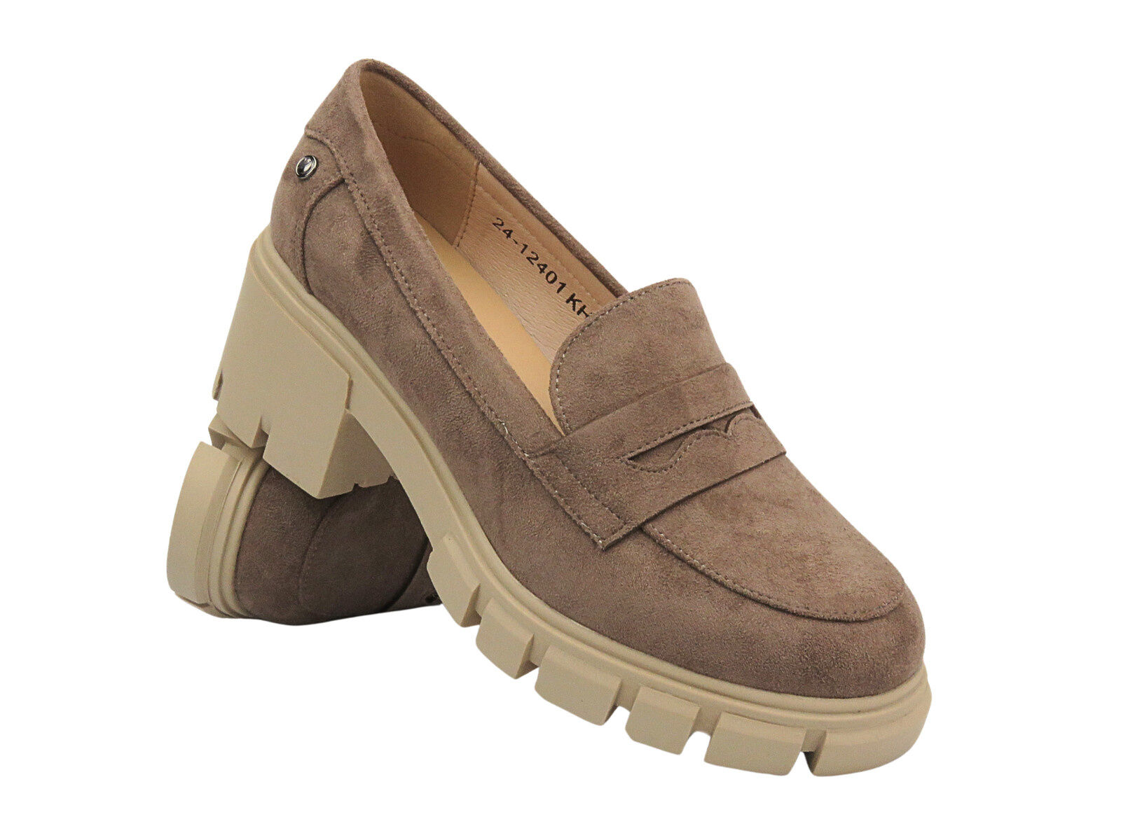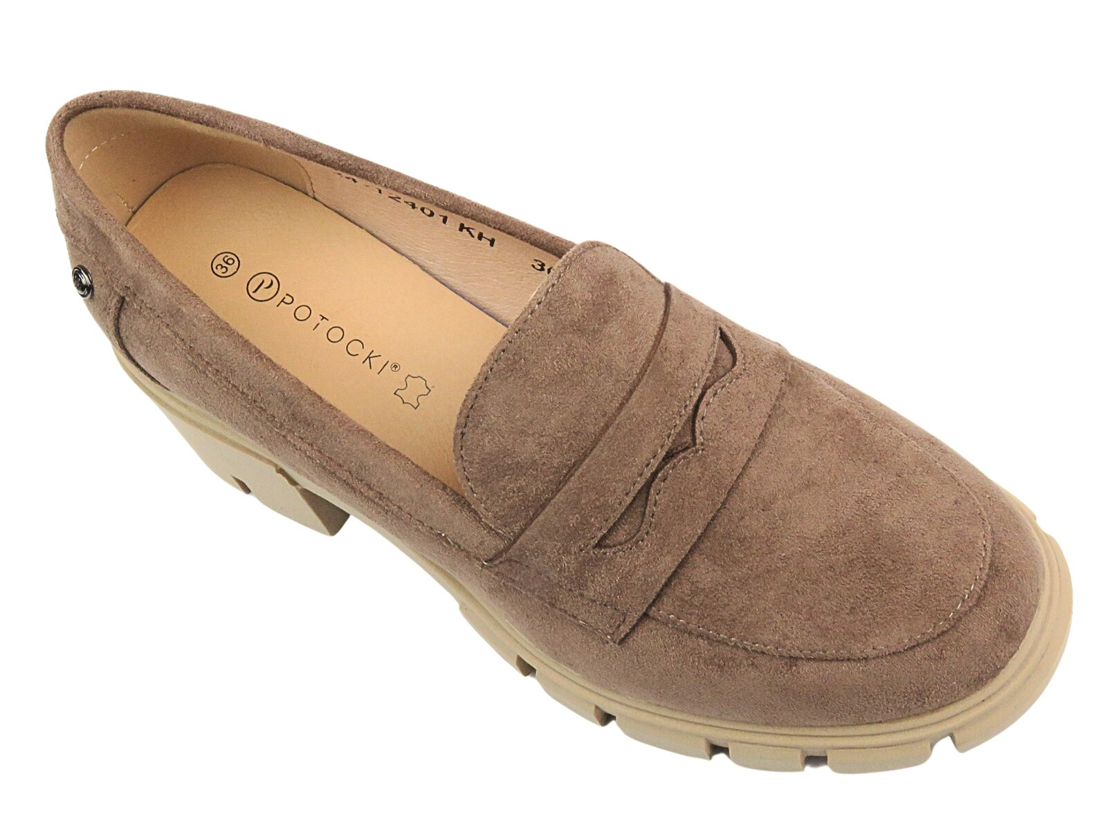 Półbuty, loafersy damskie Potocki 24-12401, khaki - wsuwane