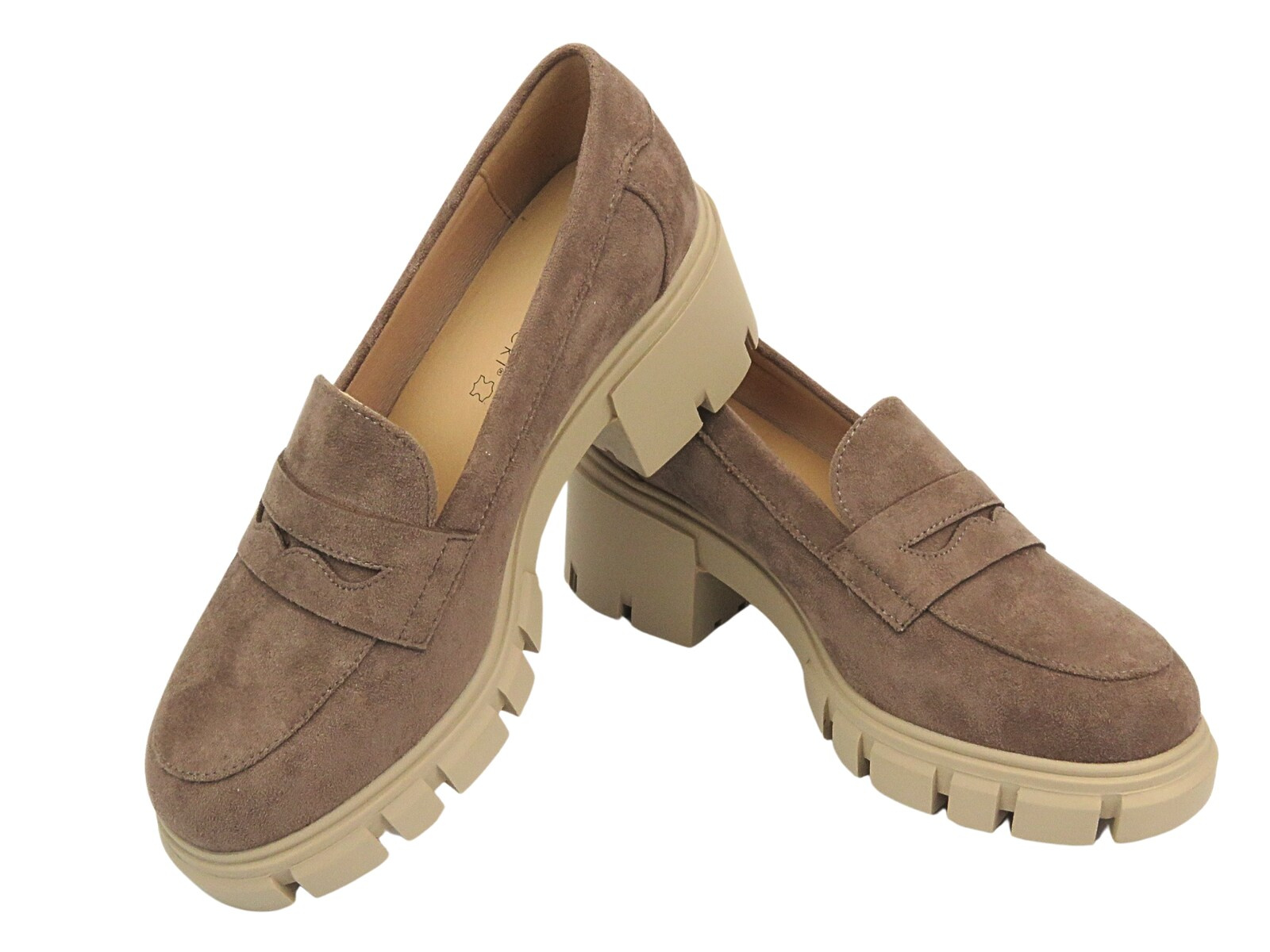 Półbuty, loafersy damskie Potocki 24-12401, khaki