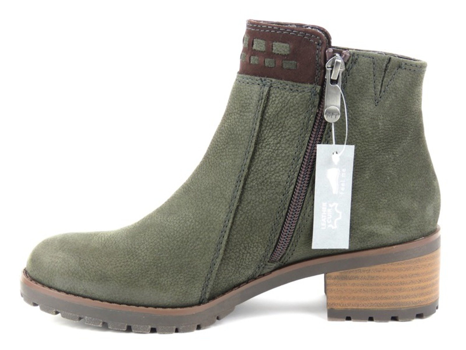 Botki damskie renomowanej marki Marco Tozzi zostały wykonane z wysokiej jakości skóry naturalnej. Wnętrze jest ocieplone polarem obuwniczym. Zamek błyskawiczny pozwala na szybkie i wygodne zakładanie obuwia. Szeroki obcas zapewnia stabilność chodzenia. Gruba podeszwa dobrze izoluje od podłoża i ma właściwości antypoślizgowe. Oryginalny fason w ciekawym kolorze nadadzą stylu każdej stylizacji.