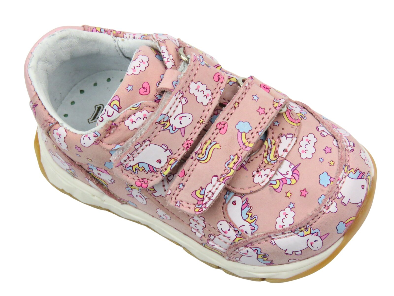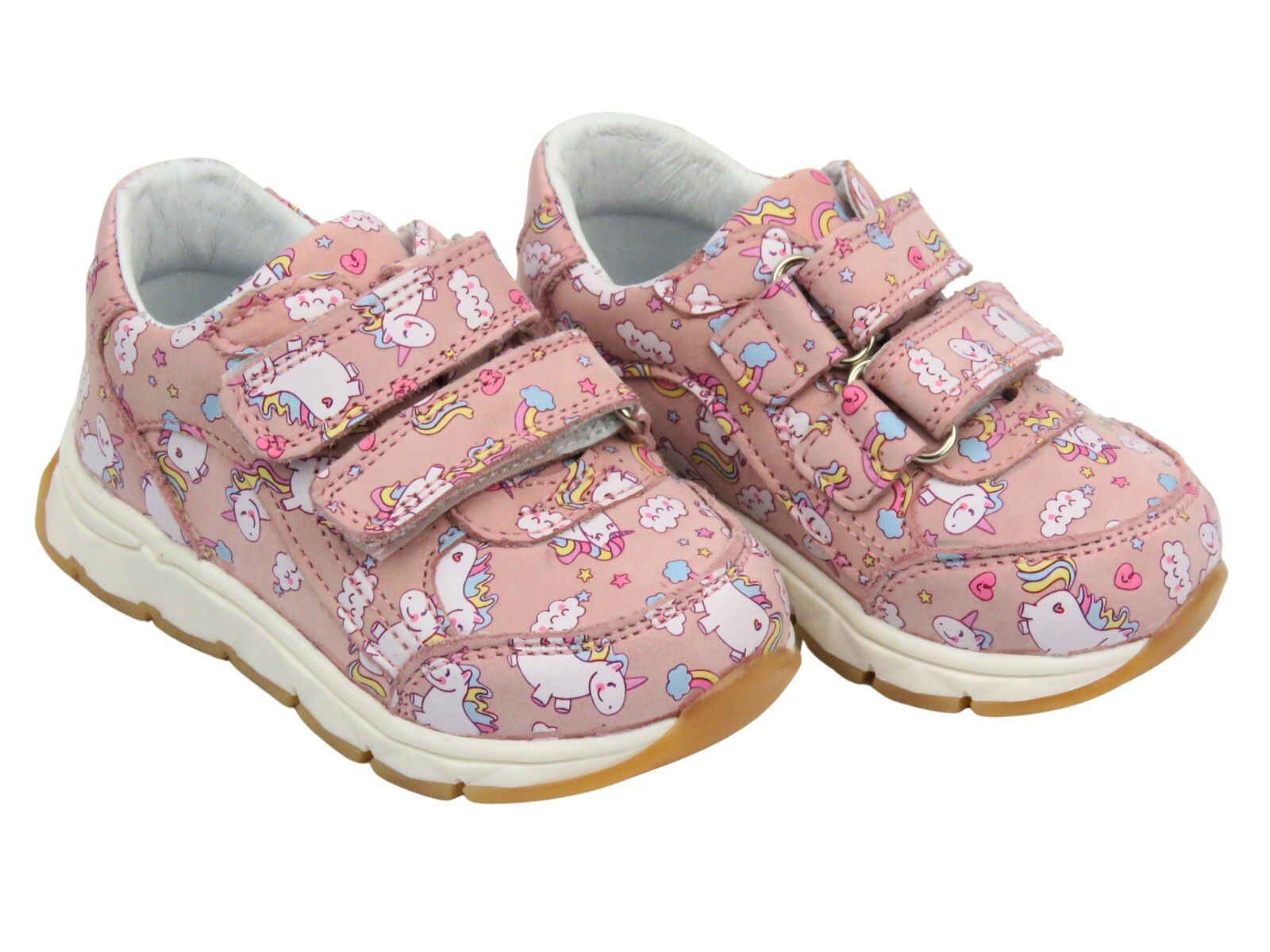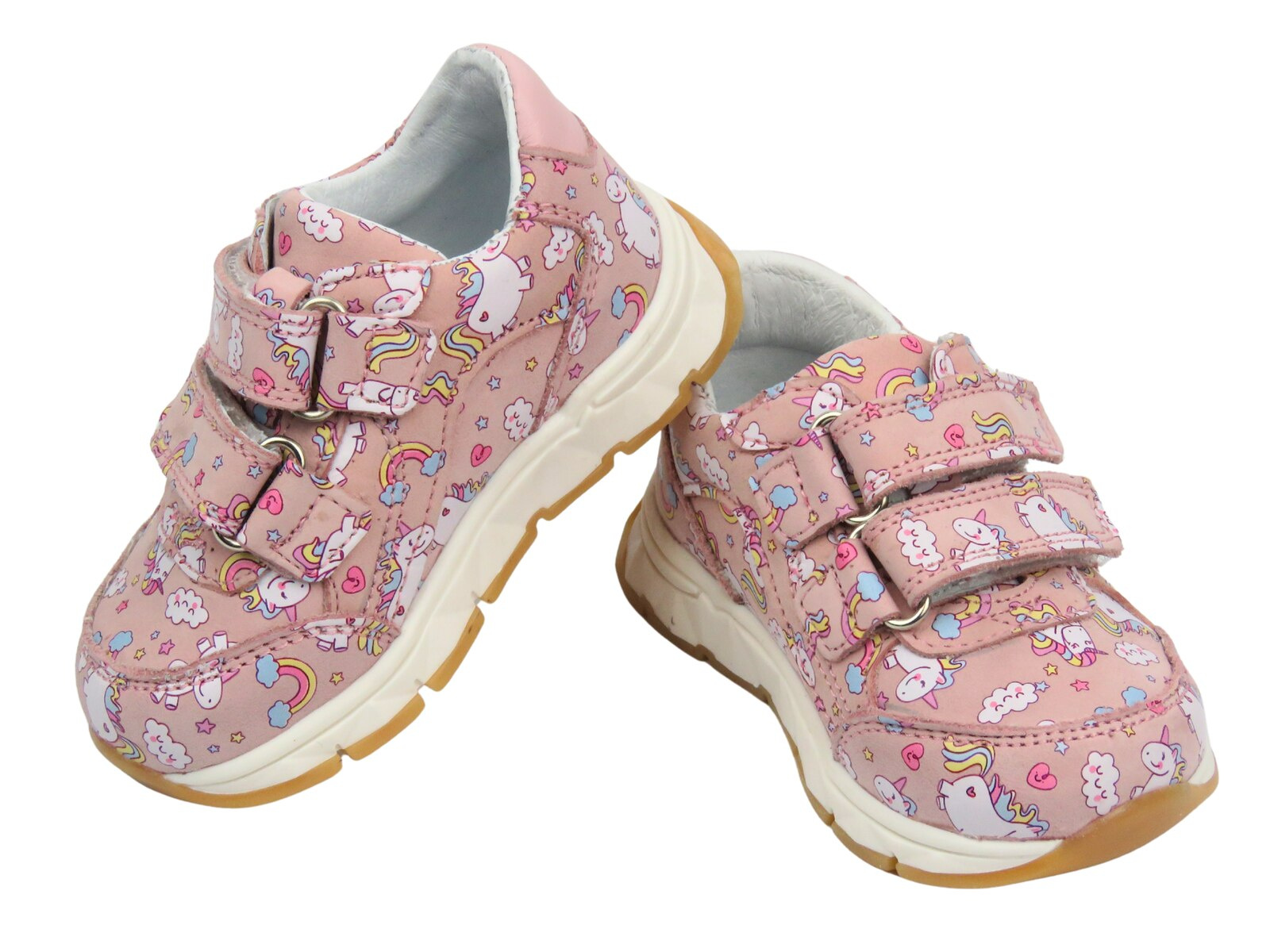 Różowy kolor i uroczy wzór jednorożców sprawiają, że buty wyróżniają się na tle innych, a solidna podeszwa o wysokości 2 cm zapewnia stabilność i amortyzację.