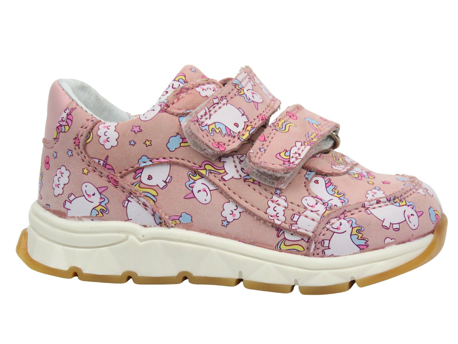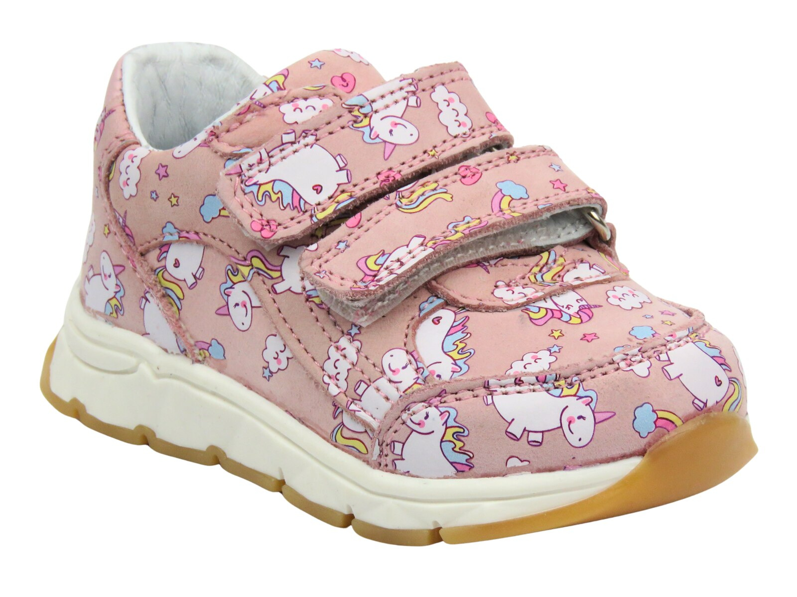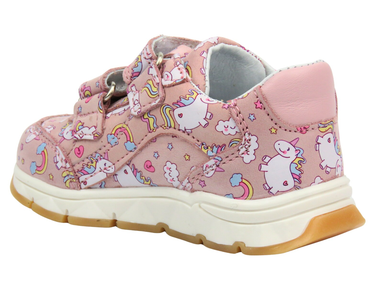 Różowy kolor i uroczy wzór jednorożców sprawiają, że buty wyróżniają się na tle innych, a solidna podeszwa o wysokości 2 cm zapewnia stabilność i amortyzację.