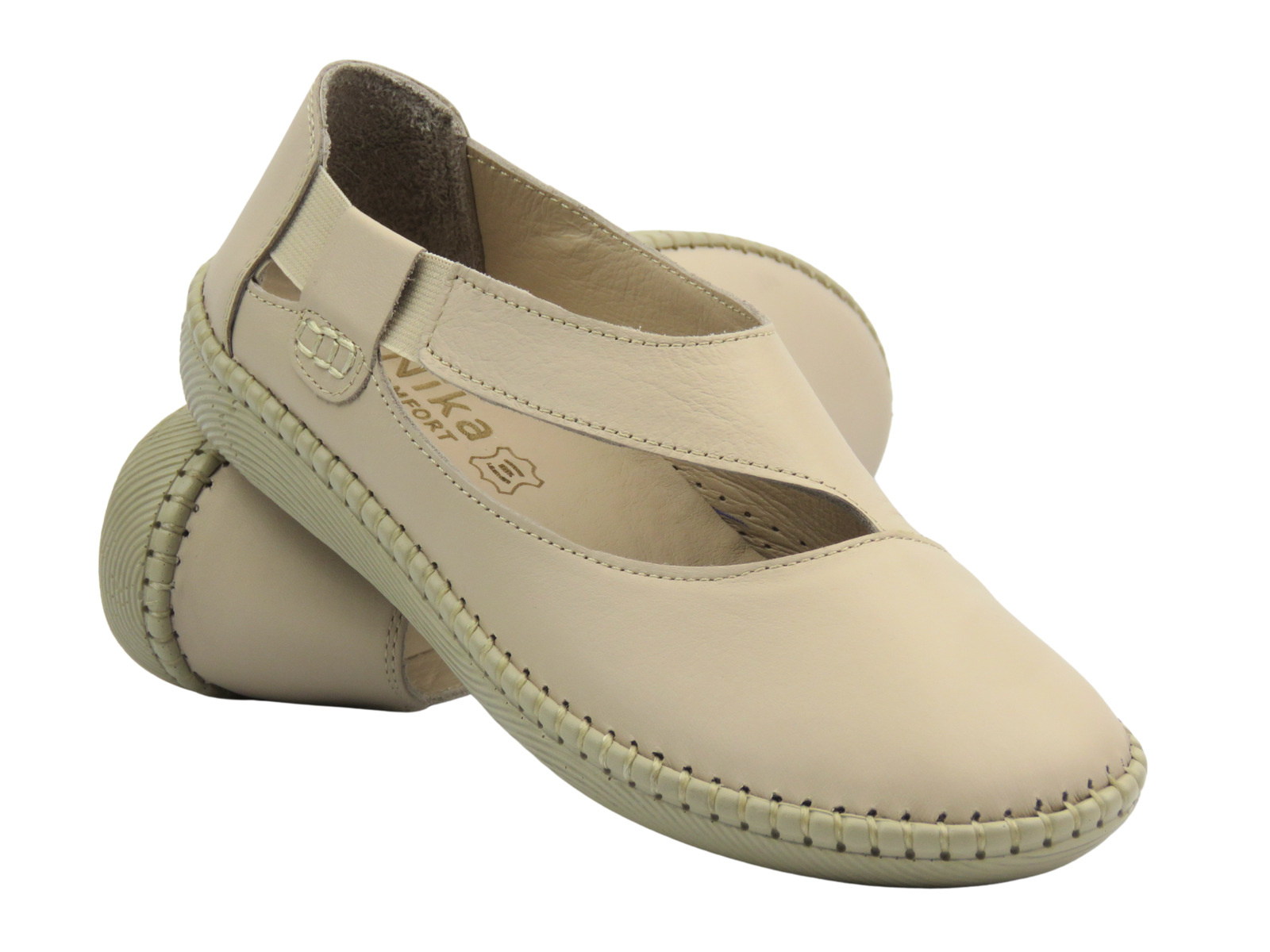 Skórzane półbuty damskie Nika Komfort H2030, beżowe