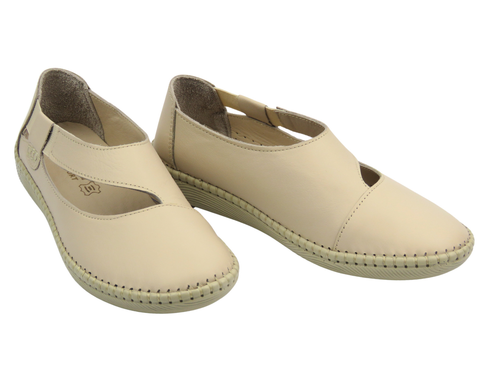 Skórzane półbuty damskie beżowe Nika Komfort H2030
