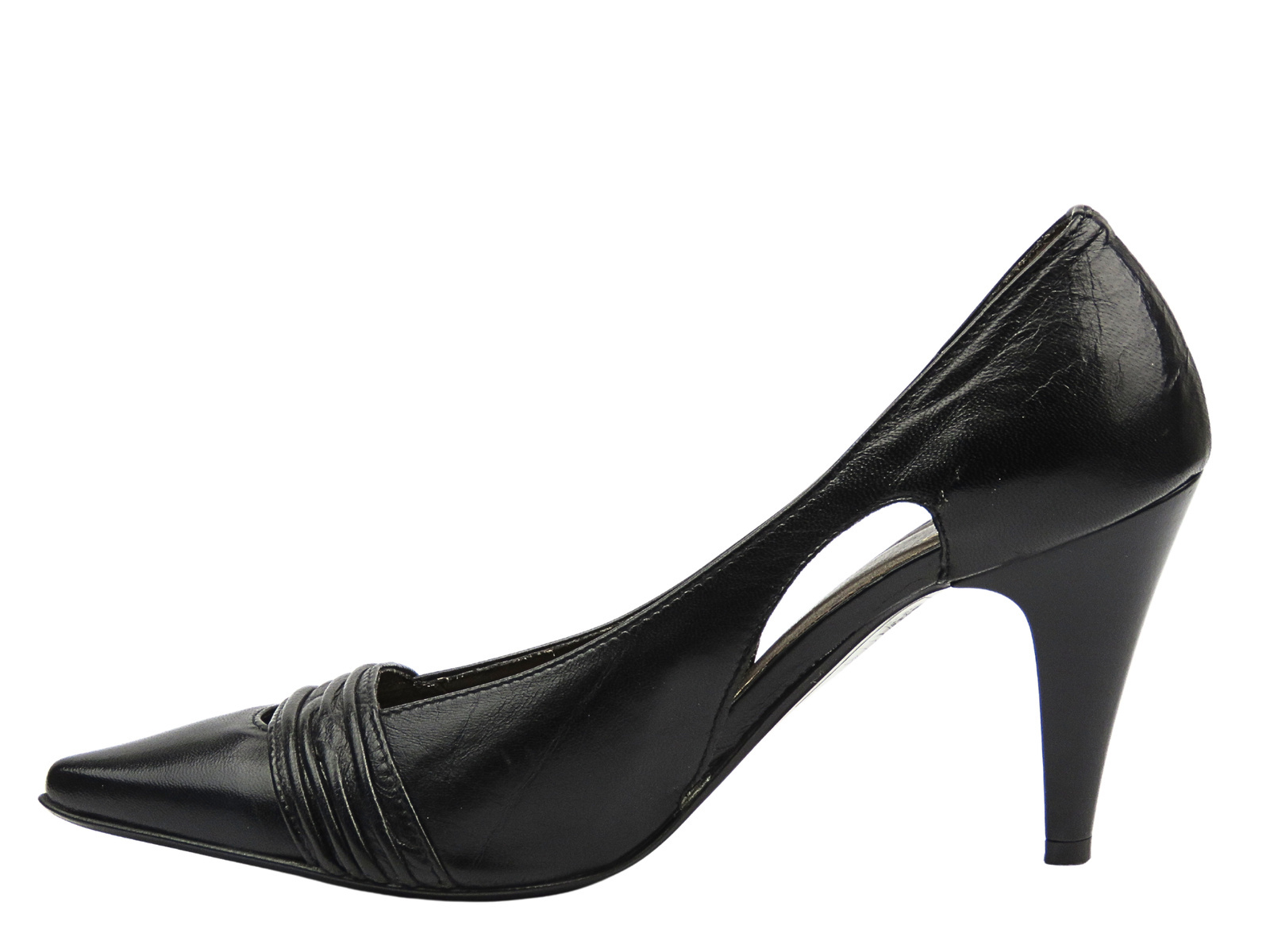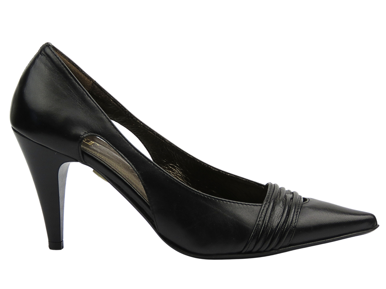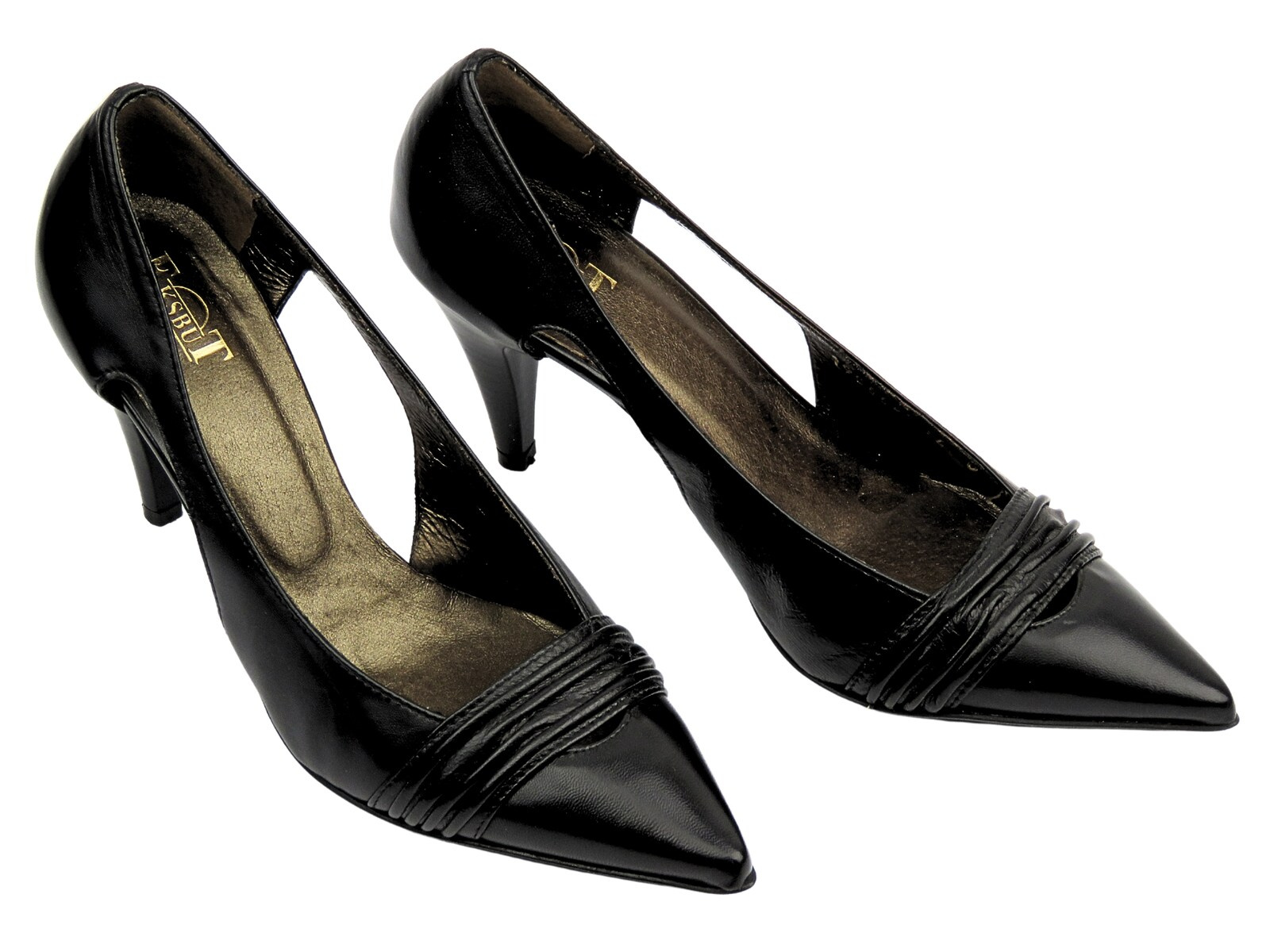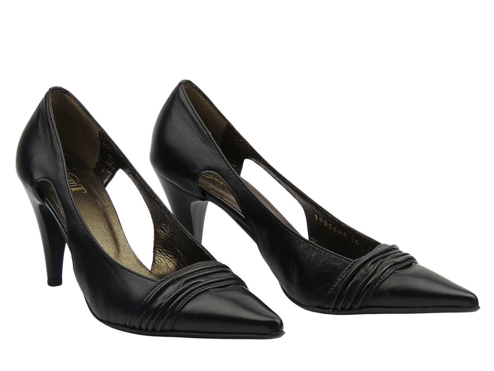 Skórzane czółenka damskie na szpilce - Eksbut 17-0648, czarne